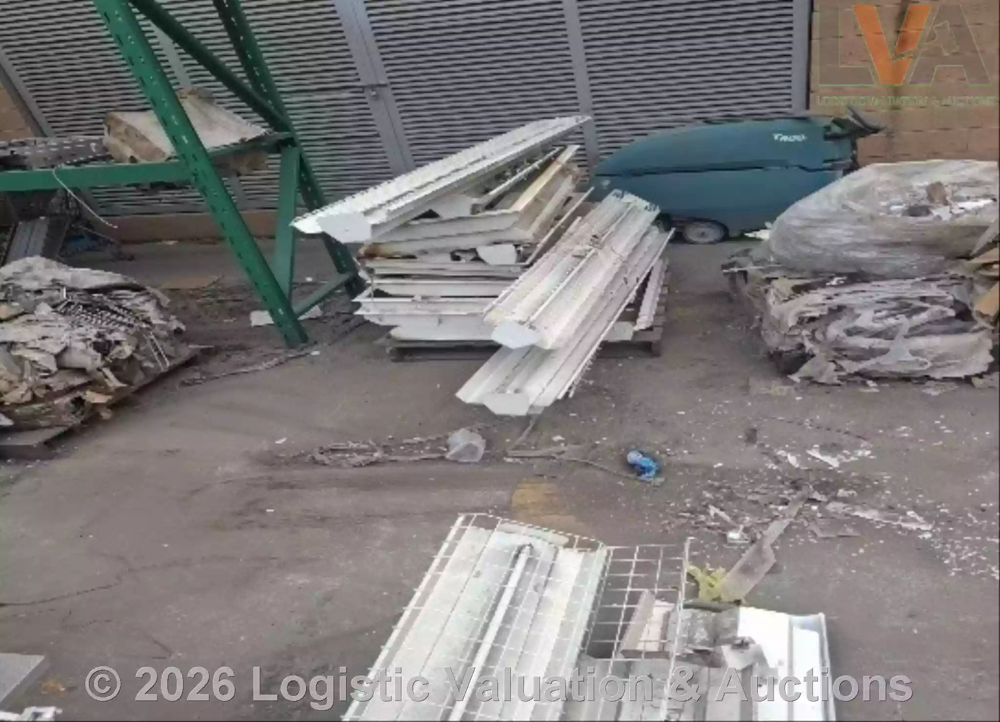 LOTE COMPUESTO POR 1) LOTE DE CHATARRA EN GENERAL (FIERRO VIEJO, RECORTE DE MOBILIARIO, CHAROLAS VIEJAS, RESIDUOS DE LAMPARAS, BINES DOBLADOS, ETC.), (2) MAQUINA LAVADORAS DE PISOS EN DESUSO, ESTATUS DE LOTE: CONDICIONES REGULARES DET 4154
