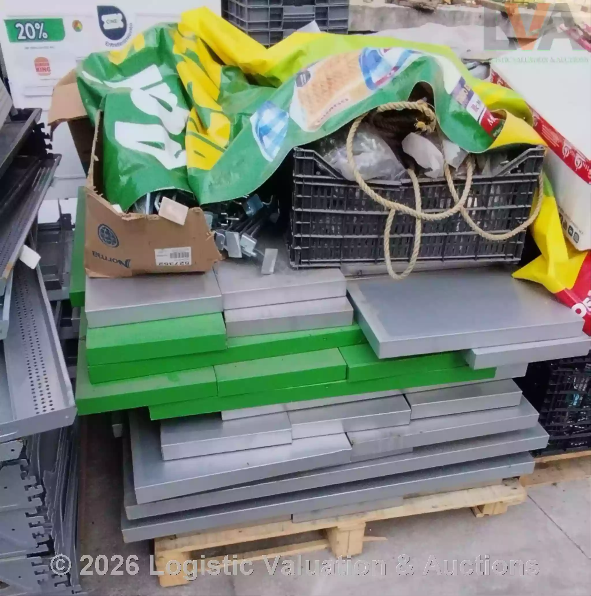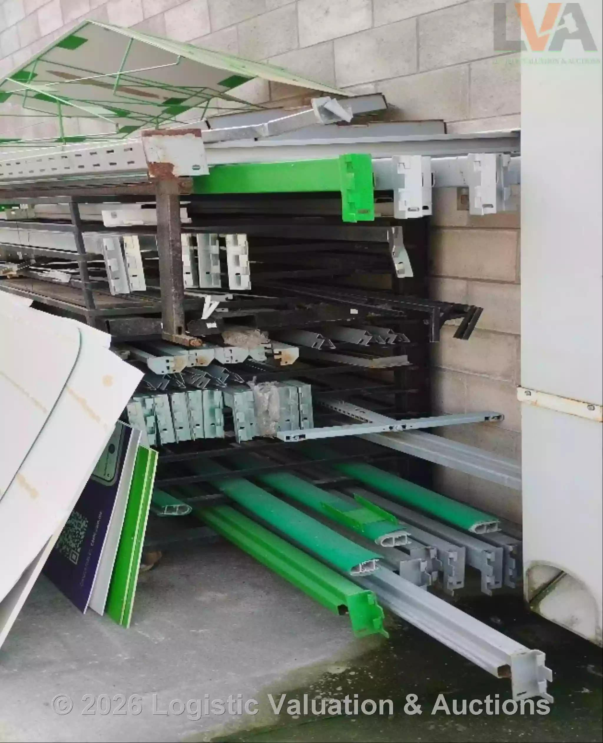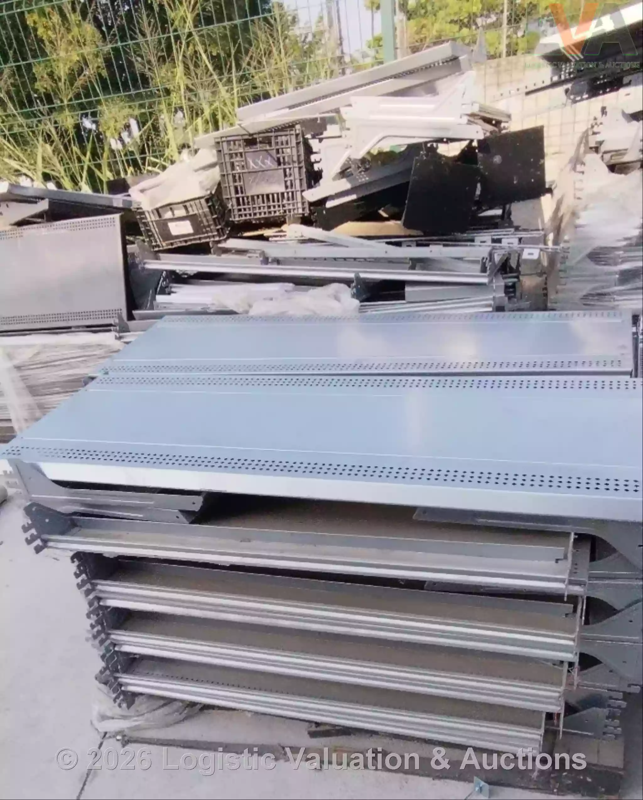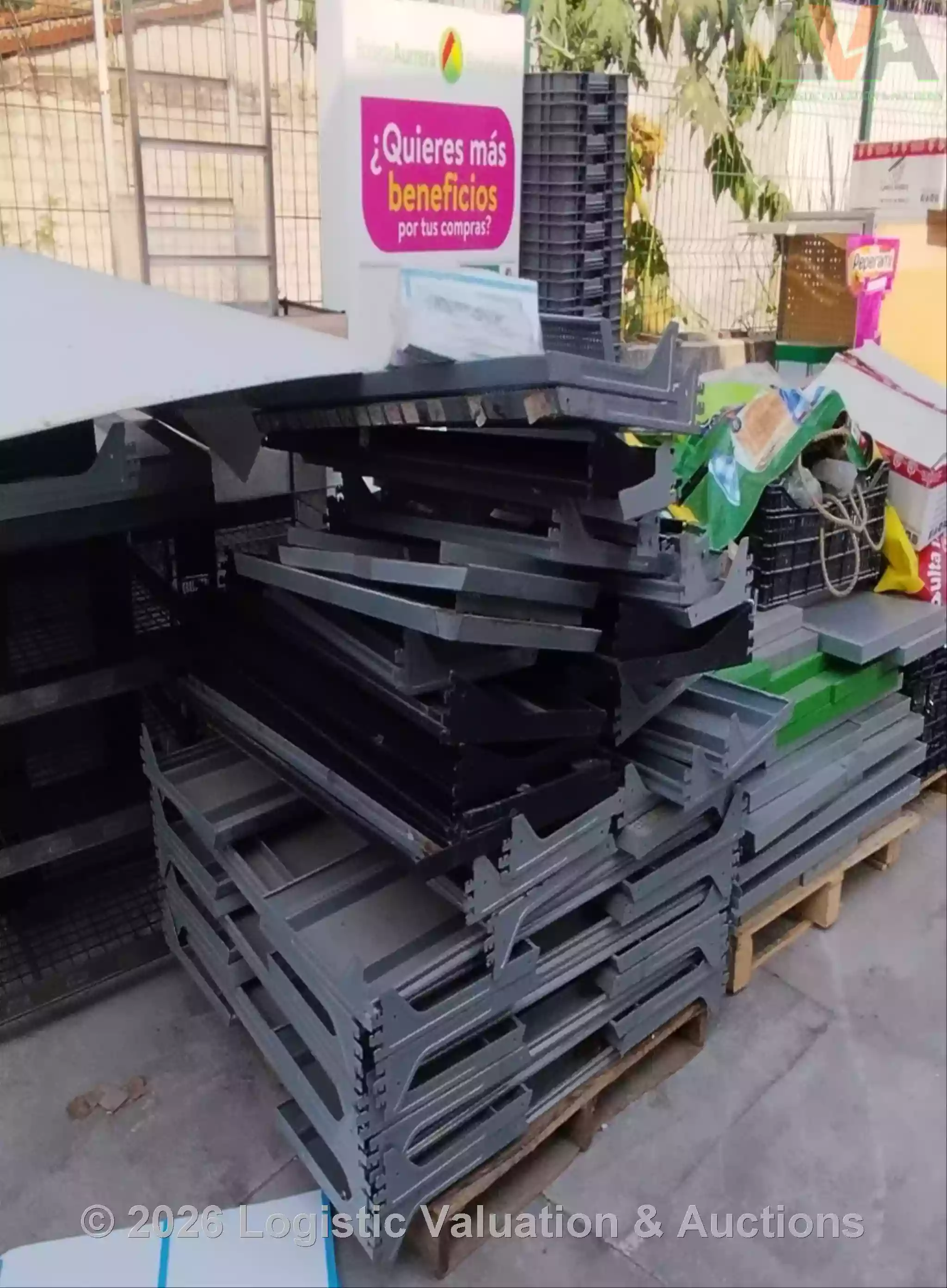 LOTE COMPUESTO POR (108) GÓNDOLAS, (42) GÓNDOLAS PARA CABECERAS, (32) TRABES, (1) MARCO PARA CABECERA, (87) CHAROLAS PARA RACK. LOTE DE CHATARRA. CONDICIONES: DAÑADO DET 6202