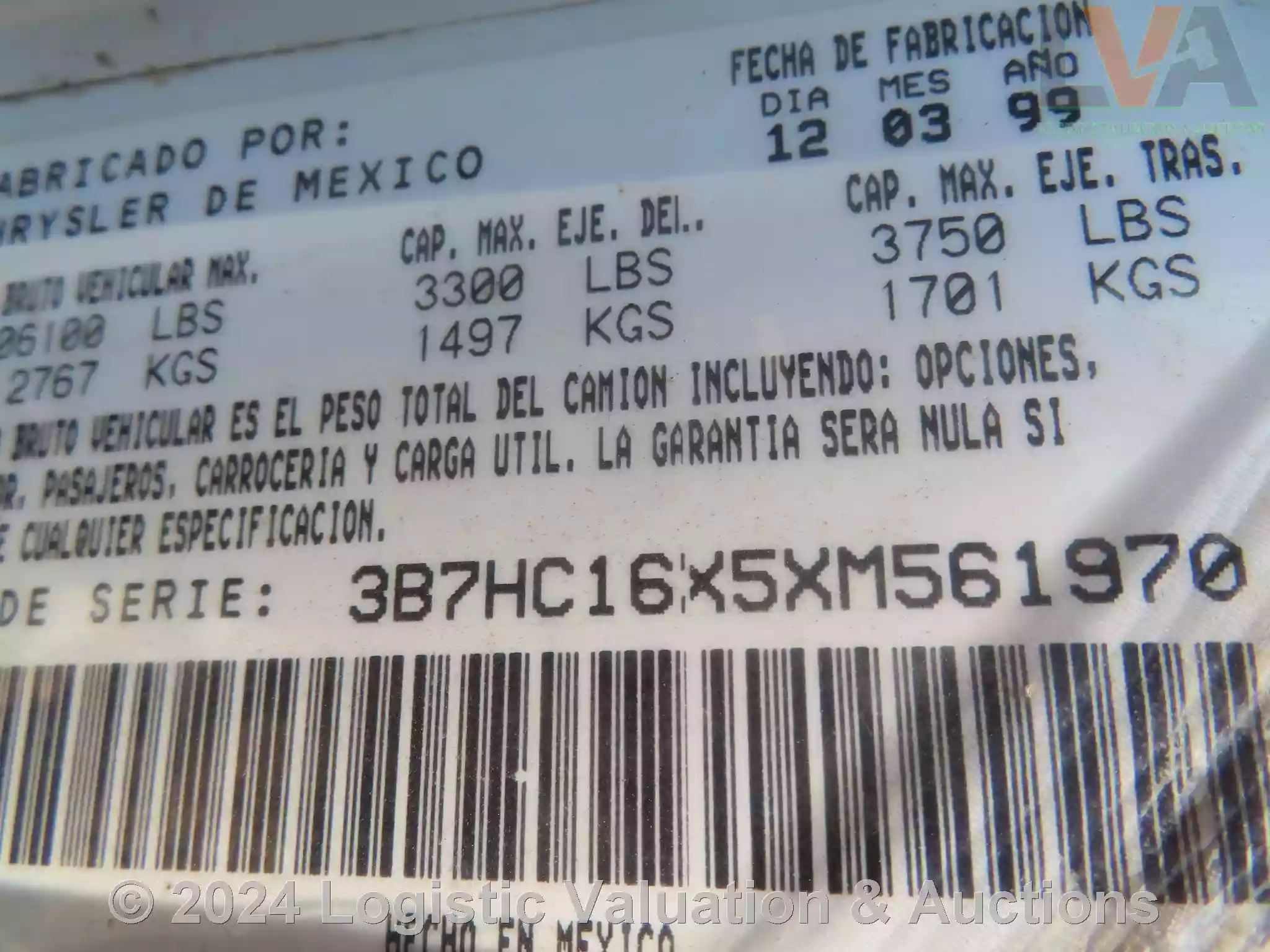 CAMIONETA, MARCA: DODGE, MODELO: RAM 1500, AÑO: 1999, SERIE: 3B7HC16X5XM561970, DESCRIPCION: CARROCERIA EN REGULAR ESTADO, INTERIORES EN MAL ESTADO, MOTOR COMPLETO, LLANTAS EN MAL ESTADO, SIN LLAVES, NO OPERA