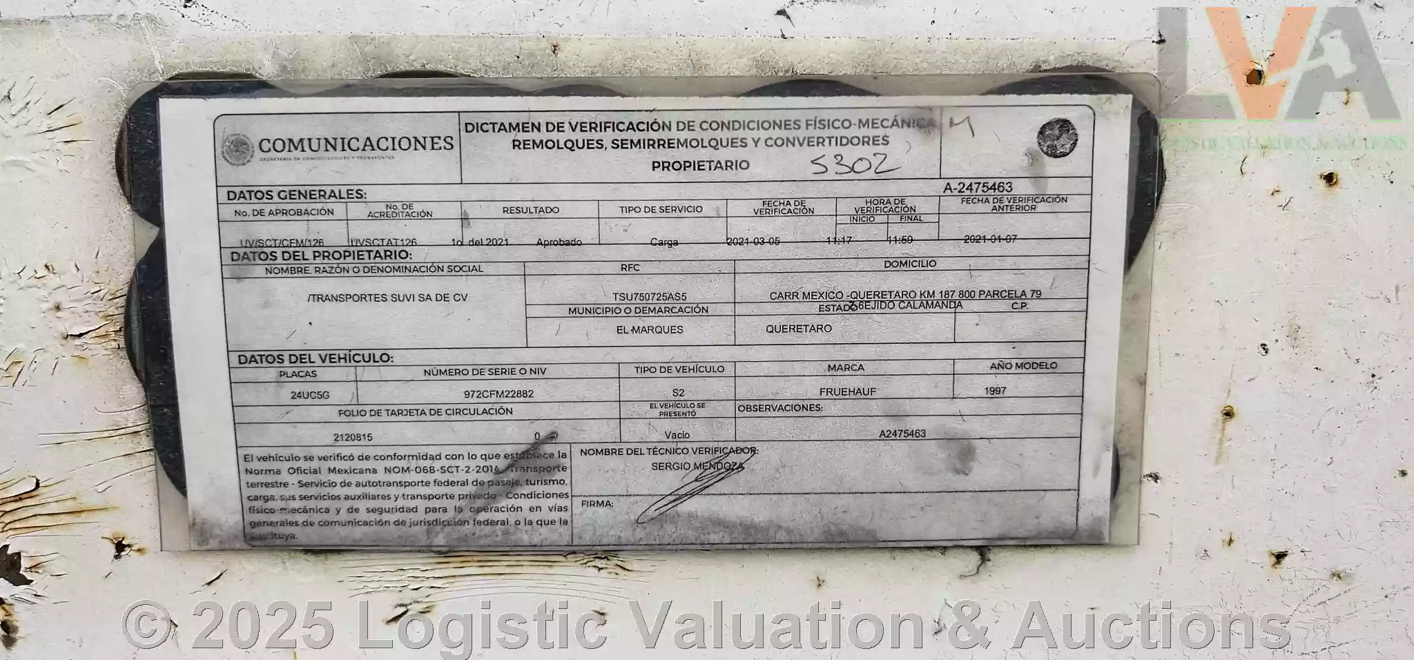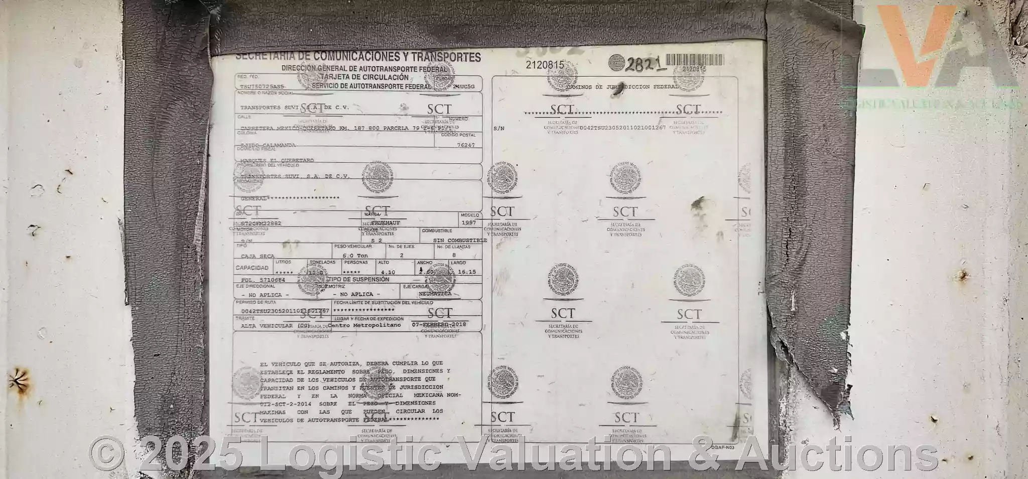 CAJA SECA, MARCA: FRUEHAUF, MODELO: 53´, AÑO: 1997, SERIE: 972CFM22882, CONDICIONES: PUERTA: ABATIBLE, SUSPENSIÓN: NEUMATICA, ECO: 5302