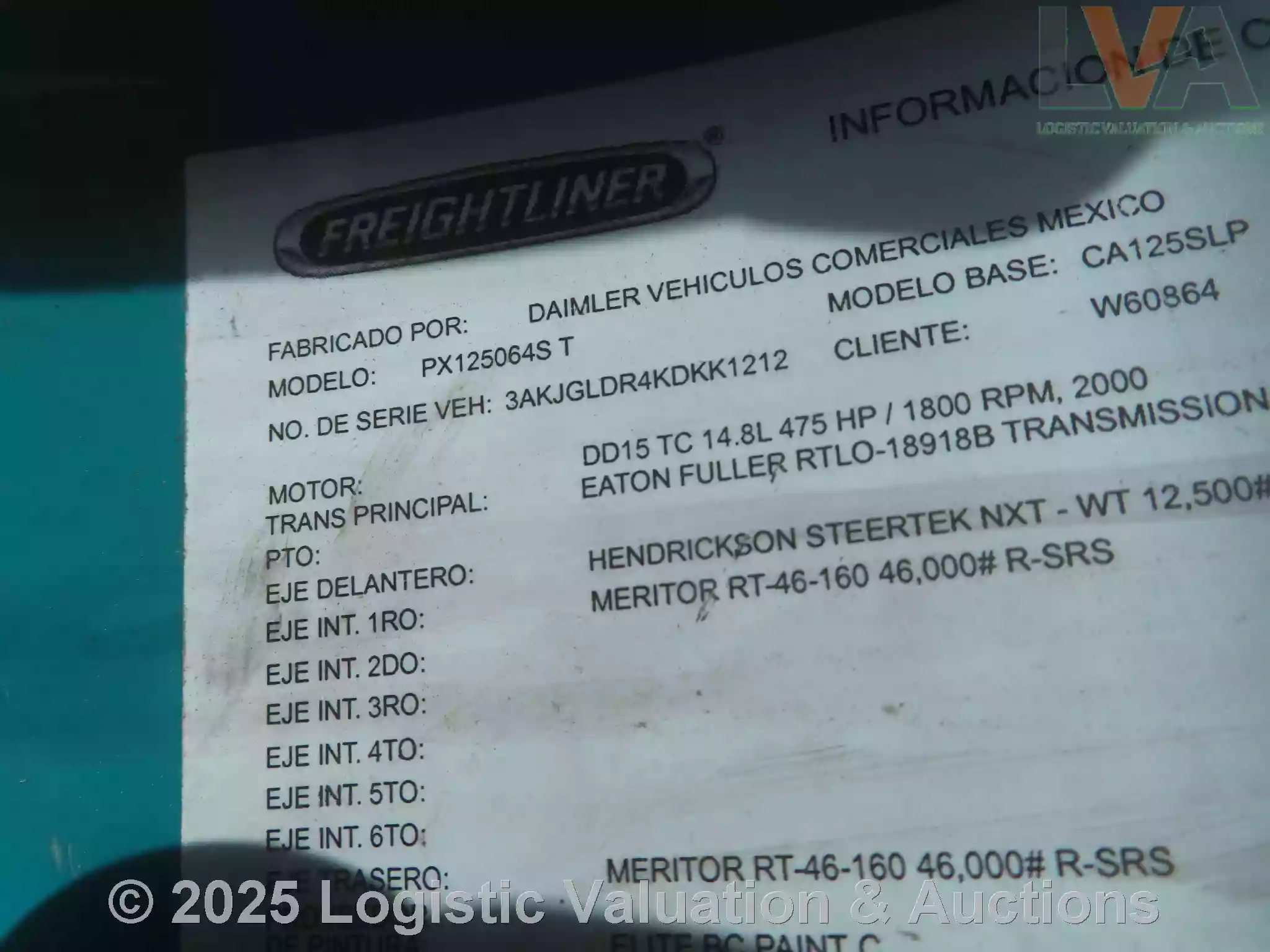 LAS IMÁGENES MOSTRADAS EN EL CATÁLOGO DE LOTES SON DE CARÁCTER ILUSTRATIVO. ES UN REQUISITO INDISPENSABLE PARA EL COMPRADOR REALIZAR INSPECCIÓN FÍSICA, YA QUE NO EXISTE NINGÚN TIPO DE GARANTÍA.