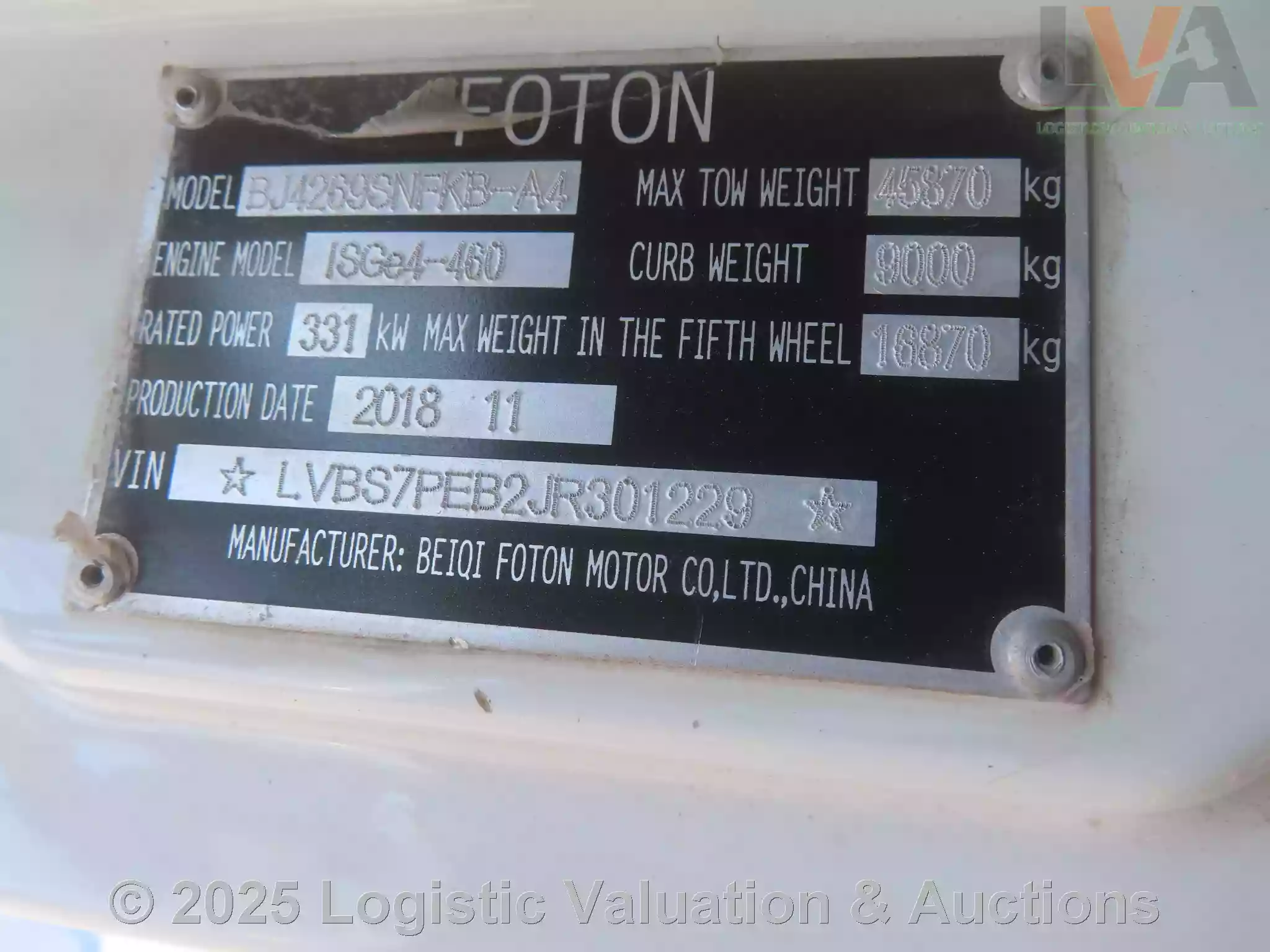 TRACTOCAMION, MARCA: FOTON, MODELO: ISGE4-460, AÑO: 2018, SERIE: LVBS7PEB2JR301229, CONDICIONES: NO OPERABLE, CARROCERIA REGULARES CONDICIONES, INTERIORES REGULARES CONDICIONES, MOTOR NO SE PUDO INSPECCIONAR BIEN, LLANTAS REGULARES CONDICIONES., ECO: TR-2357