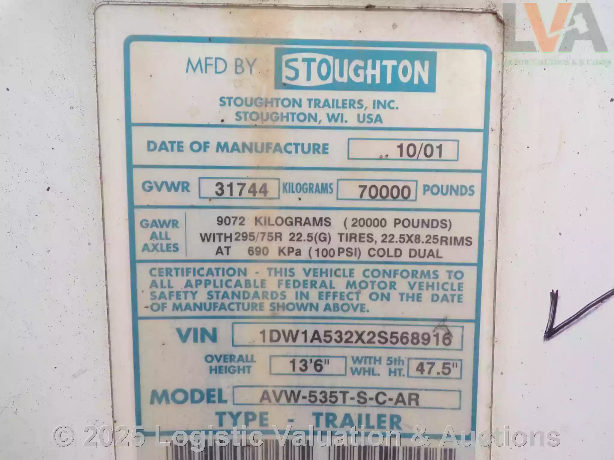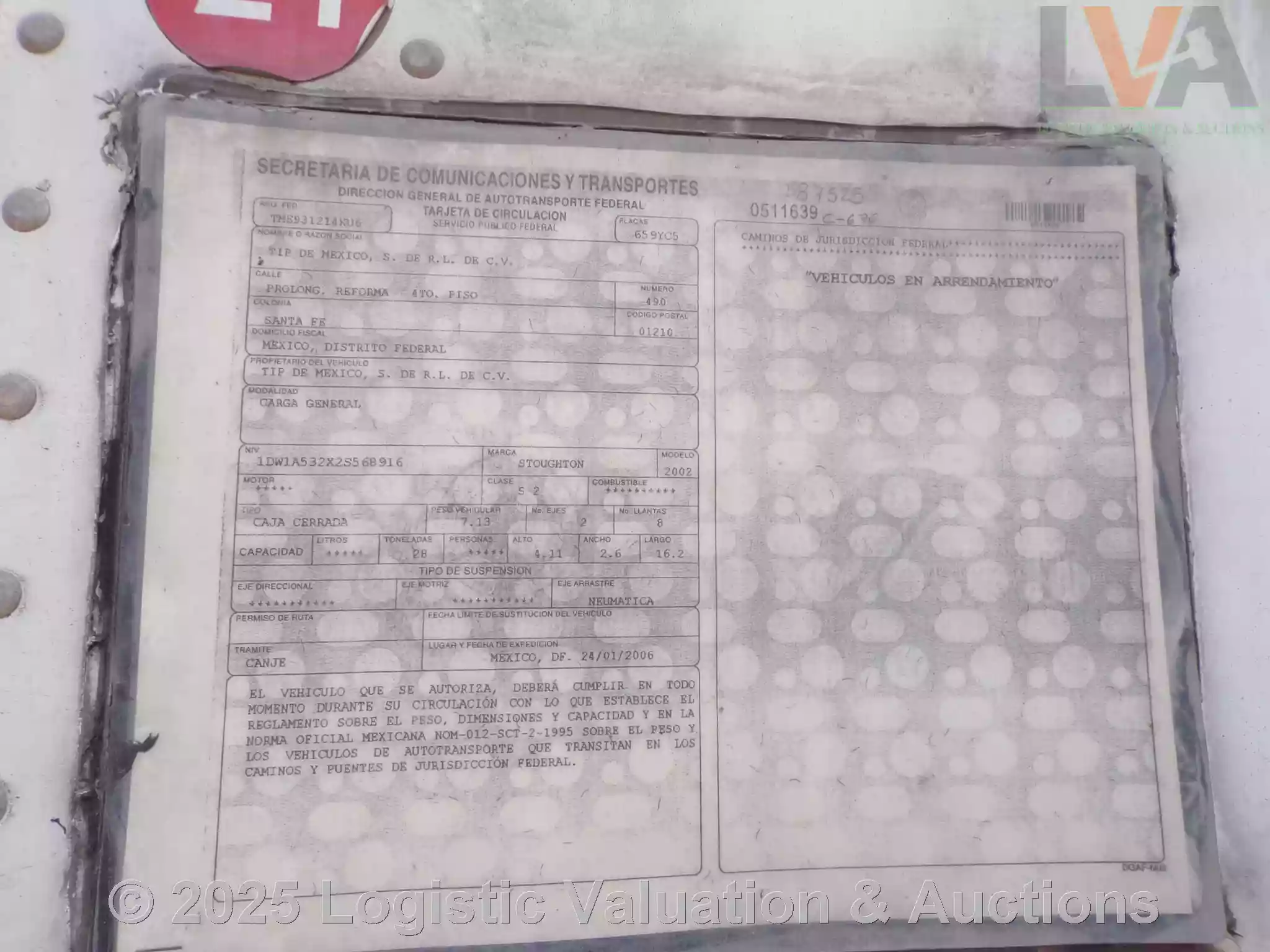 CAJA SECA, MARCA: STOUGHTON, MODELO: 53´, AÑO: 2002, SERIE: 1DW1A532X2S568916, CONDICIONES: PUERTA: ABATIBLE, SUSPENSIÓN: NEUMATICA, ECO: 676