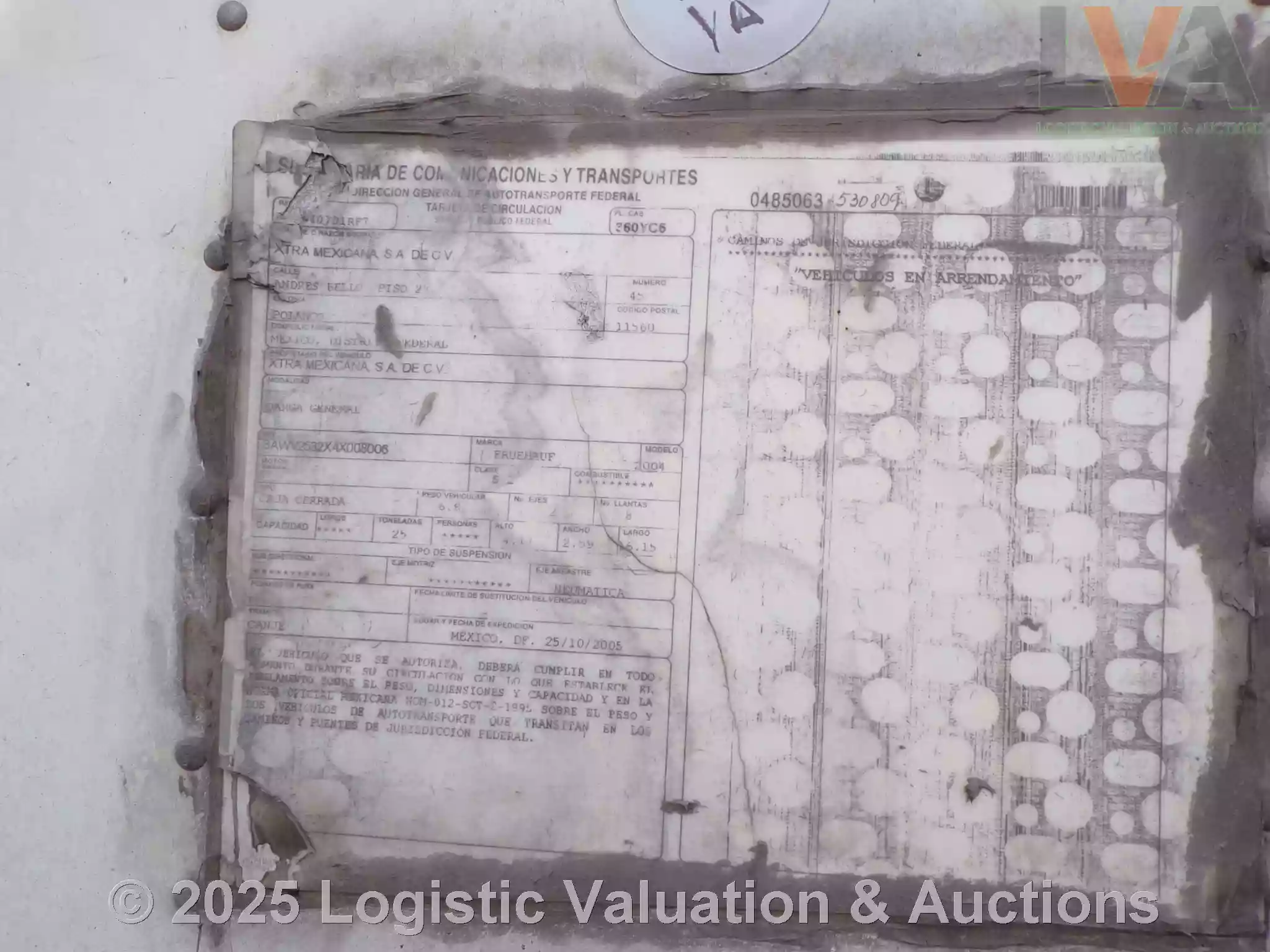 CAJA SECA, MARCA: FRUEHAUF, MODELO: 53´, AÑO: 2004, SERIE: 3AWV2532X4008006, CONDICIONES: PUERTA: ABATIBLE, SUSPENSIÓN: NEUMATICA, ECO: 7154