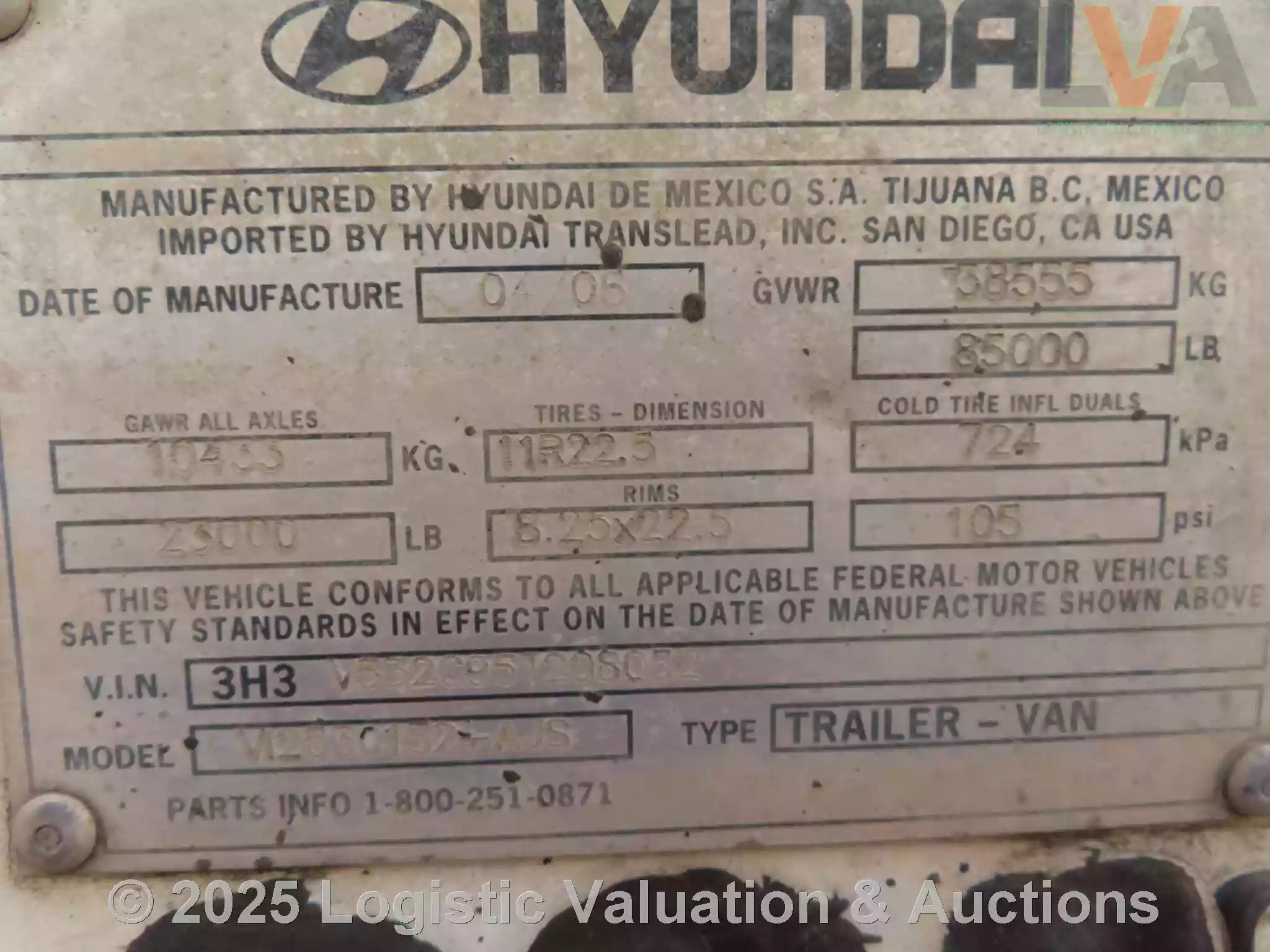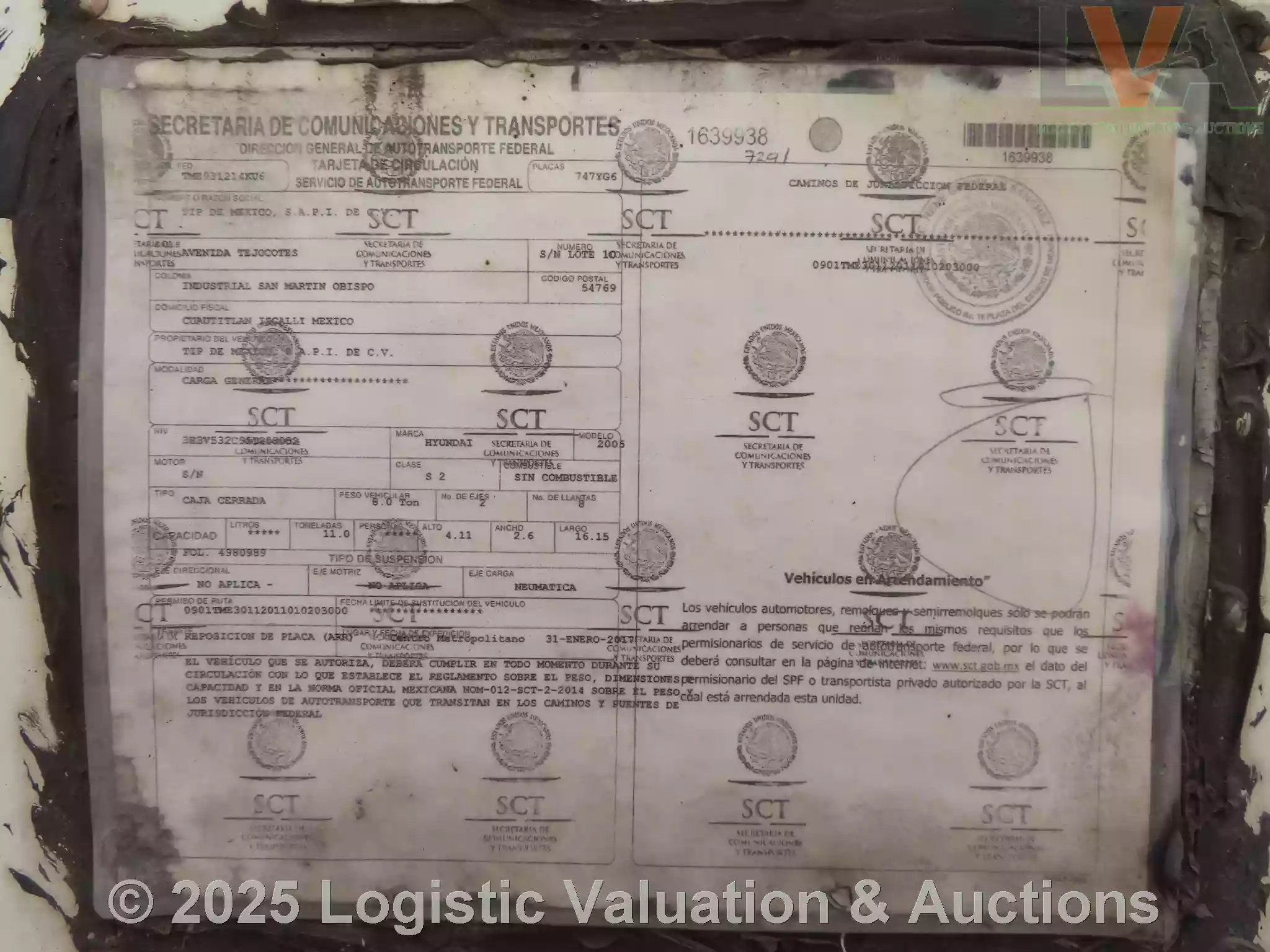 CAJA SECA, MARCA: HYUNDAI, MODELO: 53´, AÑO: 2005, SERIE: 3H3V532C95T208052, CONDICIONES: PUERTA: CORTINA, SUSPENSIÓN: NEUMATICA, ECO: 7291