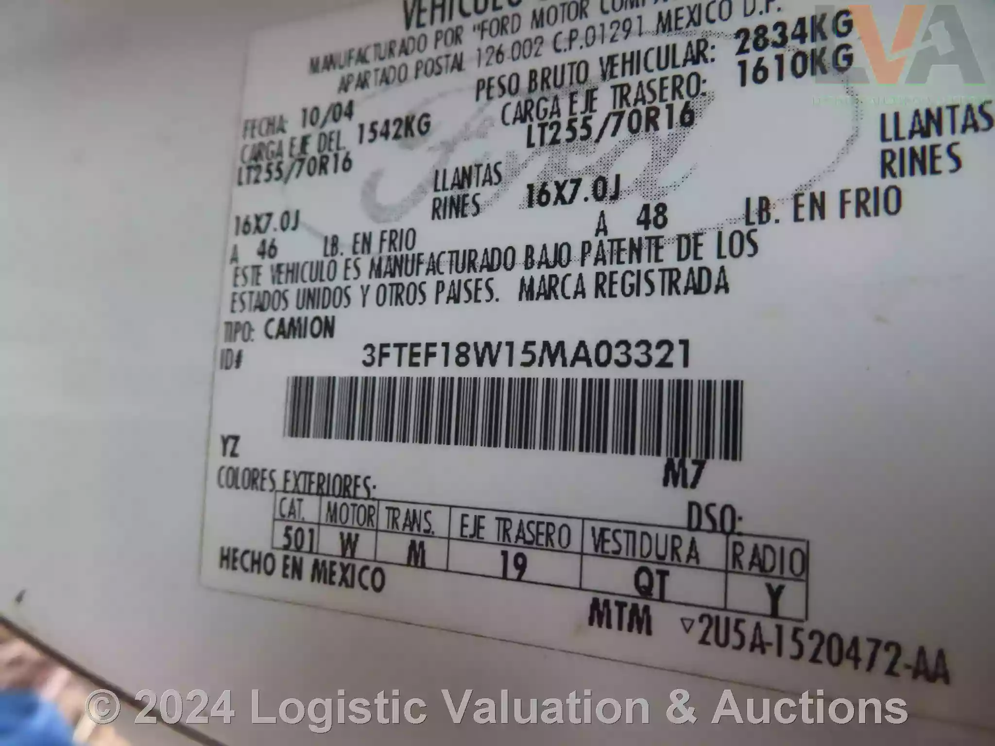 CAMIONETA, MARCA: FORD, MODELO: F250, AÑO: 2005, SERIE: 3FTEF18W15MA03321, DESCRIPCION: CARROCERIA EN REGULAR ESTADO, INTERIORES EN MAL ESTADO, MOTOR COMPLETO, SIN BATERIA FISICA, SIN LLAVES, LLANTAS EN MAL ESTADO, NO OPERA
