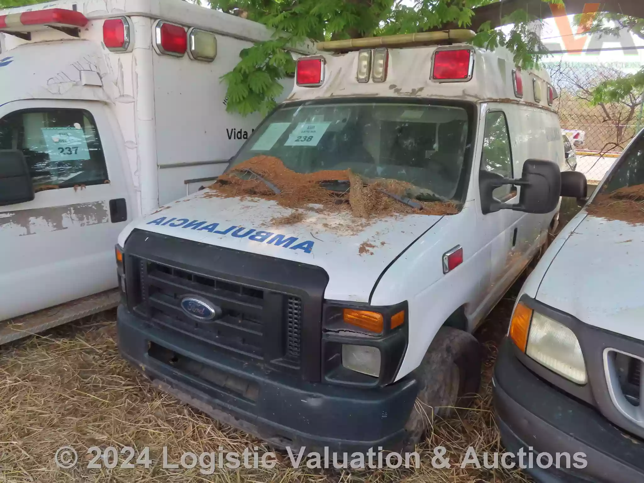 AMBULANCIA, MARCA: FORD, MODELO: E150, AÑO: 2009, SERIE: 1FTNE14W29DA63084, DESCRIPCION: CARROCERIA EN REGULAR ESTADO, INTERIORES EN MAL ESTADO, MOTOR CON PIEZAS FALTANTES, SIN BATERIA FISICA, SIN LLAVES, LLANTAS EN MAL ESTADO, NO OPERA