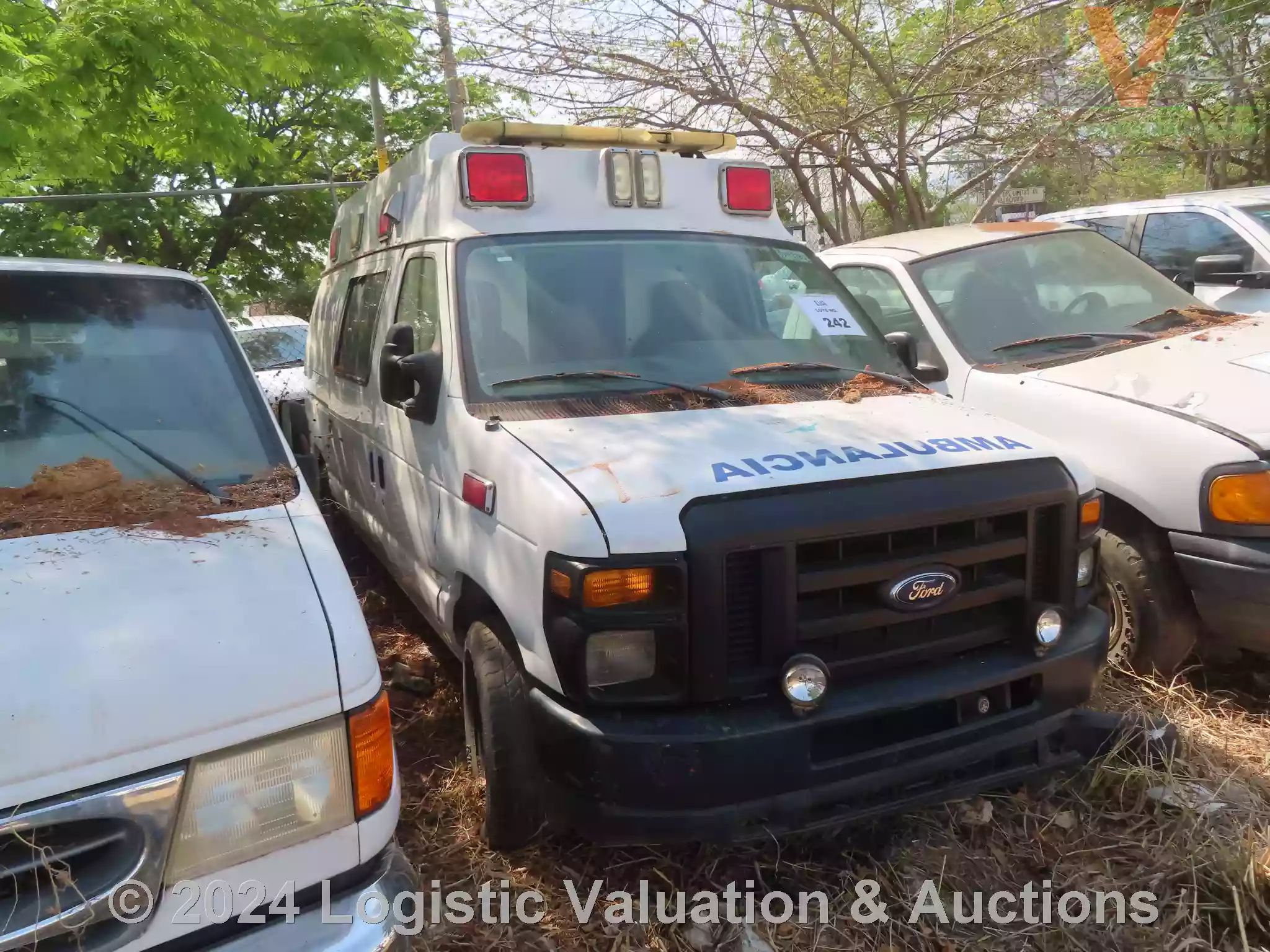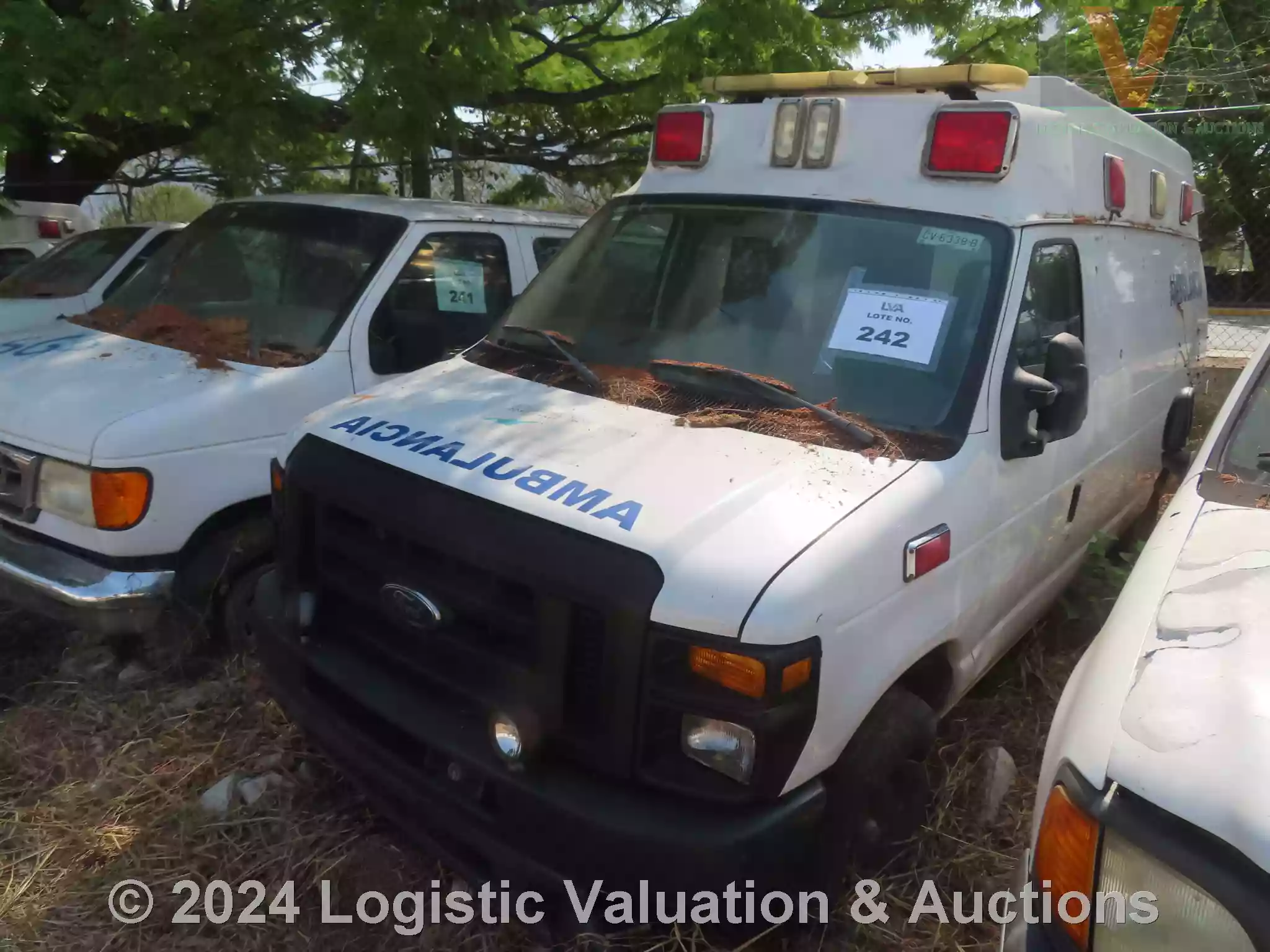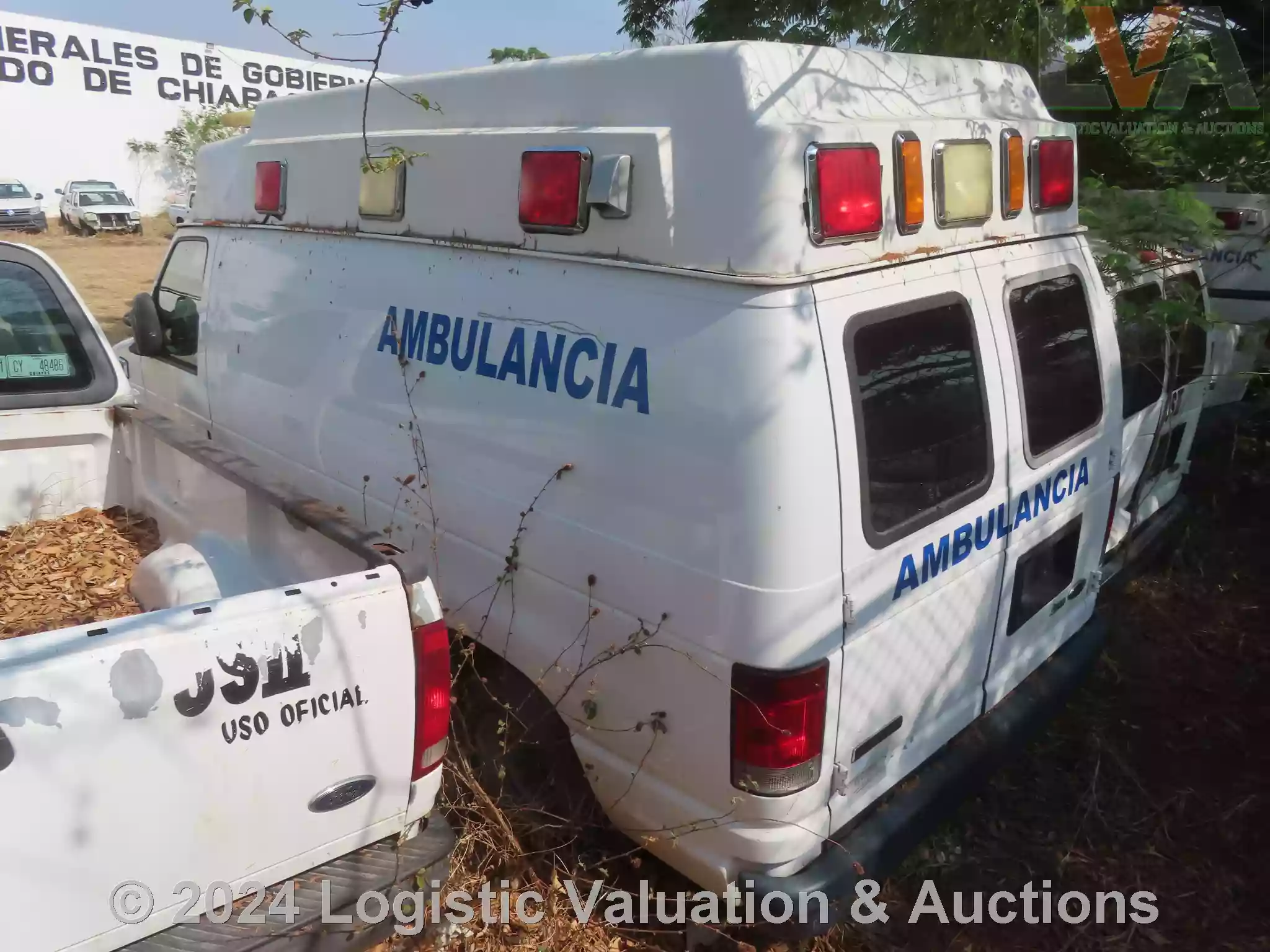 AMBULANCIA, MARCA: FORD, MODELO: E150, AÑO: 2009, SERIE: 1FTNE14W99DA91884, DESCRIPCION: CARROCERIA EN REGULAR ESTADO, INTERIORES EN MAL ESTADO, MOTOR CON PIEZAS FALTANTES, SIN BATERIA FISICA, SIN LLAVES, LLANTAS EN MAL ESTADO, NO OPERA