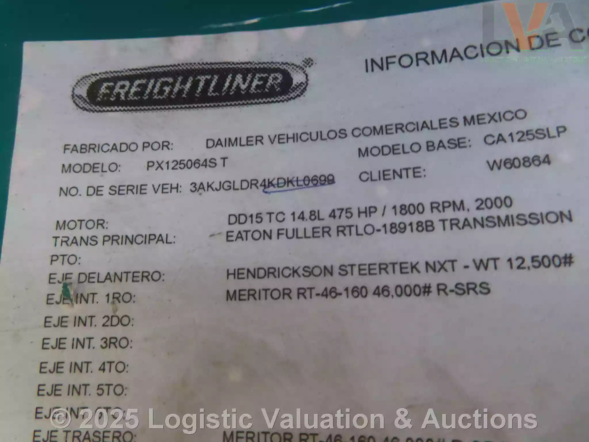TRACTOCAMION, MARCA: FREIGHTLINER, MODELO: CASCADIA 125, AÑO: 2019, SERIE: 3AKJGLDR4KDKL0699, CONDICIONES: CARROCERIA EN REGULARES CONDICIONES, INTERIORES EN REGULARES CONDICIONES, OPERABLE., KM: 866075