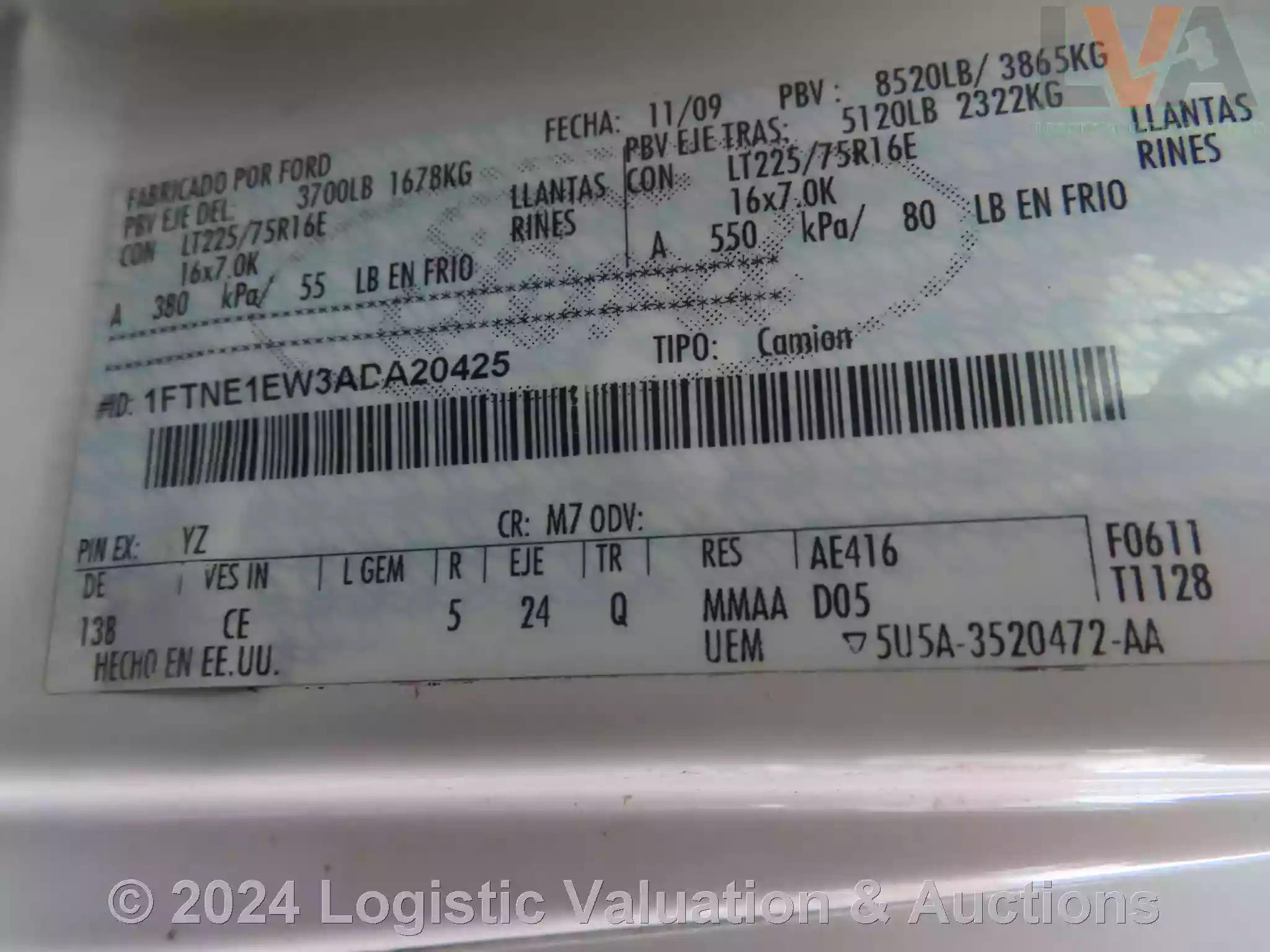 AMBULANCIA, MARCA: FORD, MODELO: E150, AÑO: 2010, SERIE: 1FTNE1EW3ADA20425, DESCRIPCION: CARROCERIA EN REGULAR ESTADO, INTERIORES EN MAL ESTADO, MOTOR COMPLETO, SIN BATERIA, SIN LLAVES, LLANTAS EN MAL ESTADO, NO OPERA