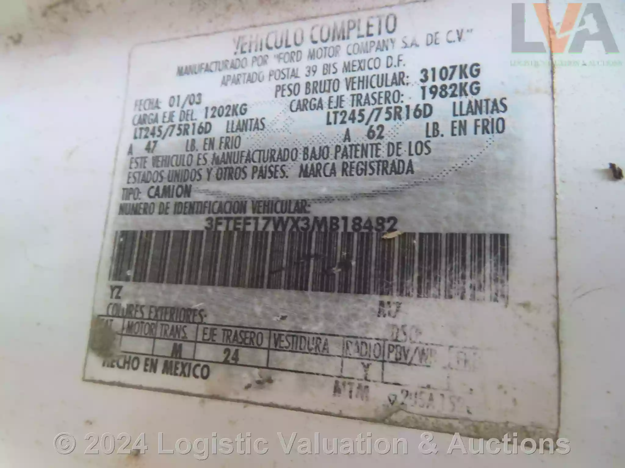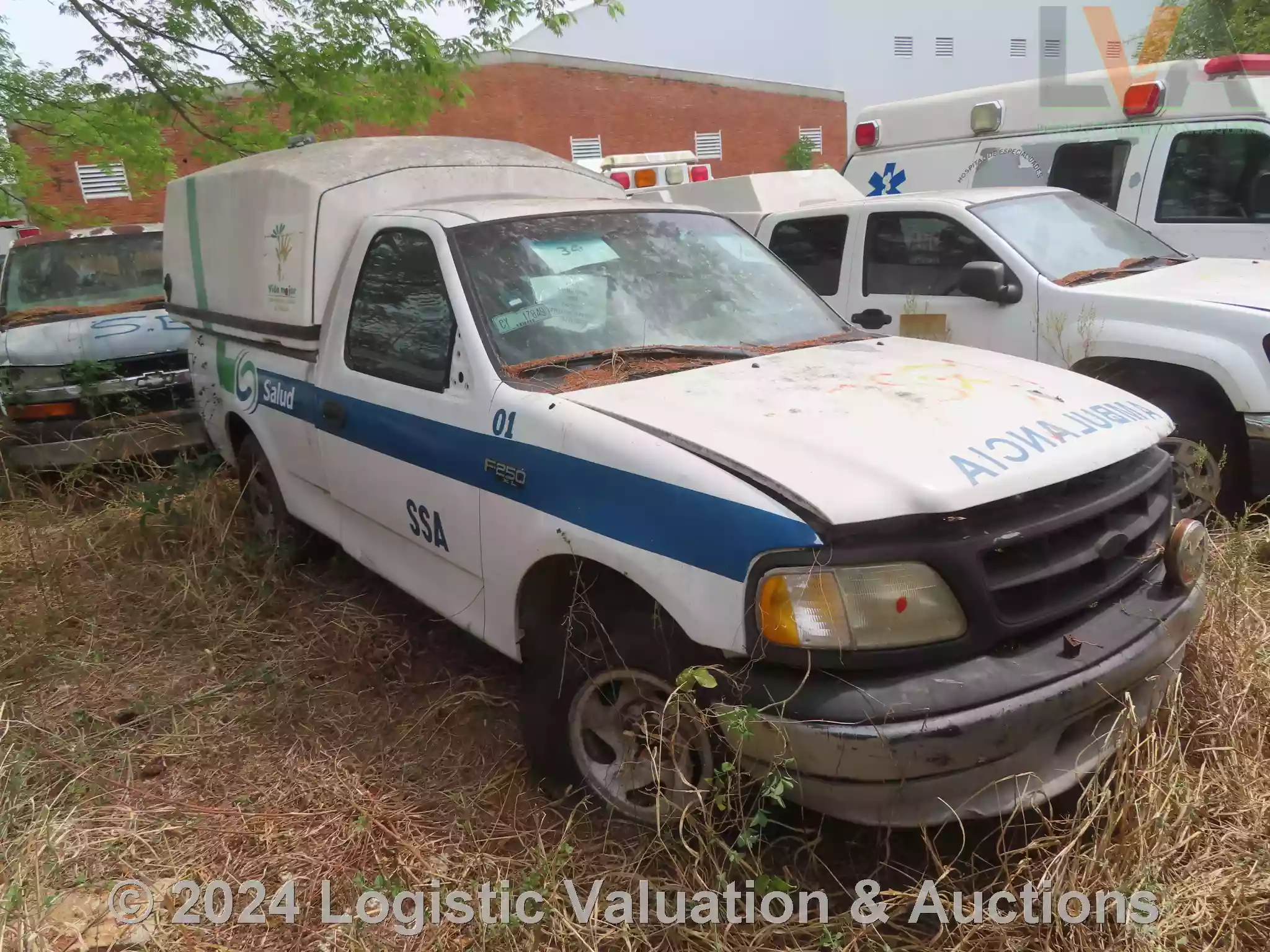 AMBULANCIA, MARCA: FORD, MODELO: F250, AÑO: 2003, SERIE: 3FTEF17WX3MB18482, DESCRIPCION: CARROCERIA EN REGULAR ESTADO, INTERIORES EN MAL ESTADO, MOTOR CON PIEZAS FALTANTES, SIN BATERIA, SIN LLAVES, LLANTAS EN MAL ESTADO, NO OPERA