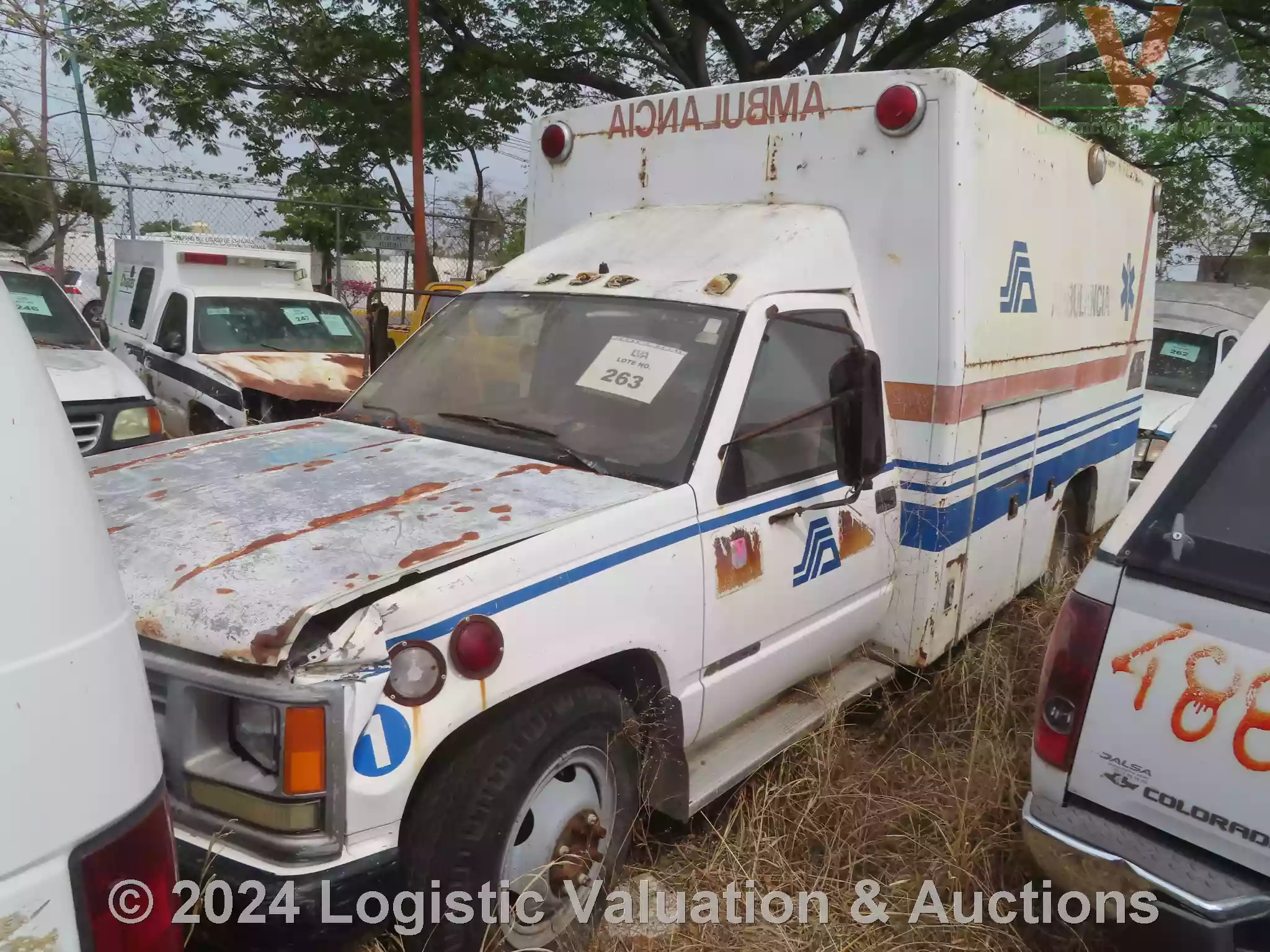 AMBULANCIA, MARCA: CHEVROLET, MODELO: 3500, AÑO: 2005, SERIE: S/N, DESCRIPCION: NO SE ENCONTRO FISICAMENTE PLACA DE SERIE NI EN CHASIS POR CORROSION CARROCERIA EN MAL ESTADO, INTERIORES EN MAL ESTADO, MOTOR CON PIEZAS FALTANTES, SIN BATERIA, SIN LLAVES, LLANTAS EN MAL ESTADO, NO OPERA