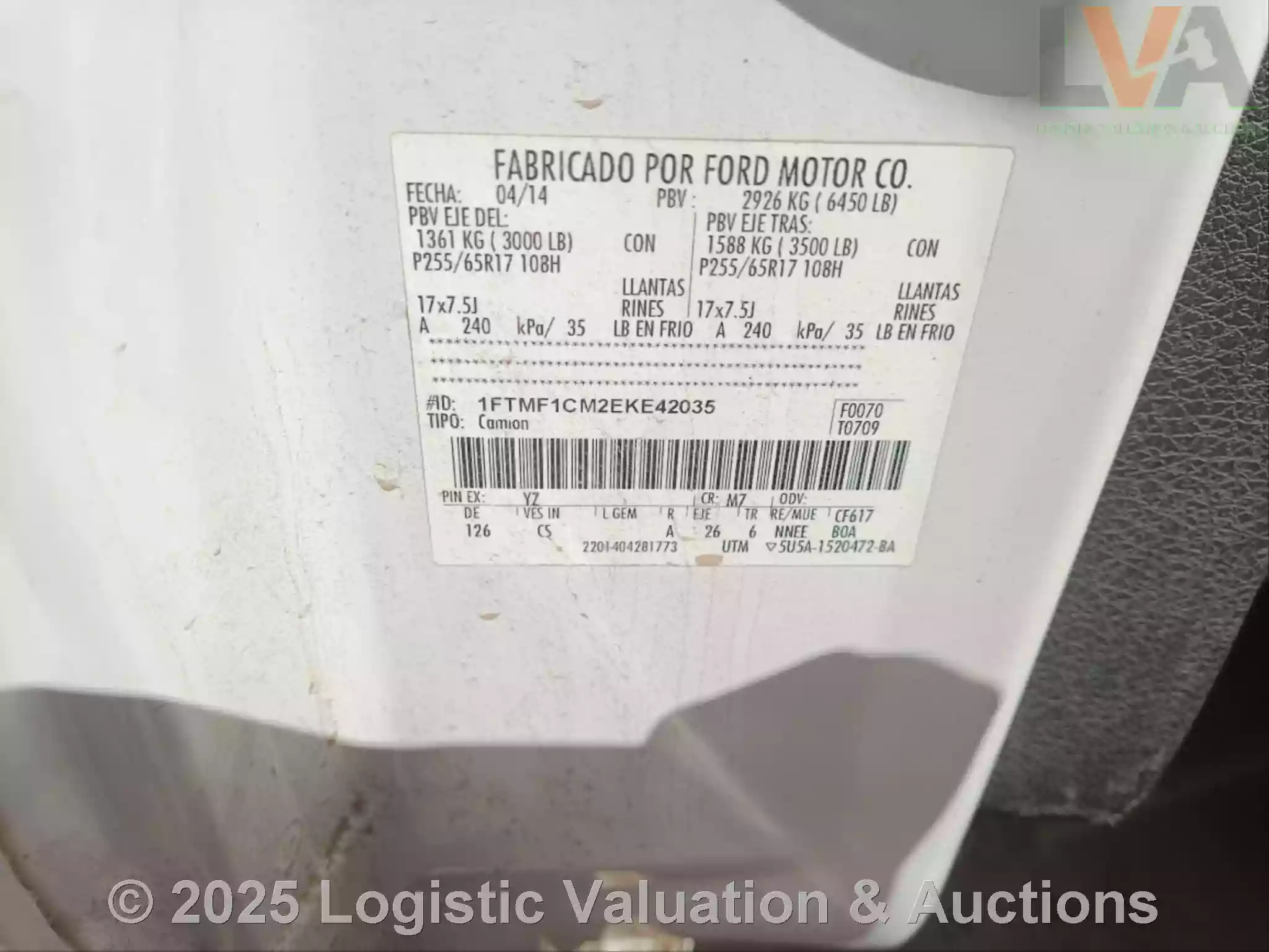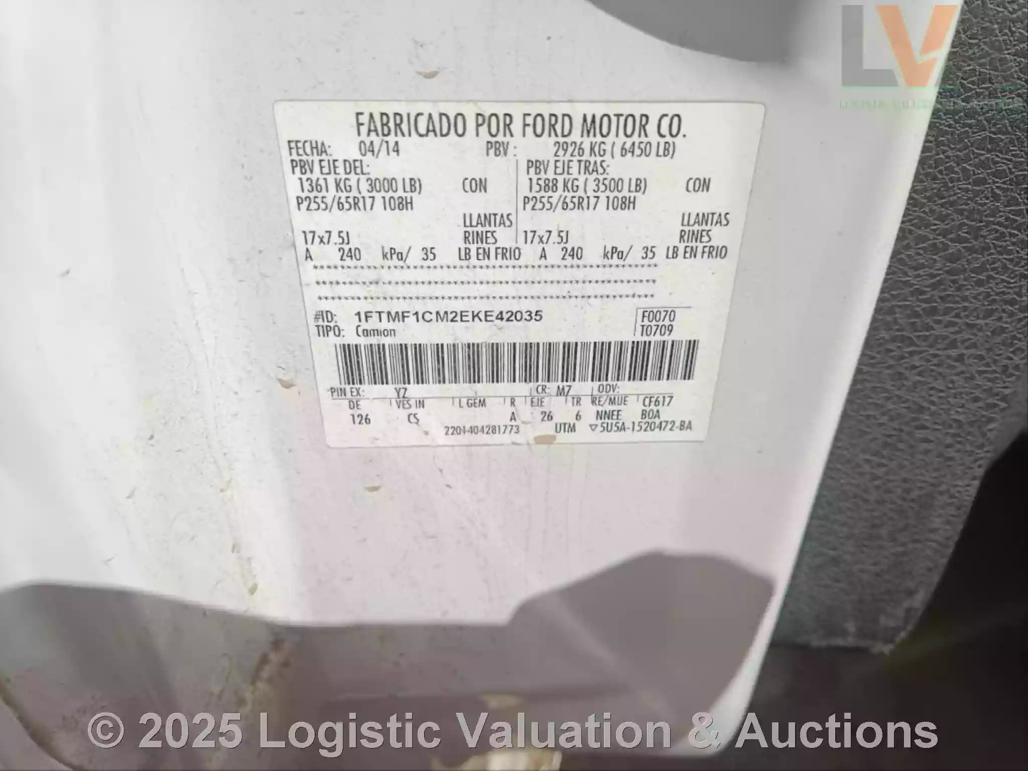 CAMIONETA, MARCA: FORD, MODELO: F150,AÑO: 2014, SERIE: 1FTMF1CM2EKE42035, CONDICIONES: CARROCERIA EN REGULARES CONDICIONES, INTERIORES EN MAL ESTADO, VESTIDURAS ROTAS, SE DESCONOCE SI OPERA., ECO: AT-1065