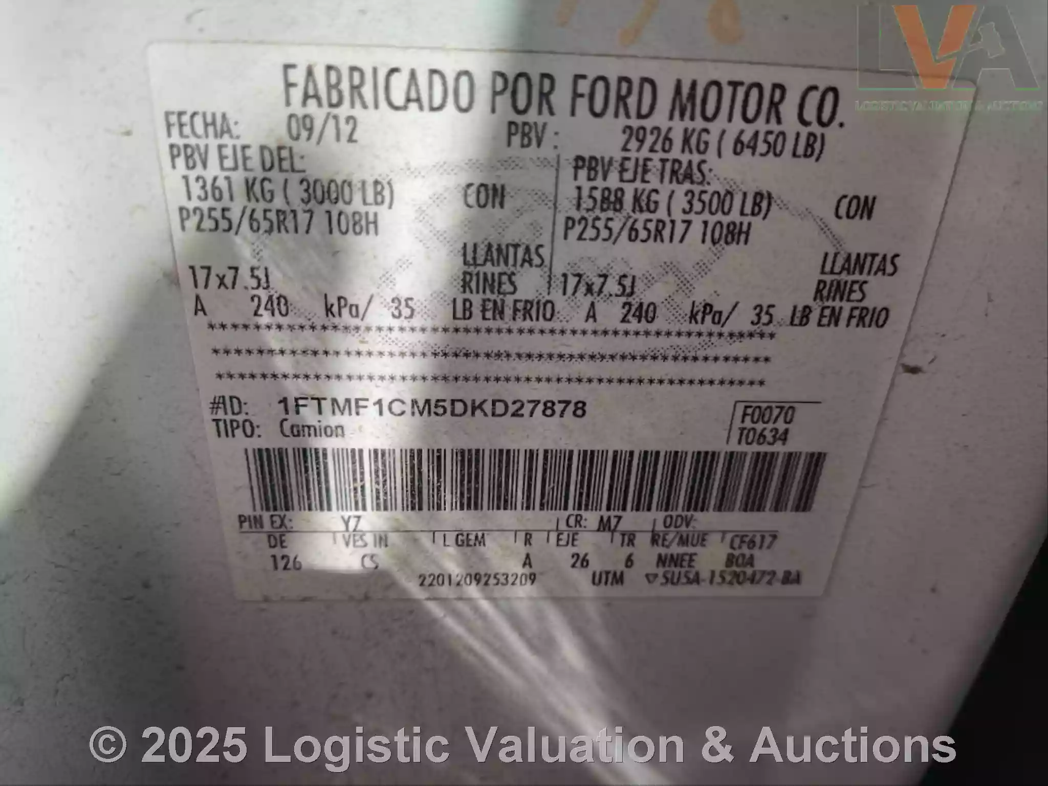 CAMIONETA, MARCA: FORD, MODELO: F150,AÑO: 2013, SERIE: 1FTMF1CM5DKD27878, CONDICIONES: CARROCERIA EN REGULARES CONDICIONES, RAYONES EN CARROCERIA, SIN TAPA DE BATEA, INTERIORES EN REGULARES CONDICIONES, VESTIDURAS ROTAS. , ECO: AT-978