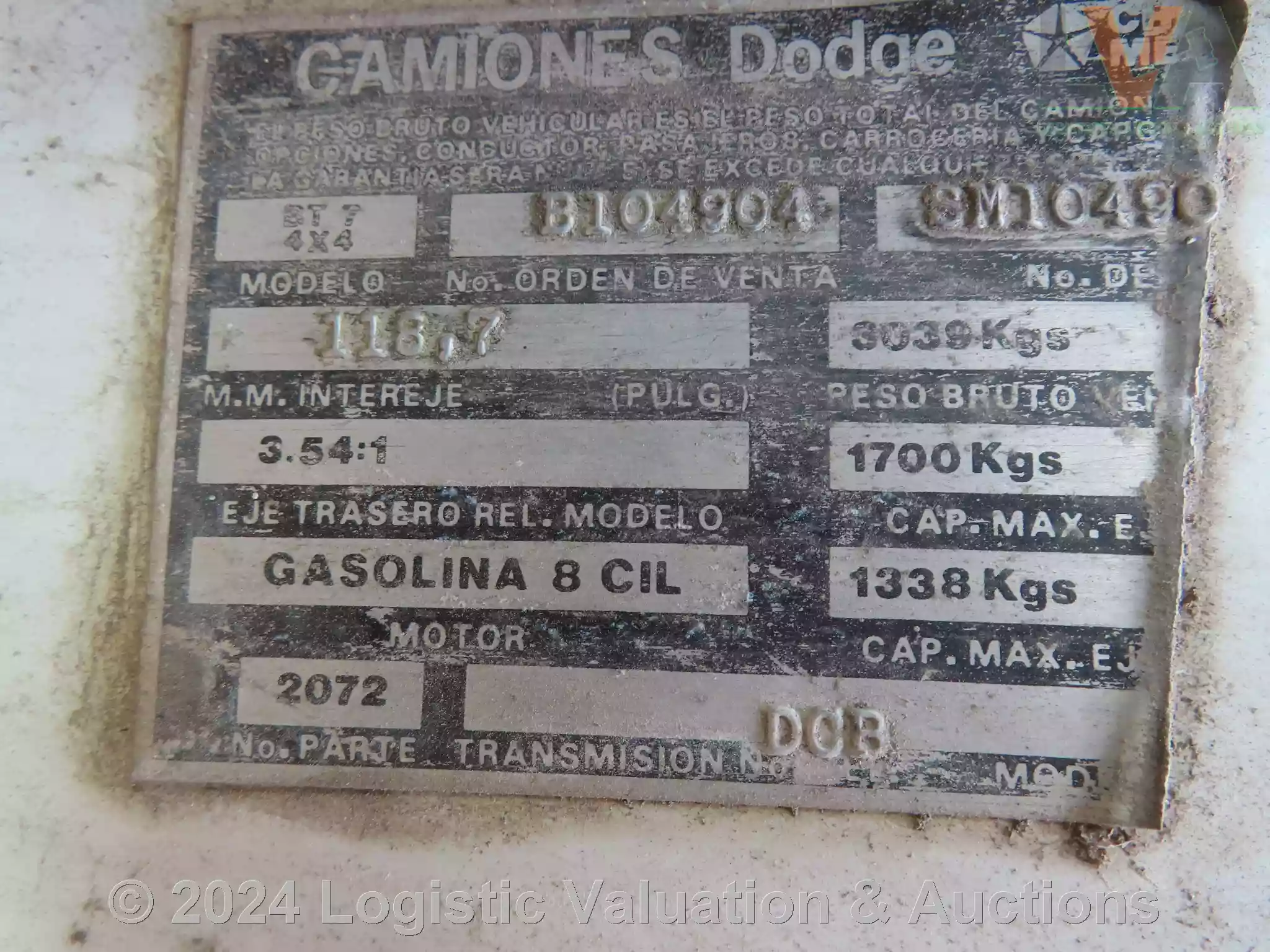 CAMIONETA, MARCA: DODGE, MODELO: 2500 4X4, AÑO: 1995, SERIE: SM104904, DESCRIPCION: CARROCERIA EN MAL ESTADO, INTERIORES EN MAL ESTADO, MOTOR CON PIEZAS FALTANTES, SIN BATERIA FISICA, SIN LLAVES, LLANTAS EN MAL ESTADO, NO OPERA
