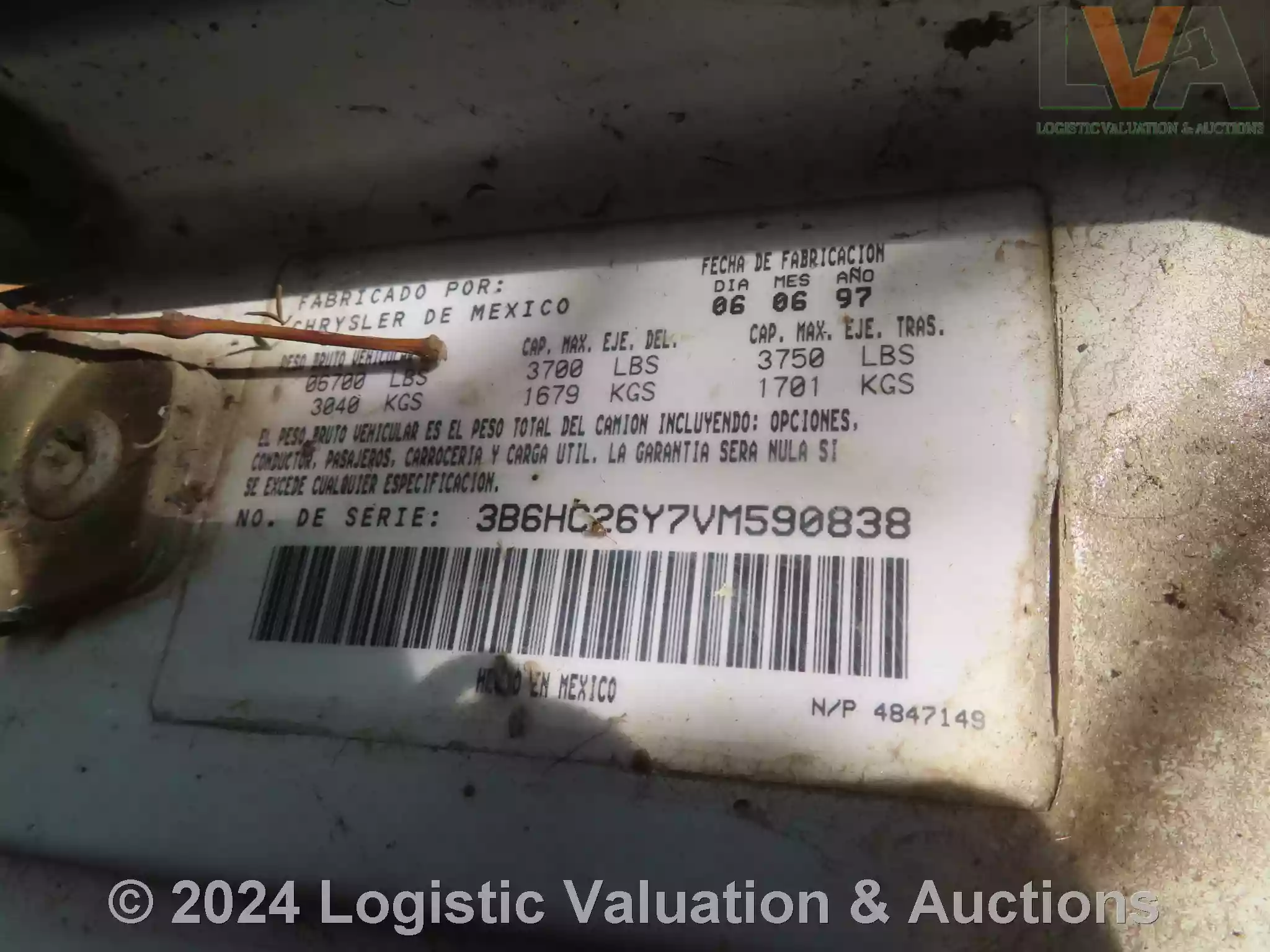 AMBULANCIA, MARCA: DODGE, MODELO: 2500, AÑO: 1997, SERIE: 3B6HC26Y7VM590838, DESCRIPCION: CARROCERIA EN MAL ESTADO, INTERIORES EN MAL ESTADO, MOTOR COMPLETO, SIN LLAVES, LLANTAS EN MAL ESTADO, NO OPERA