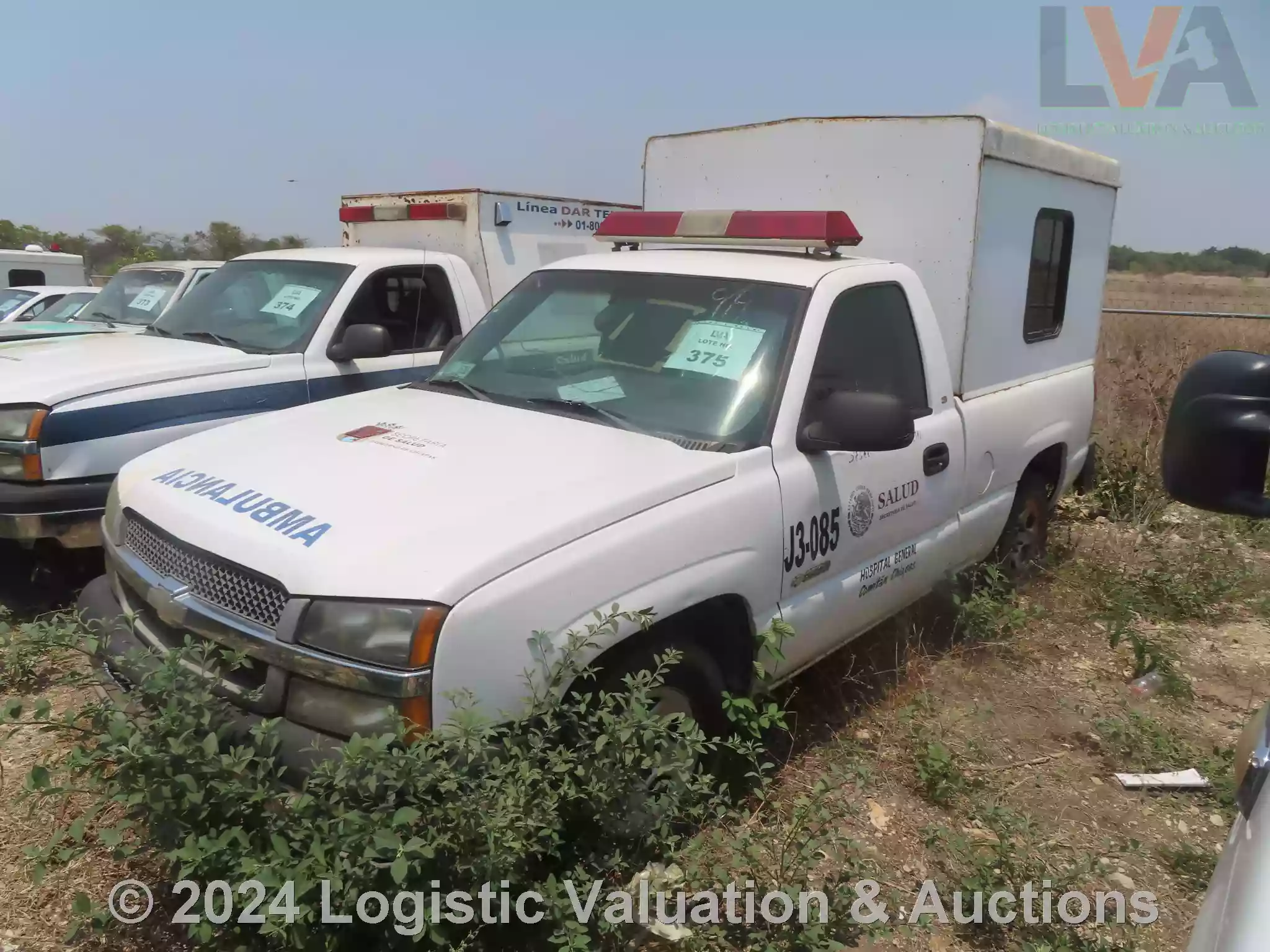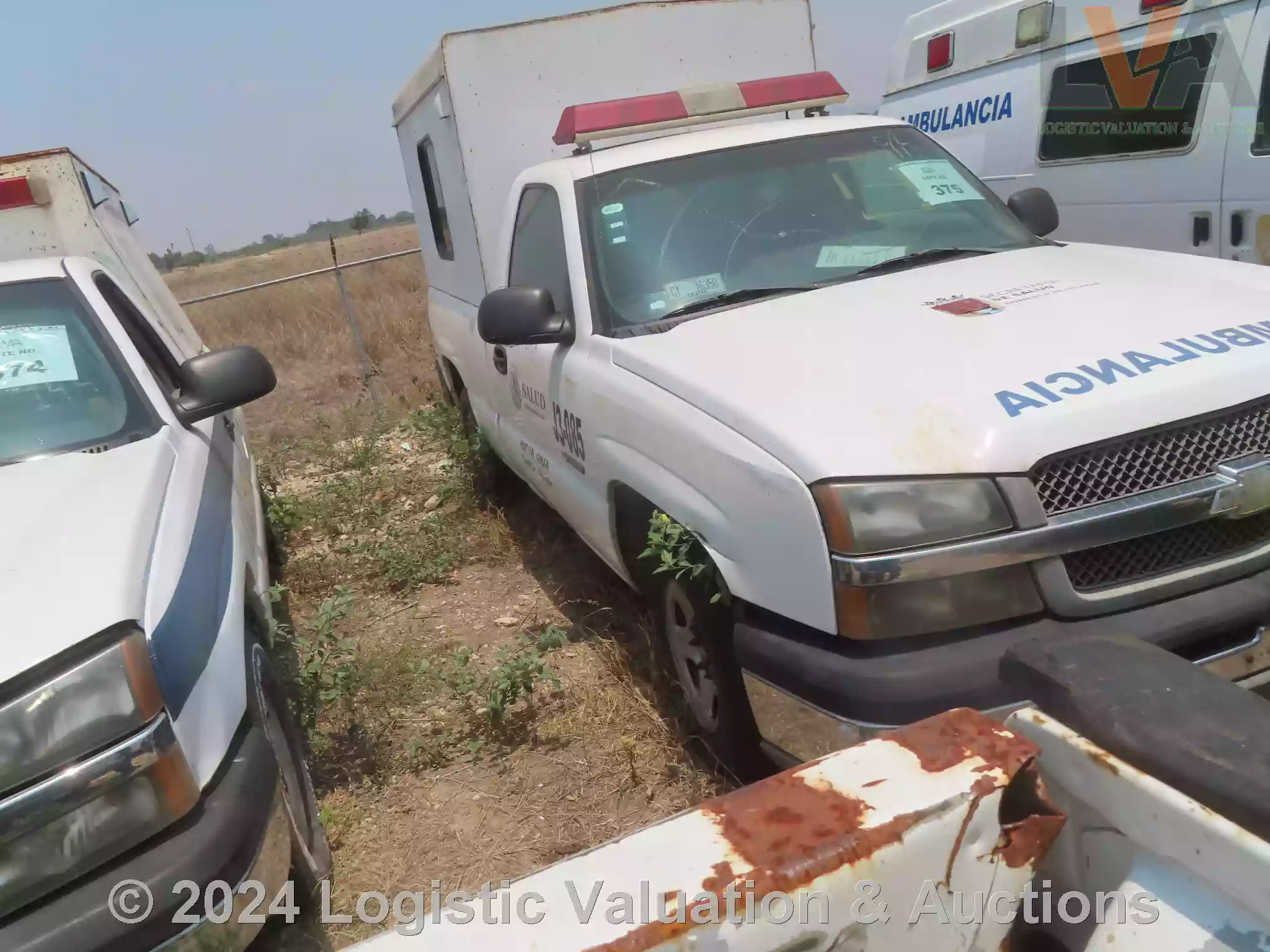 AMBULANCIA, MARCA: CHEVROLET, MODELO: SILVERADO, AÑO: 2003, SERIE: 1GCEC14VX3Z256915, DESCRIPCION: CARROCERIA EN REGULAR ESTADO, INTERIORES EN MAL ESTADO, MOTOR COMPLETO, SIN BATERIA FISICA, SIN LLAVES, LLANTAS EN MAL ESTADO, NO OPERA