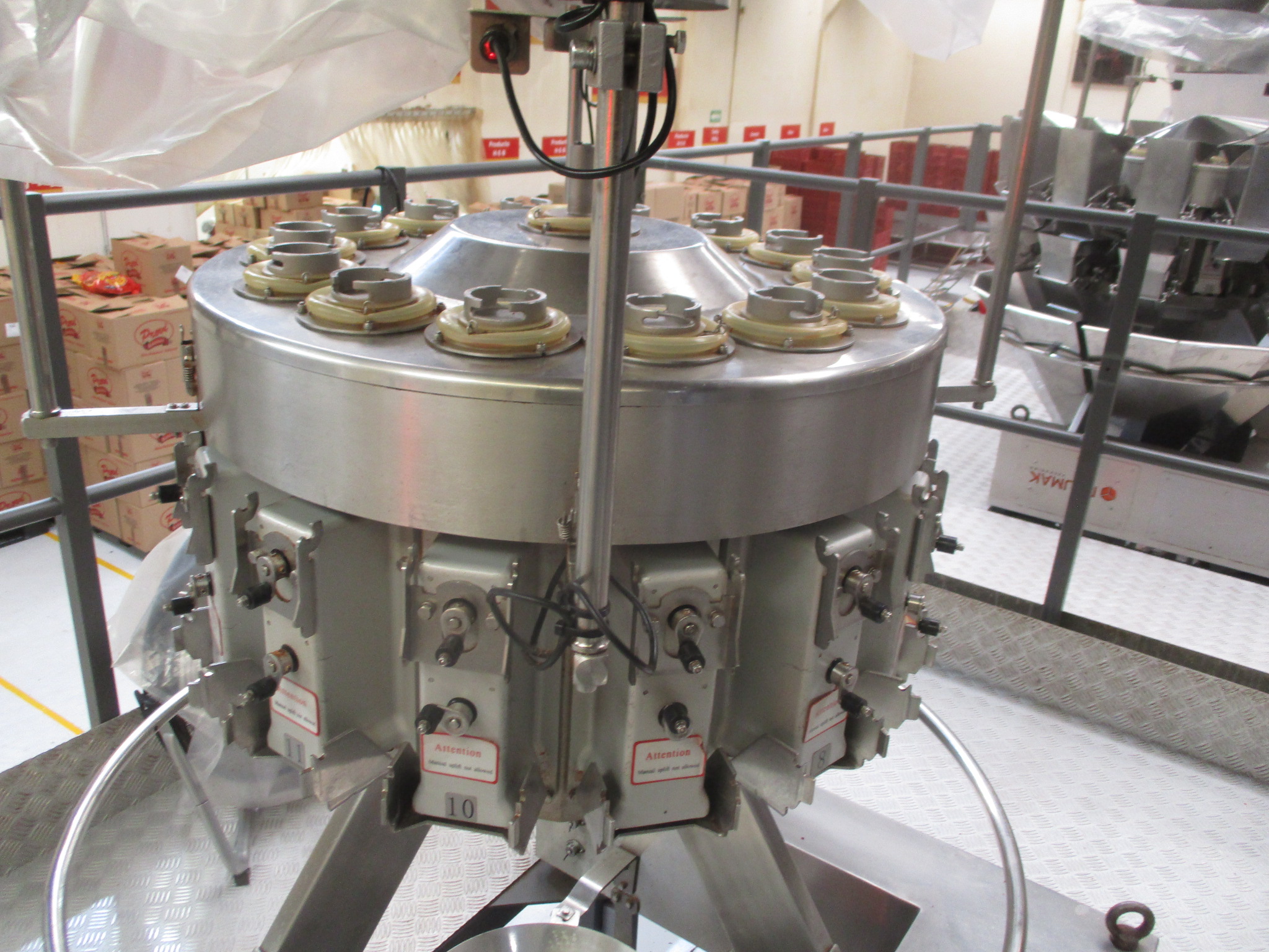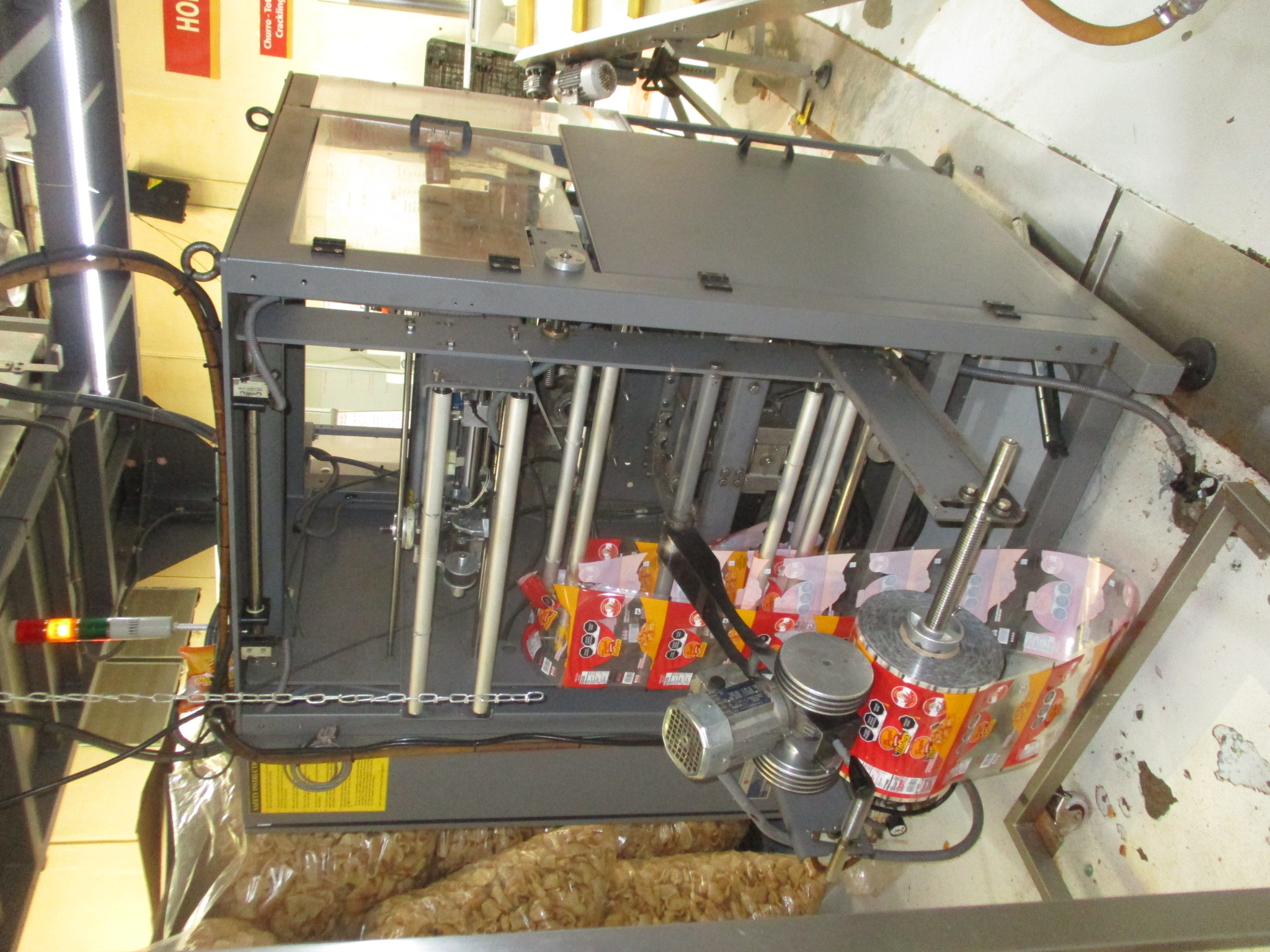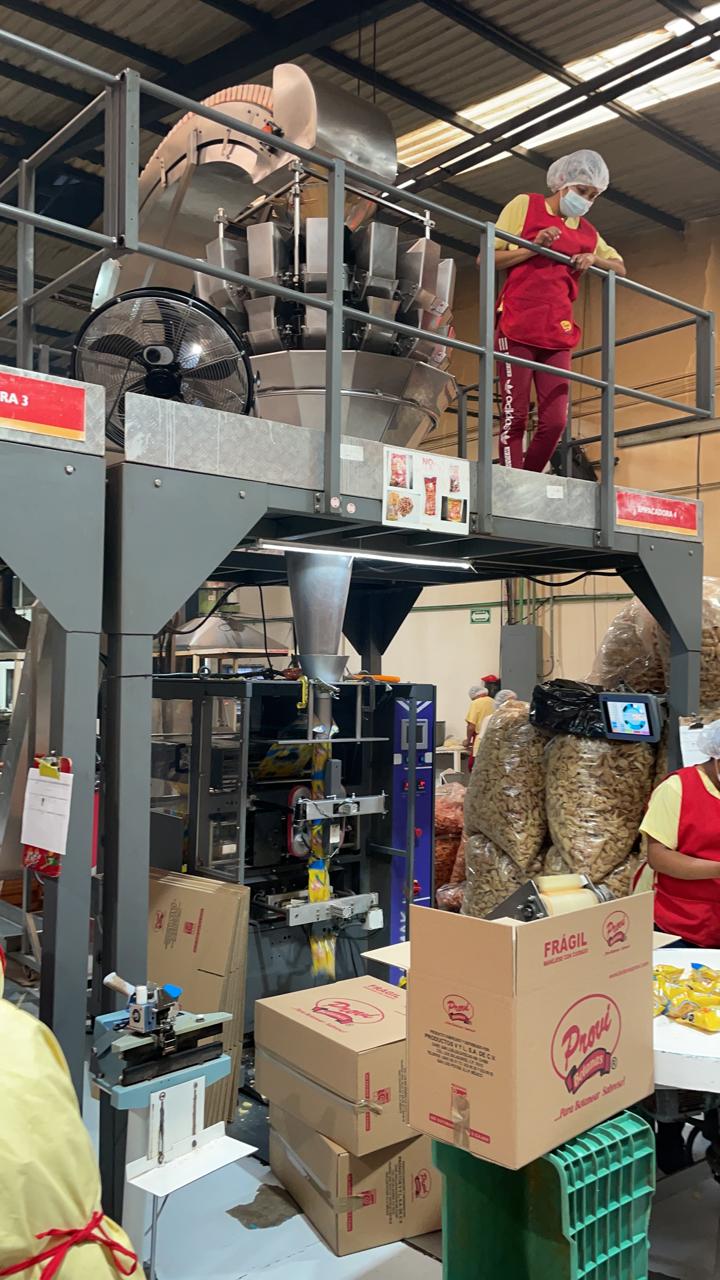 LOTE COMPUESTO POR UNA EMBOLSADORA DE FRITURAS, CONDICIONES, EMBOLSADORA AUTOMÁTICA DE FRITURAS, CON BALANZA DE MÚLTIPLES CABEZALES CON 16 CANGILONES DE 2.5 LTS, INCLUYE FECHADOR HOT STAMPING Y BANDA COLECTORA DE PAQUETES EMPAQUE TIPO ALMOADA MODELO 217, ELEVADOR VERTICAL Y MESA DE RECOLECCION, LOS GRAMAJES SON: 25, 40, 50, 65, 90, 100, 160, 200