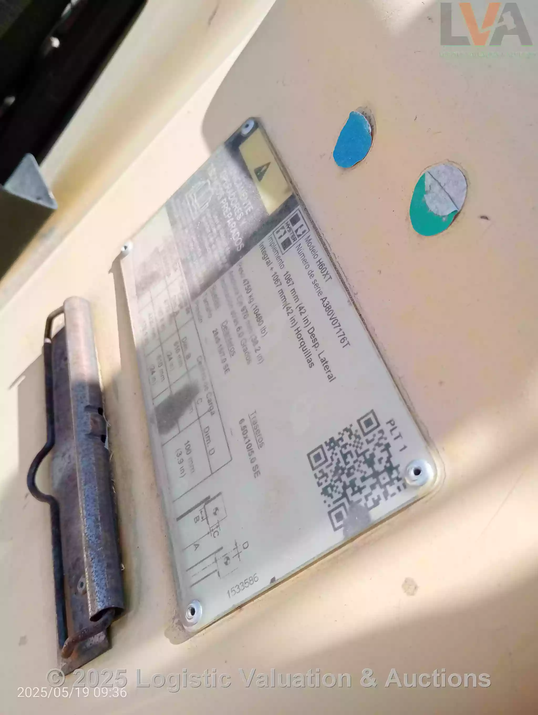 MONTACRAGAS DE COMBUSTION, MARCA: HYSTER, MODELO: H60XT,AÑO: 2019, SERIE: A380V07176T, CONDICIONES: SE DESCONOCE SI ES OPERABLE, NO TIENE LAS LLANTAS TRASERAS, SIN HORQUILLAS, TANQUE DE GAS Y BATERIA, LLANTAS EN MALAS CONDICIONES, CAPACIDAD CARGAS: 2490 KG