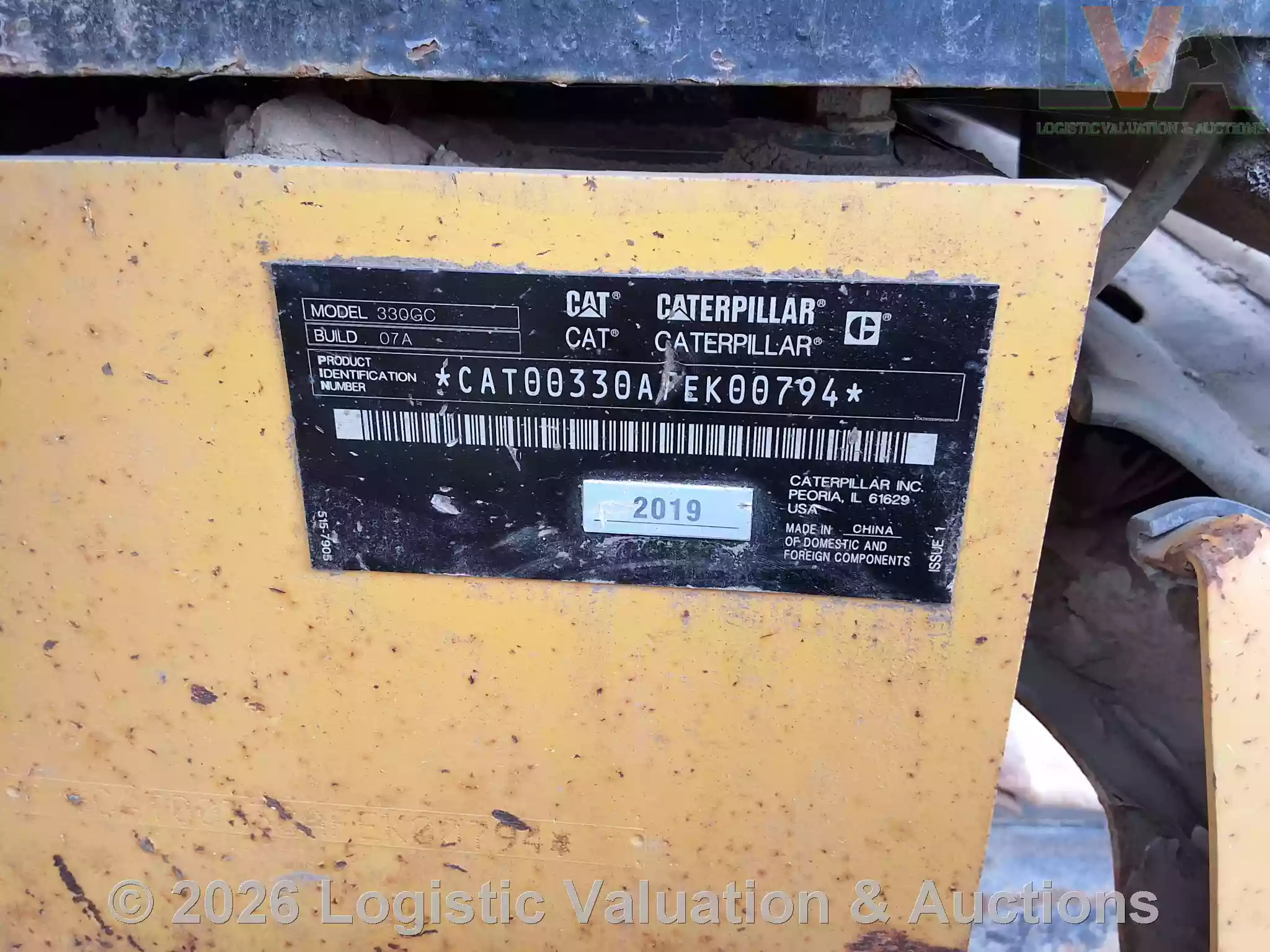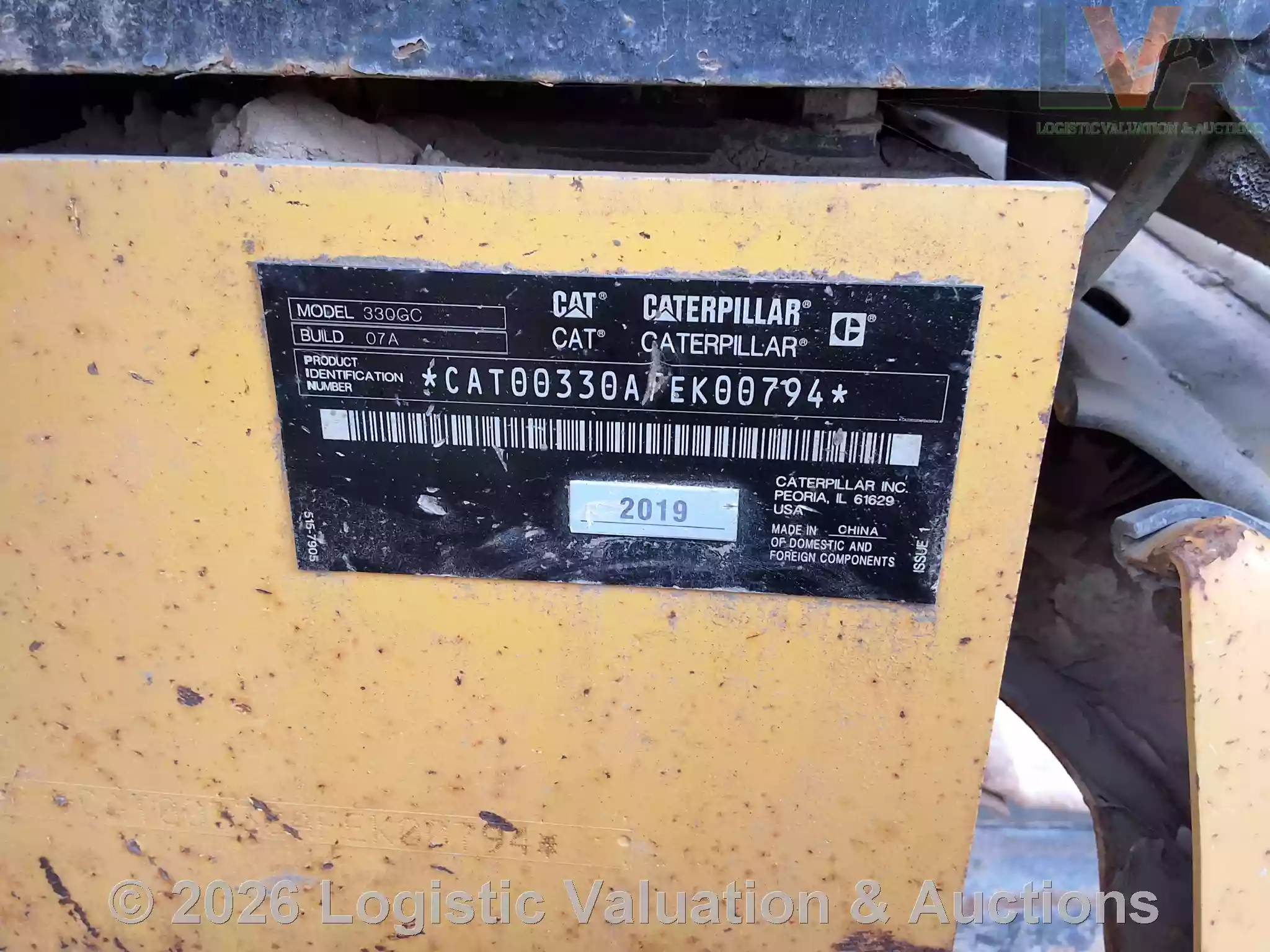 EXCAVADORA, MARCA: CATERPILLAR, MODELO: 330GC, AÑO: 2019, SERIE: CAT00330APEK00794, CONDICIONES: REGULARES CONDICIONES GENERALES.