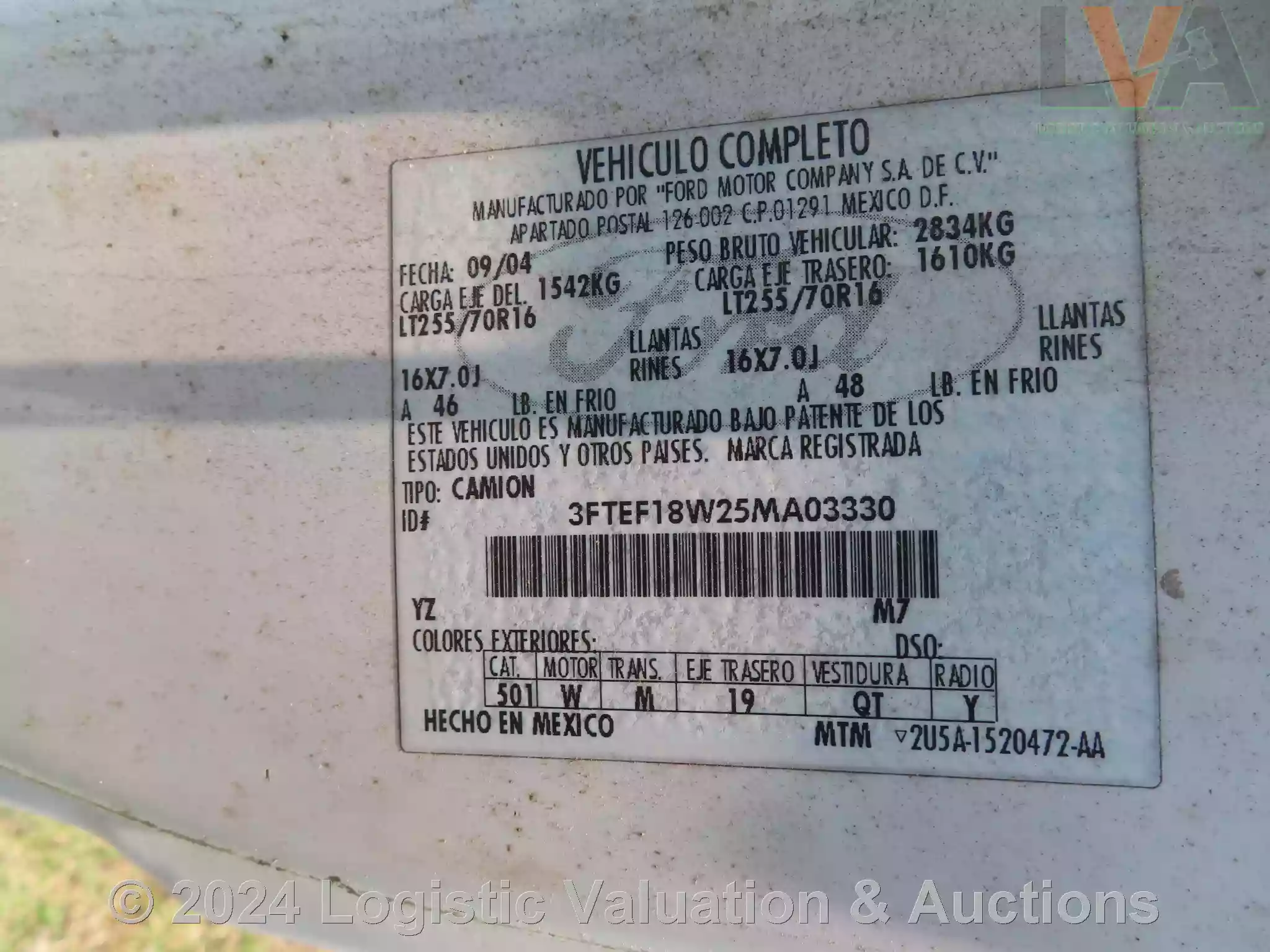 CAMIONETA, MARCA: FORD, MODELO: F250, AÑO: 2005, SERIE: 3FTEF18W25MA03330, DESCRIPCION: CARROCERIA EN REGULAR ESTADO, INTERIORES EN REGULAR ESTADO, MOTOR COMPLETO, SIN BATERIA FISICA, SIN LLAVES, LLANTAS EN MAL ESTADO, NO OPERA