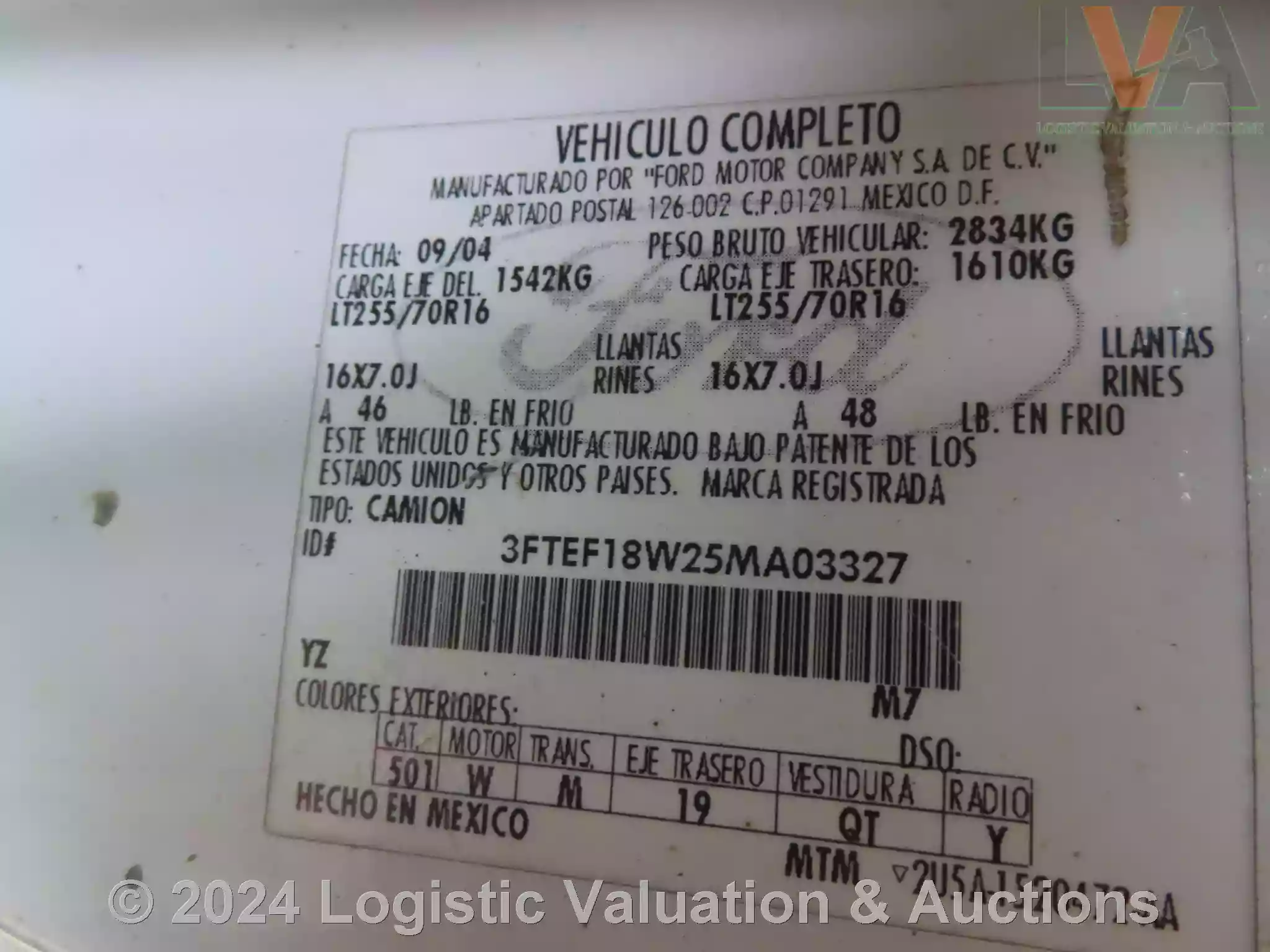 CAMIONETA, MARCA: FORD, MODELO: F250, AÑO: 2005, SERIE: 3FTEF18W25MA03327, DESCRIPCION: CARROCERIA EN REGULAR ESTADO, INTERIORES EN REGULAR ESTADO, MOTOR COMPLETO, SIN BATERIA FISICA, SIN LLAVES, LLANTAS EN MAL ESTADO, NO OPERA
