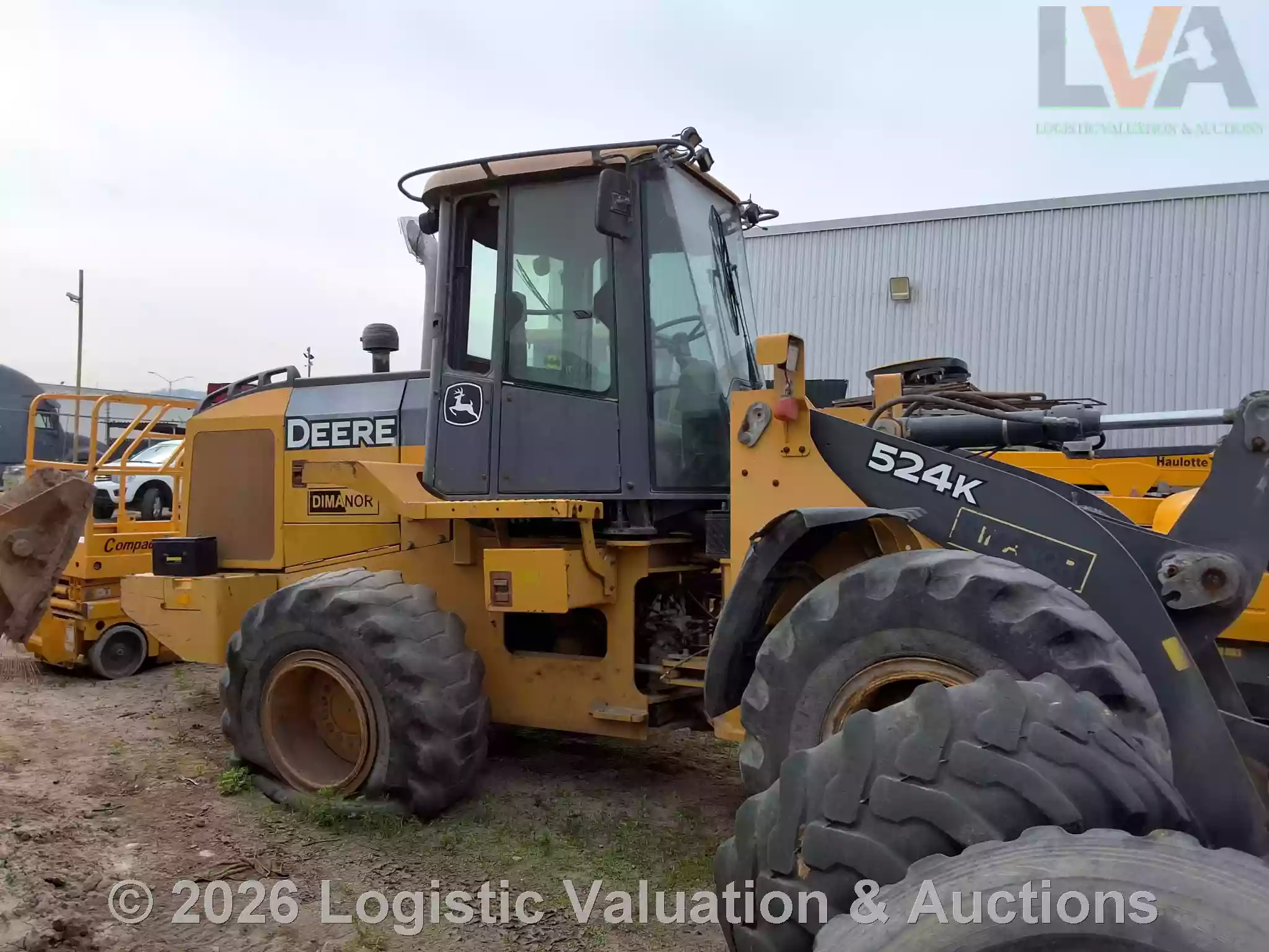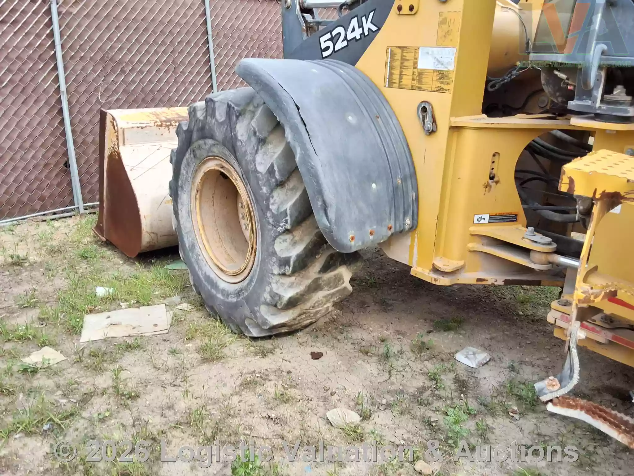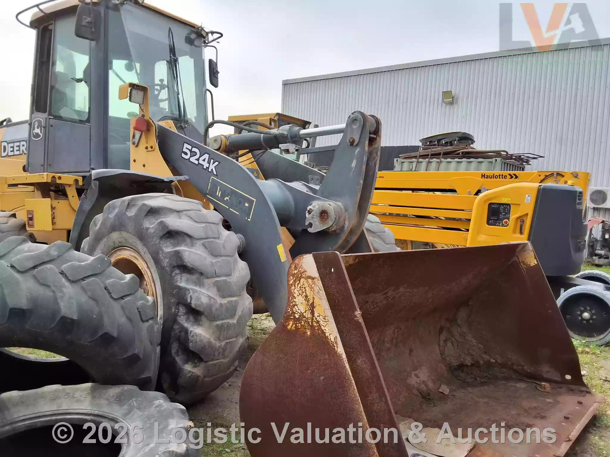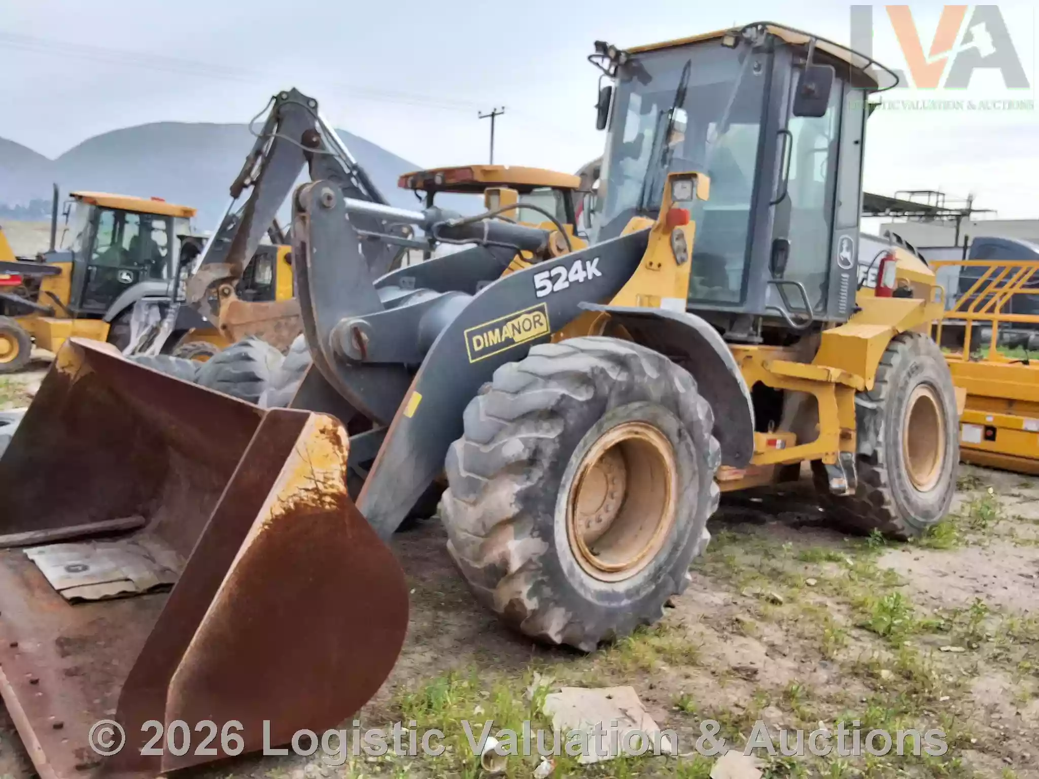 CARGADOR FRONTAL, MARCA: John Deere, MODELO: LOADER 524K, AÑO: 2014, SERIE: 1DW524KZEED659409, CONDICIONES: REGULARES CONDICIONES GENERALES, UNA LLANTA EN MAL ESTADO, PARABRISAS ESTRELLADO, PIEZAS ELECTRICAS DESCONECTADAS.