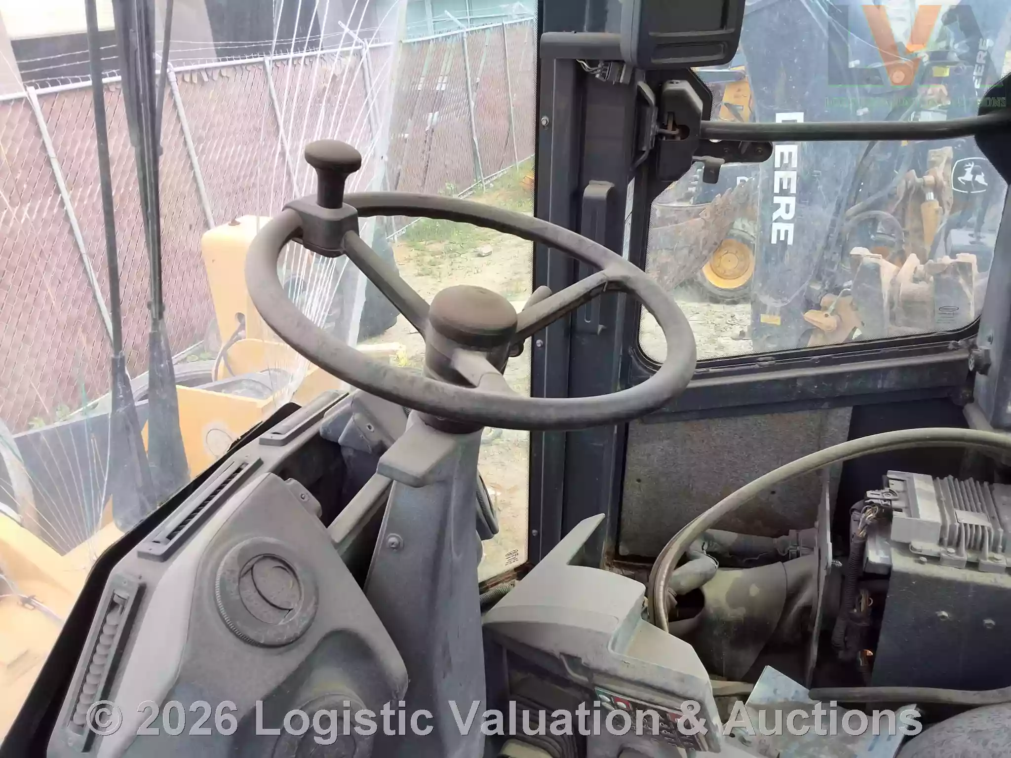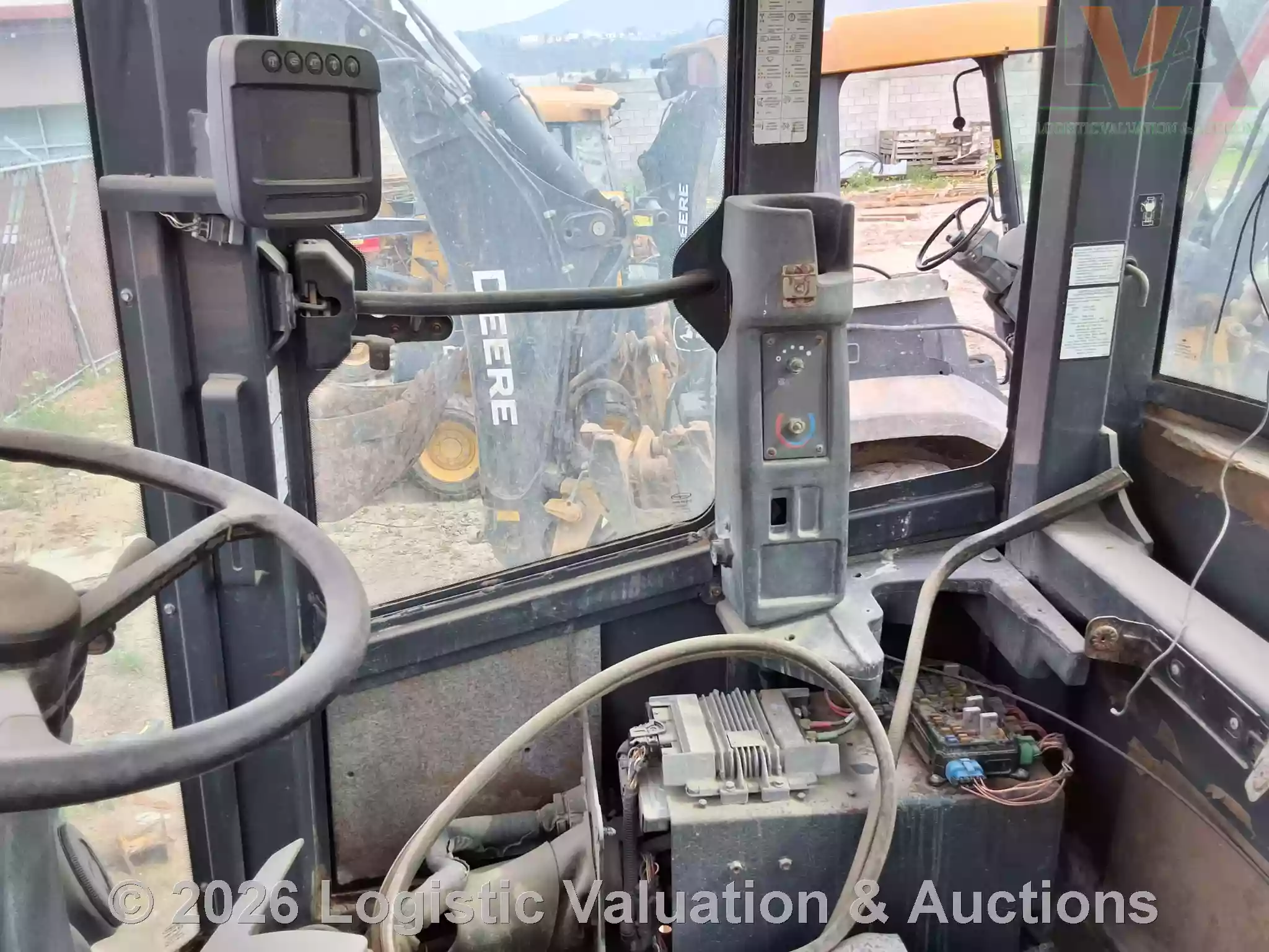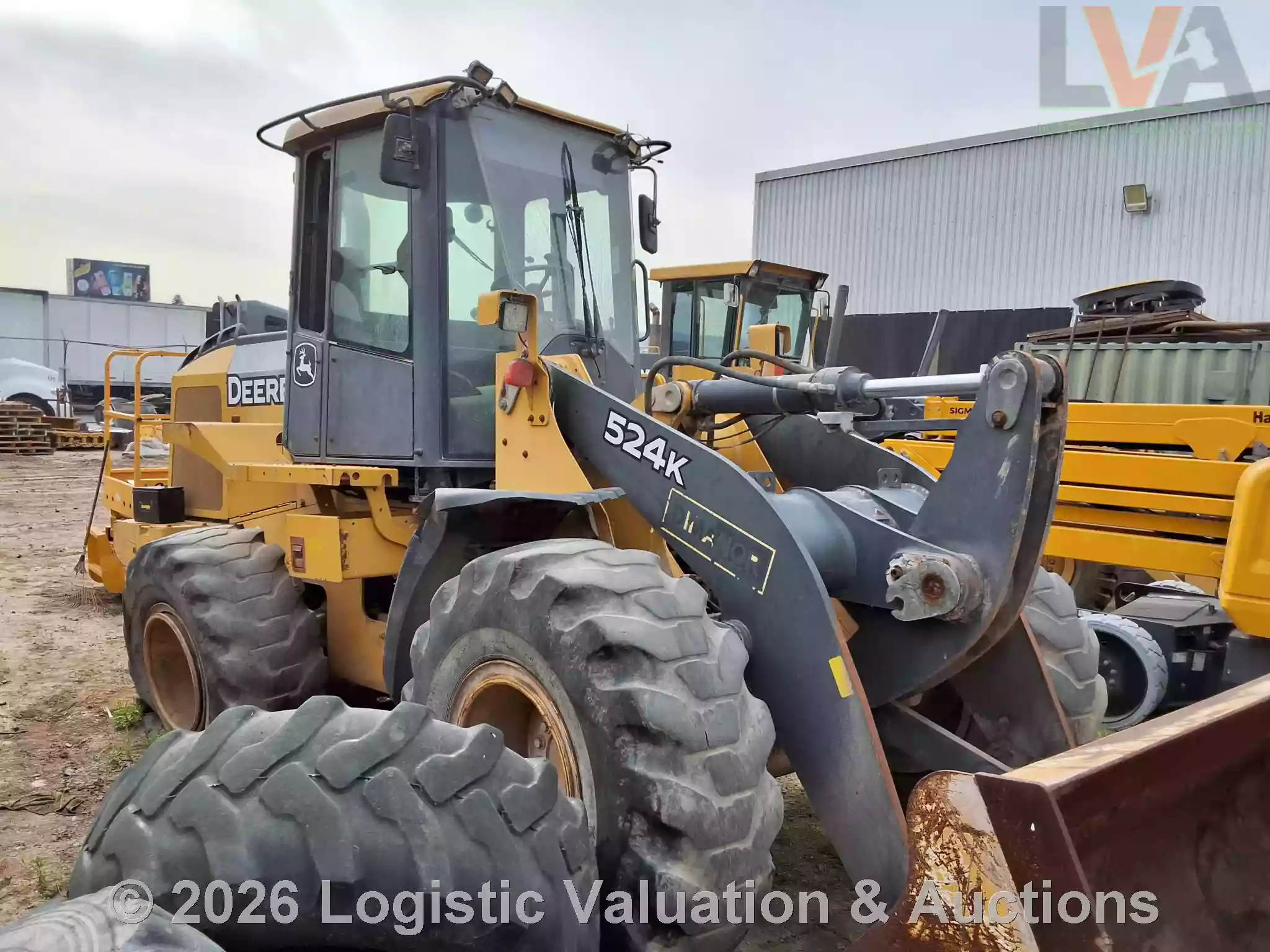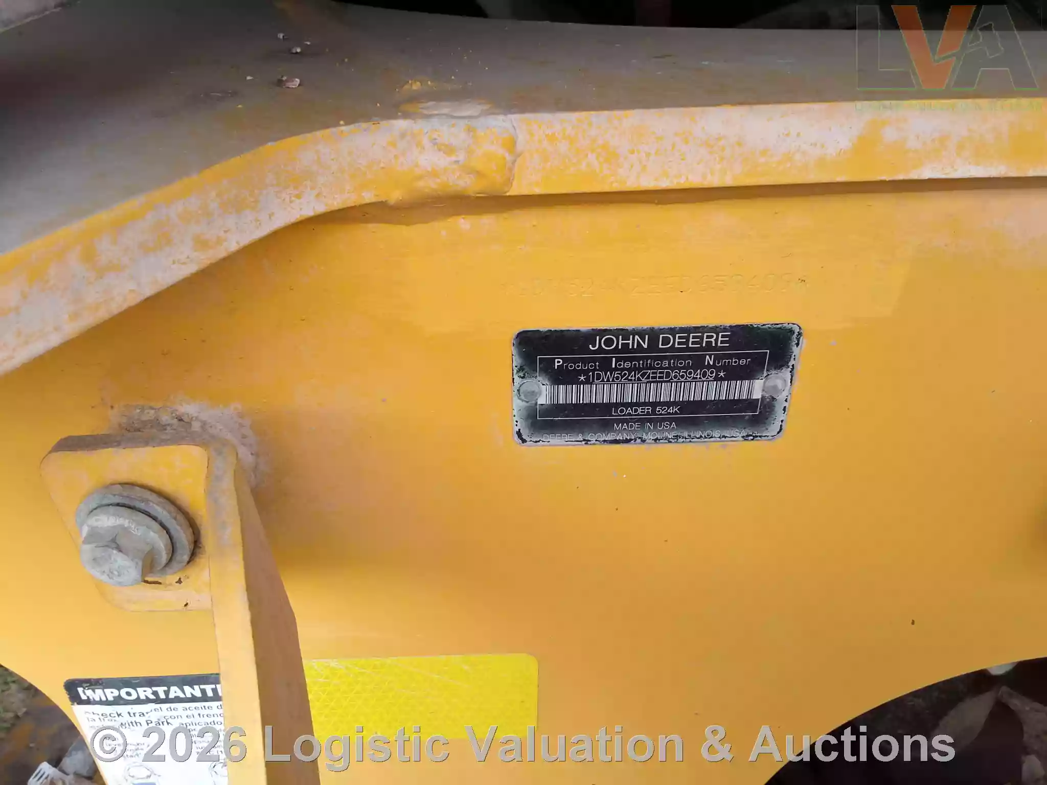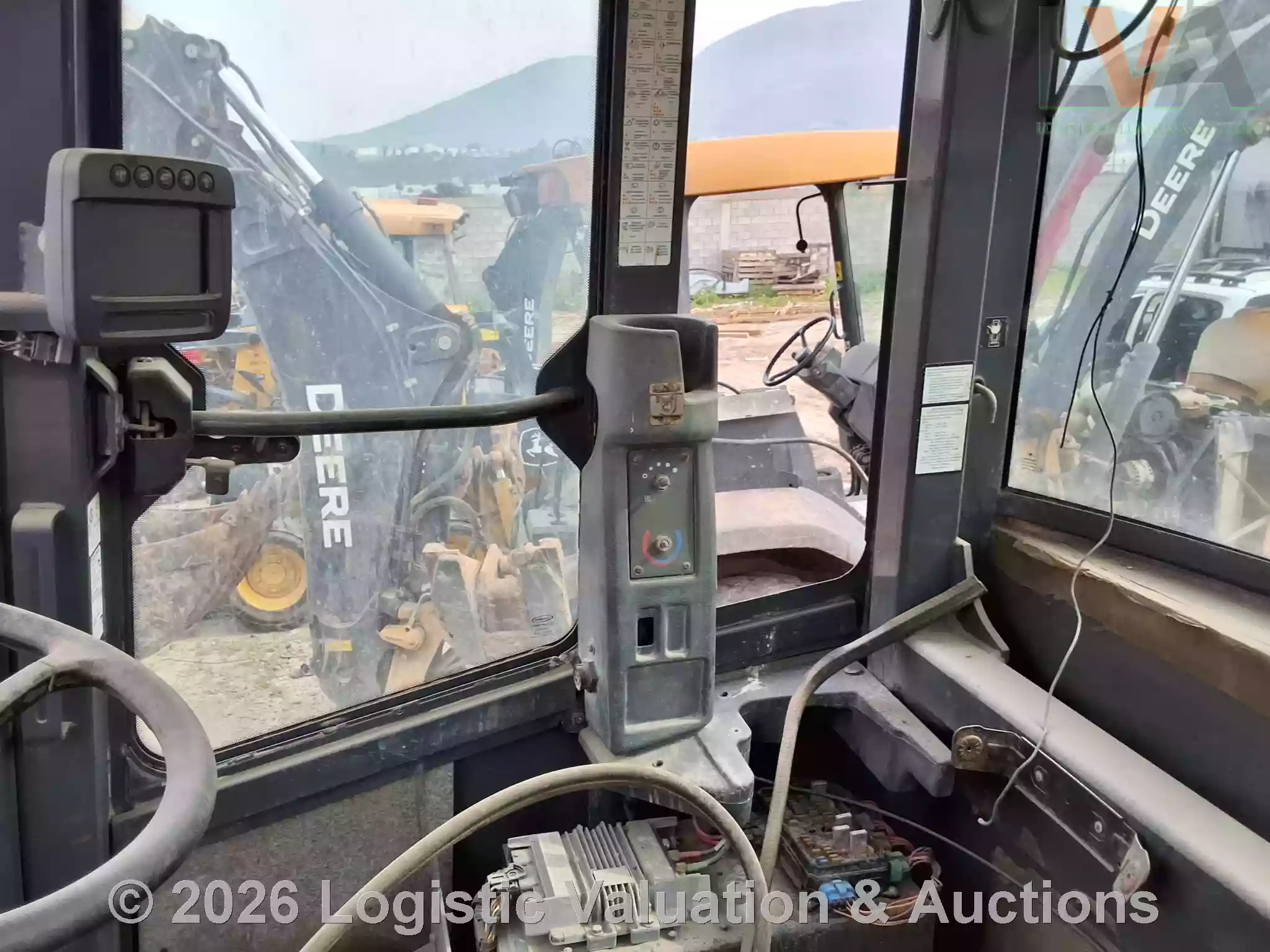 CARGADOR FRONTAL, MARCA: John Deere, MODELO: LOADER 524K, AÑO: 2014, SERIE: 1DW524KZEED659409, CONDICIONES: REGULARES CONDICIONES GENERALES, UNA LLANTA EN MAL ESTADO, PARABRISAS ESTRELLADO, PIEZAS ELECTRICAS DESCONECTADAS.
