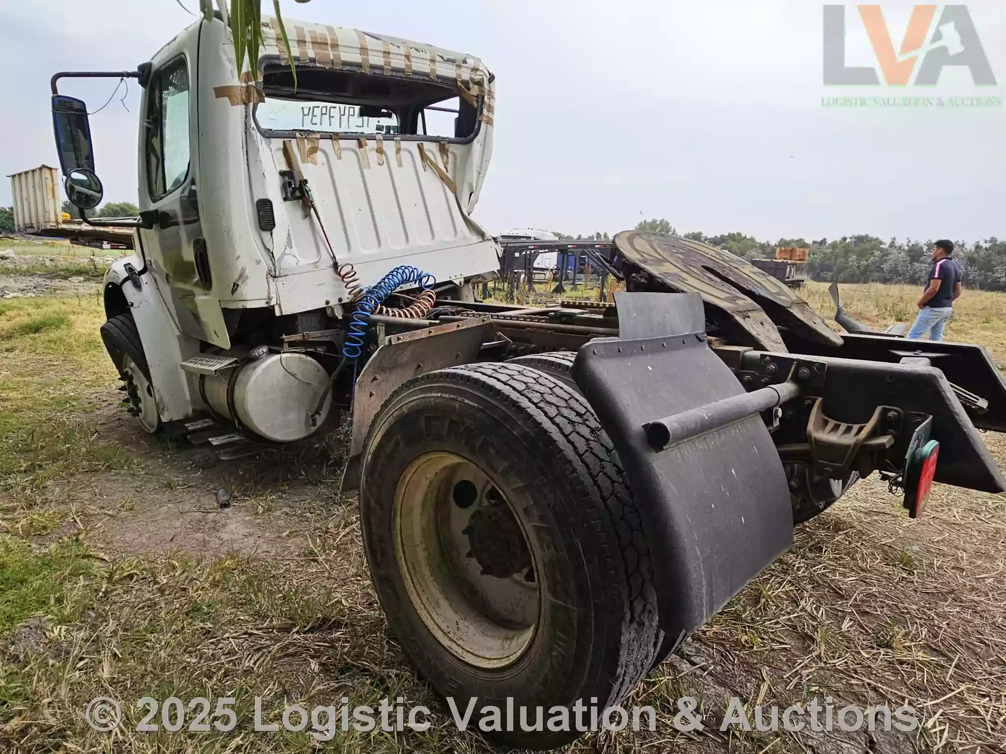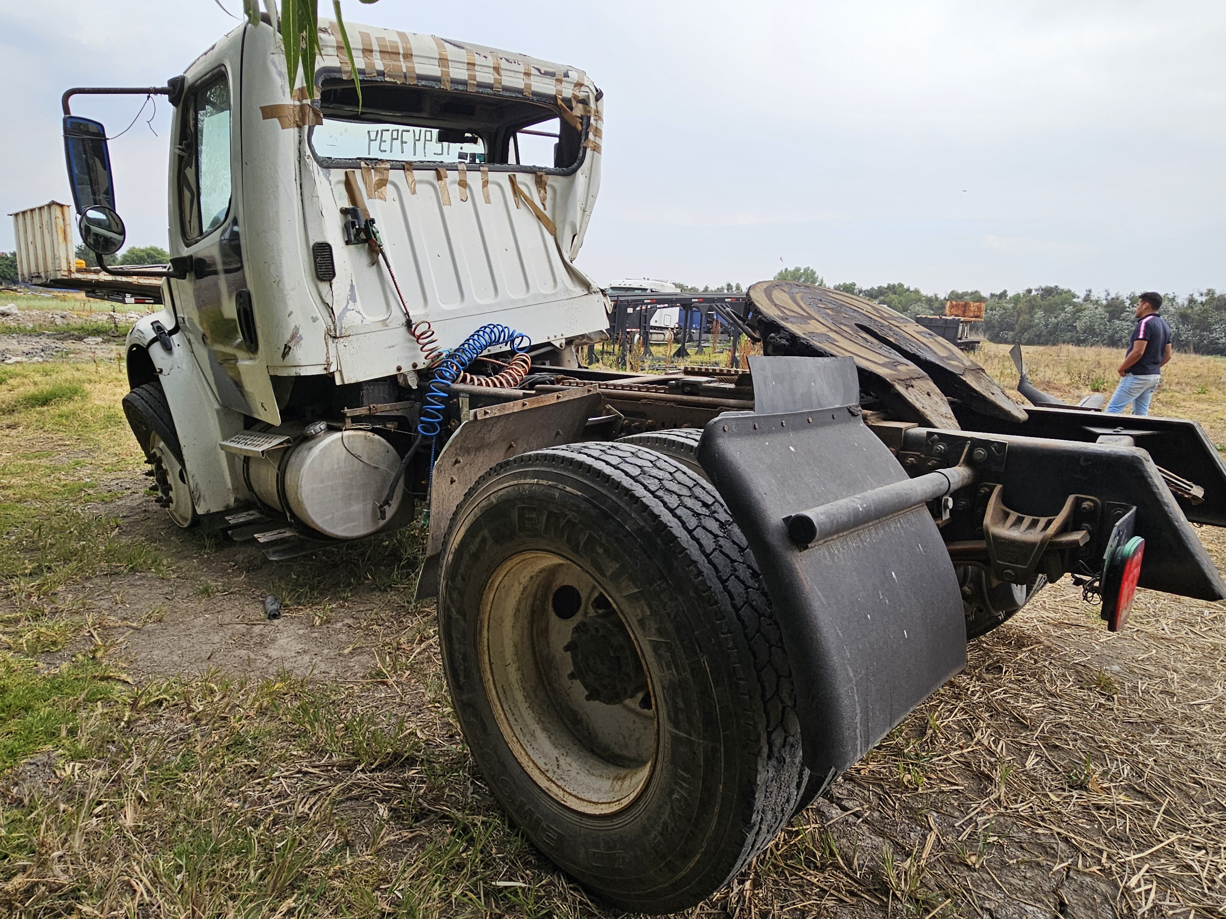 TRACTOCAMION, MARCA: FREIGHTLINER, MODELO: H2L06,AÑO: 2008, SERIE: 3ALHCYCSX8DZ30923, CONDICIONES: NO OPERABLE, SINIESTRADO, SE DESCONOCE SI ARRANCA, SIN LLAVE DE ENCENDIDO, CABINA EN MAL ESTADO, LLANTAS EN MALAS CONDICIONES