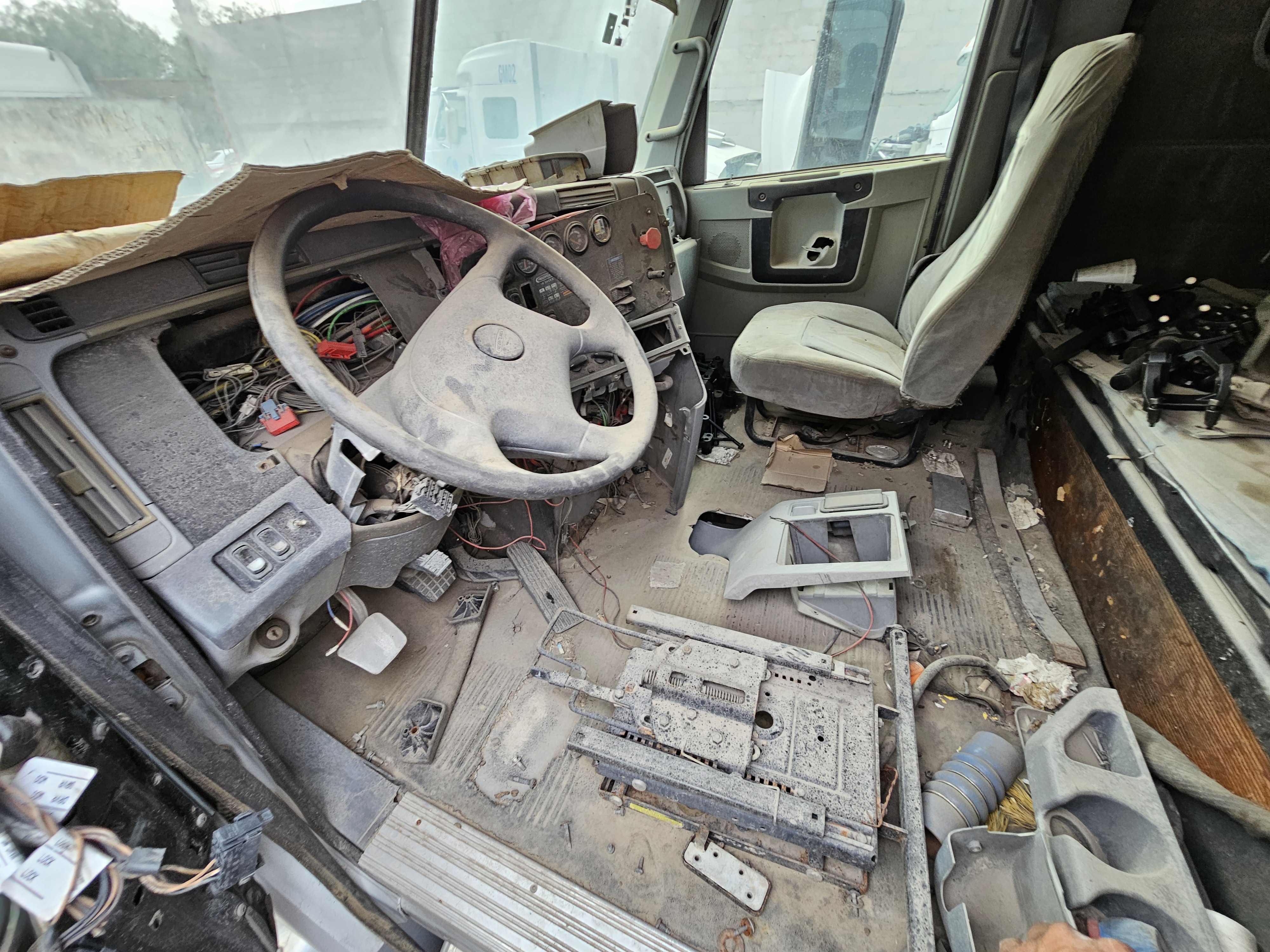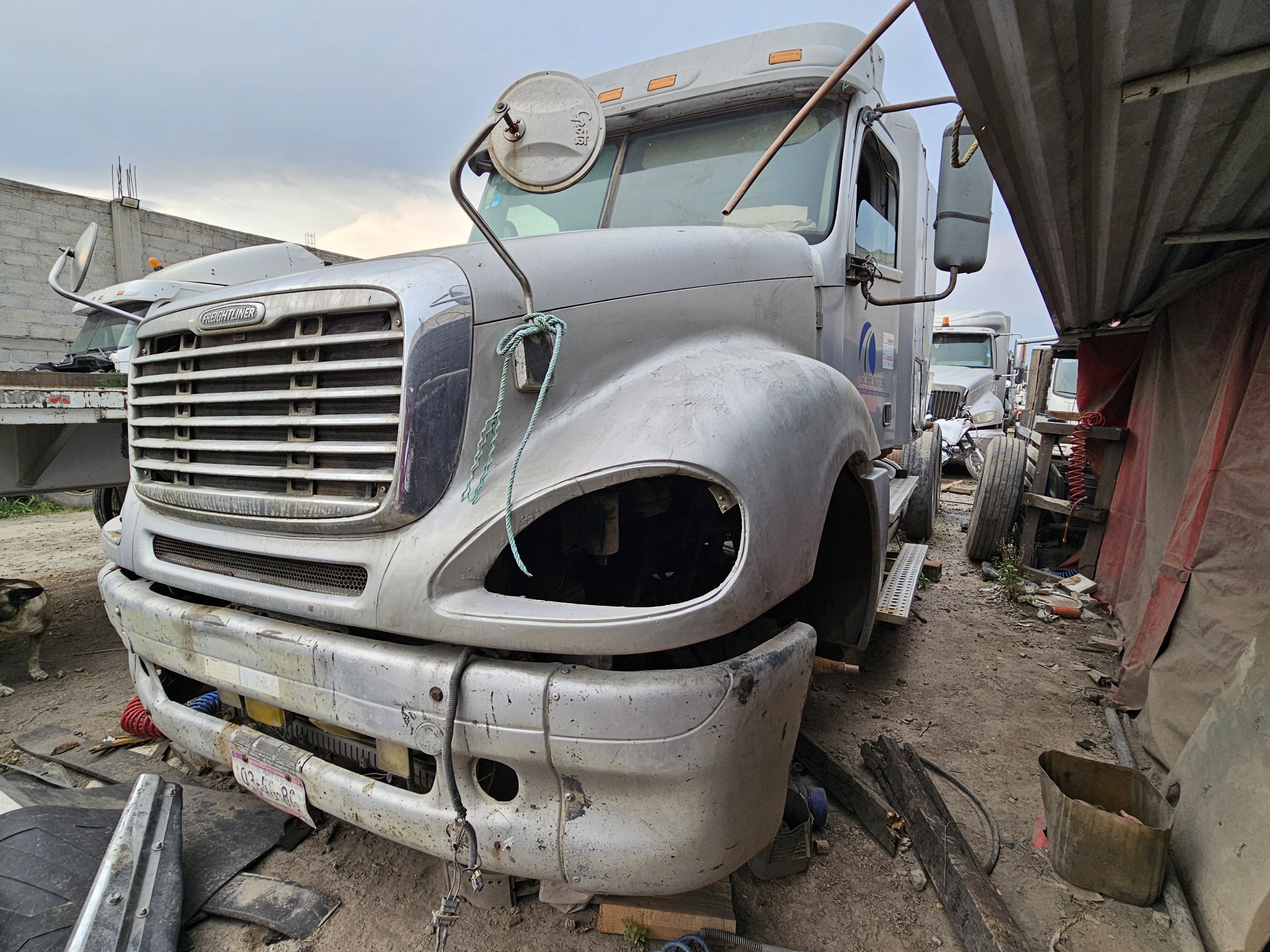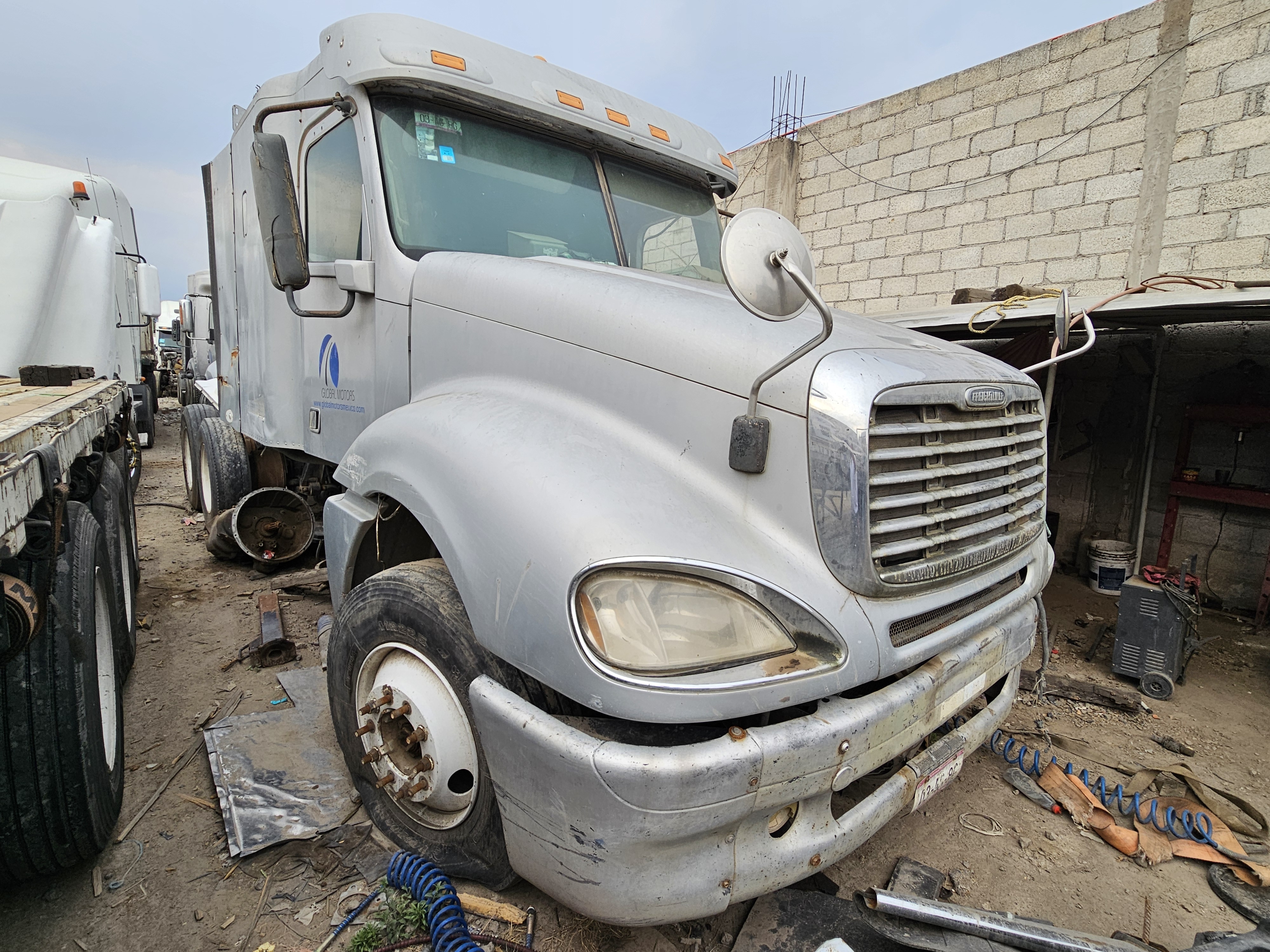 TRACTOCAMION CHASIS CABINA, MARCA: FREIGHTLINER, MODELO: COLUMBIA 120,AÑO: 2013, SERIE: 3AKJA6CK9DDBY9855, CONDICIONES: NO OPERABLE, PIEZAS FALTANTES DEL MOTOR, SIN COMPUTADORA, SIN LLAVE DE ENCENDIDO, CAJA DE VELOCIDADES Y FLECHA DEL CARDAN DESMONTADA, DESMONTADO UN TANQUE DE DIESEL, TABLERO EN MALAS CONDICIONES, NO TIEN 4 LLANTAS, SIN UN FARO, ASIENTO DEL CHOFER DESMONTADO, LLANTAS EN MALAS CONDICIONES