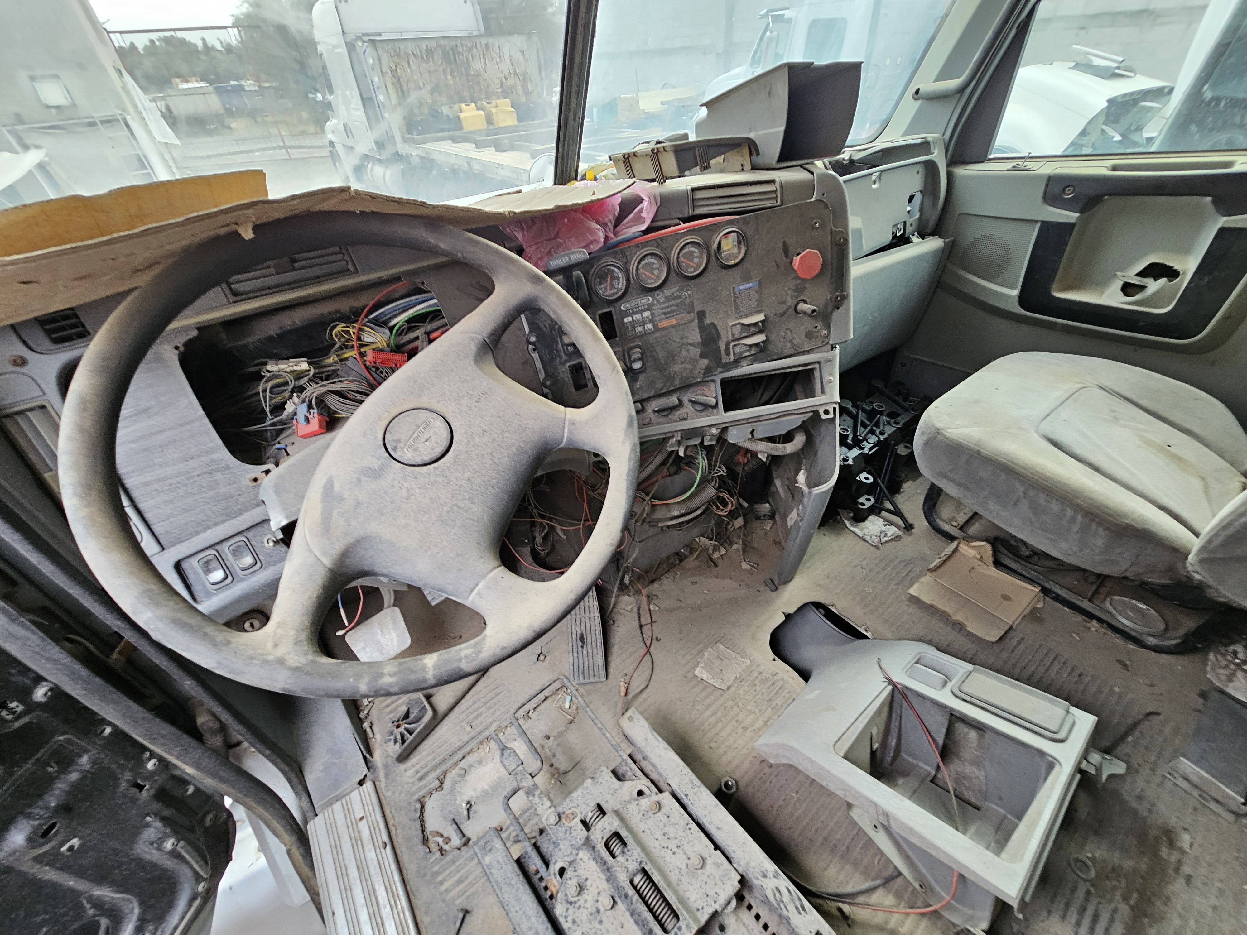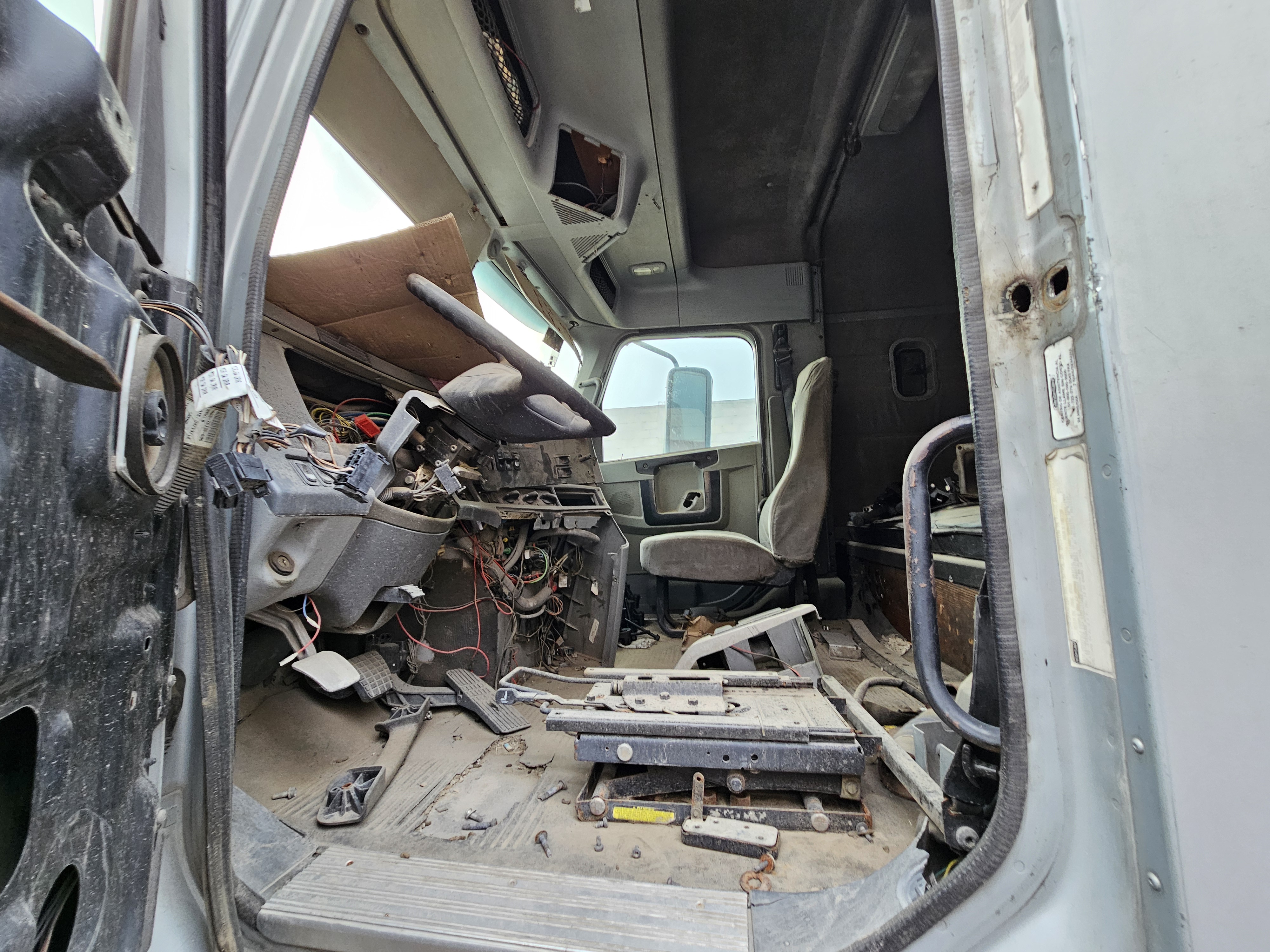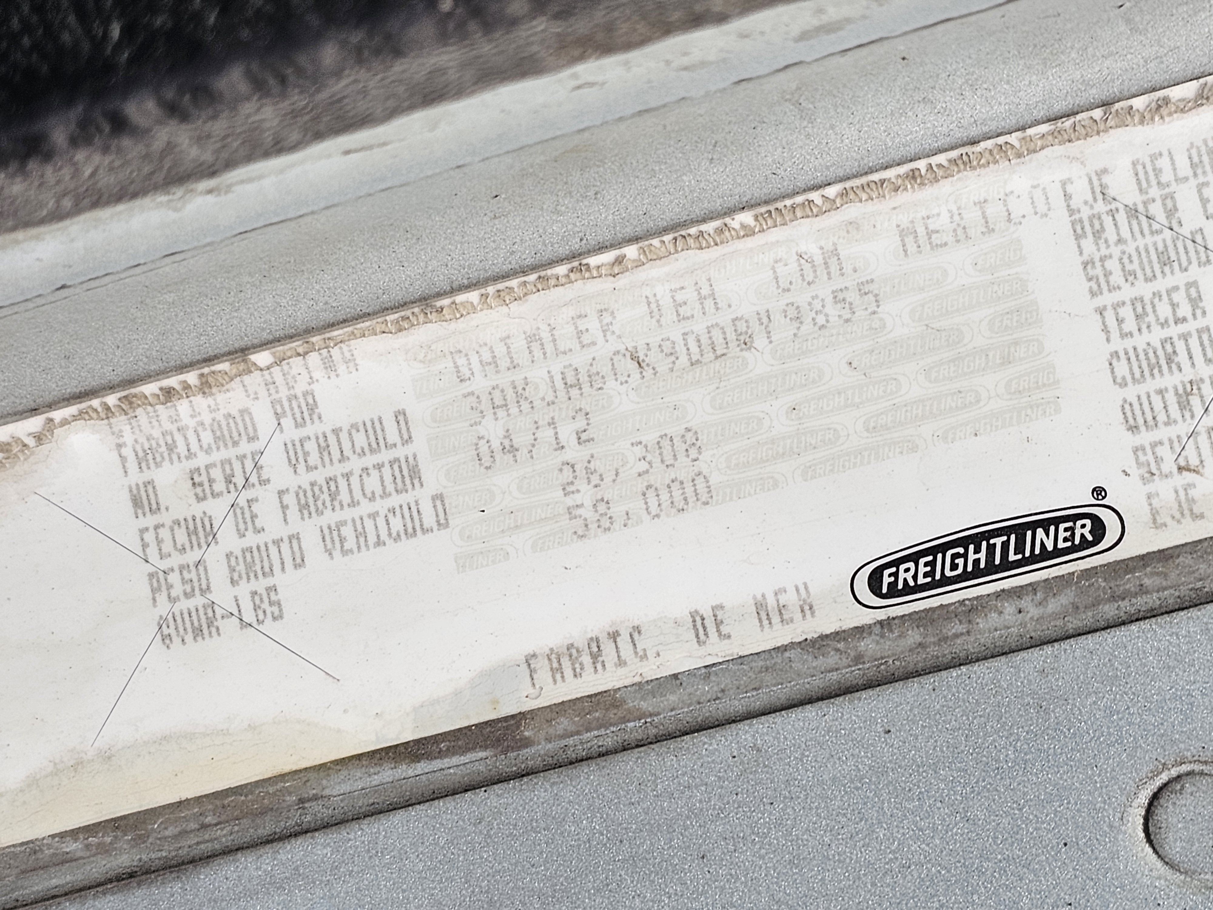 TRACTOCAMION CHASIS CABINA, MARCA: FREIGHTLINER, MODELO: COLUMBIA 120,AÑO: 2013, SERIE: 3AKJA6CK9DDBY9855, CONDICIONES: NO OPERABLE, PIEZAS FALTANTES DEL MOTOR, SIN COMPUTADORA, SIN LLAVE DE ENCENDIDO, CAJA DE VELOCIDADES Y FLECHA DEL CARDAN DESMONTADA, DESMONTADO UN TANQUE DE DIESEL, TABLERO EN MALAS CONDICIONES, NO TIEN 4 LLANTAS, SIN UN FARO, ASIENTO DEL CHOFER DESMONTADO, LLANTAS EN MALAS CONDICIONES