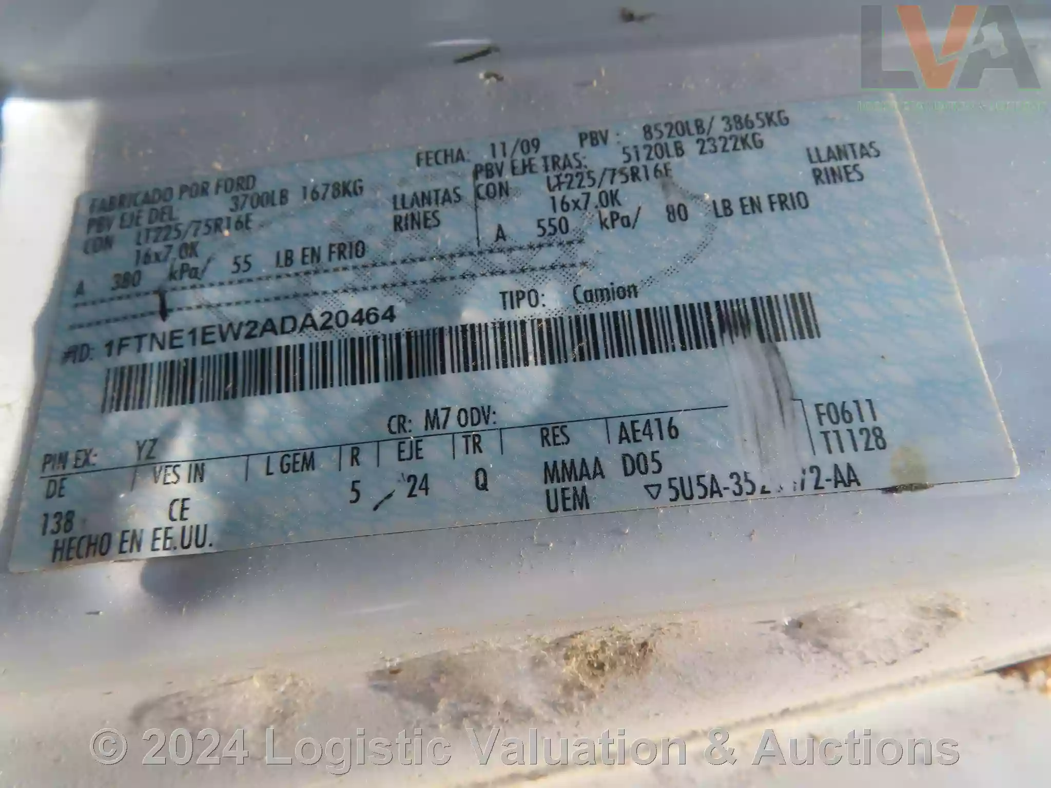 AMBULANCIA, MARCA: FORD, MODELO: E150, AÑO: 2010, SERIE: 1FTNE1EW2ADA20464, DESCRIPCION: CARROCERIA EN REGULAR ESTADO, INTERIORES EN MAL ESTADO, MOTOR CON PIEZAS FALTANTES, SIN BATERIA FISICA, SIN LLAVES, LLANTAS EN MAL ESTADO, NO OPERA