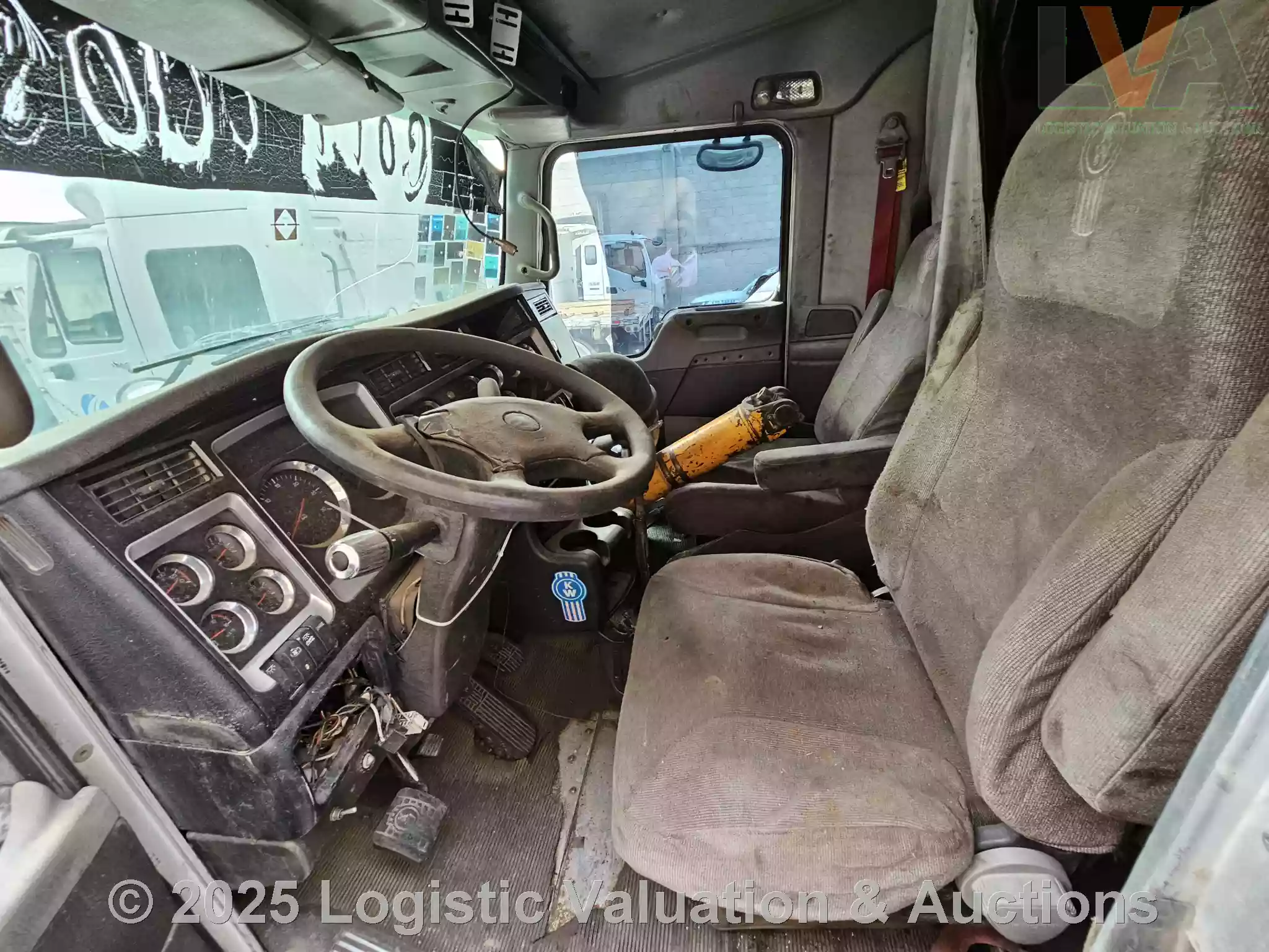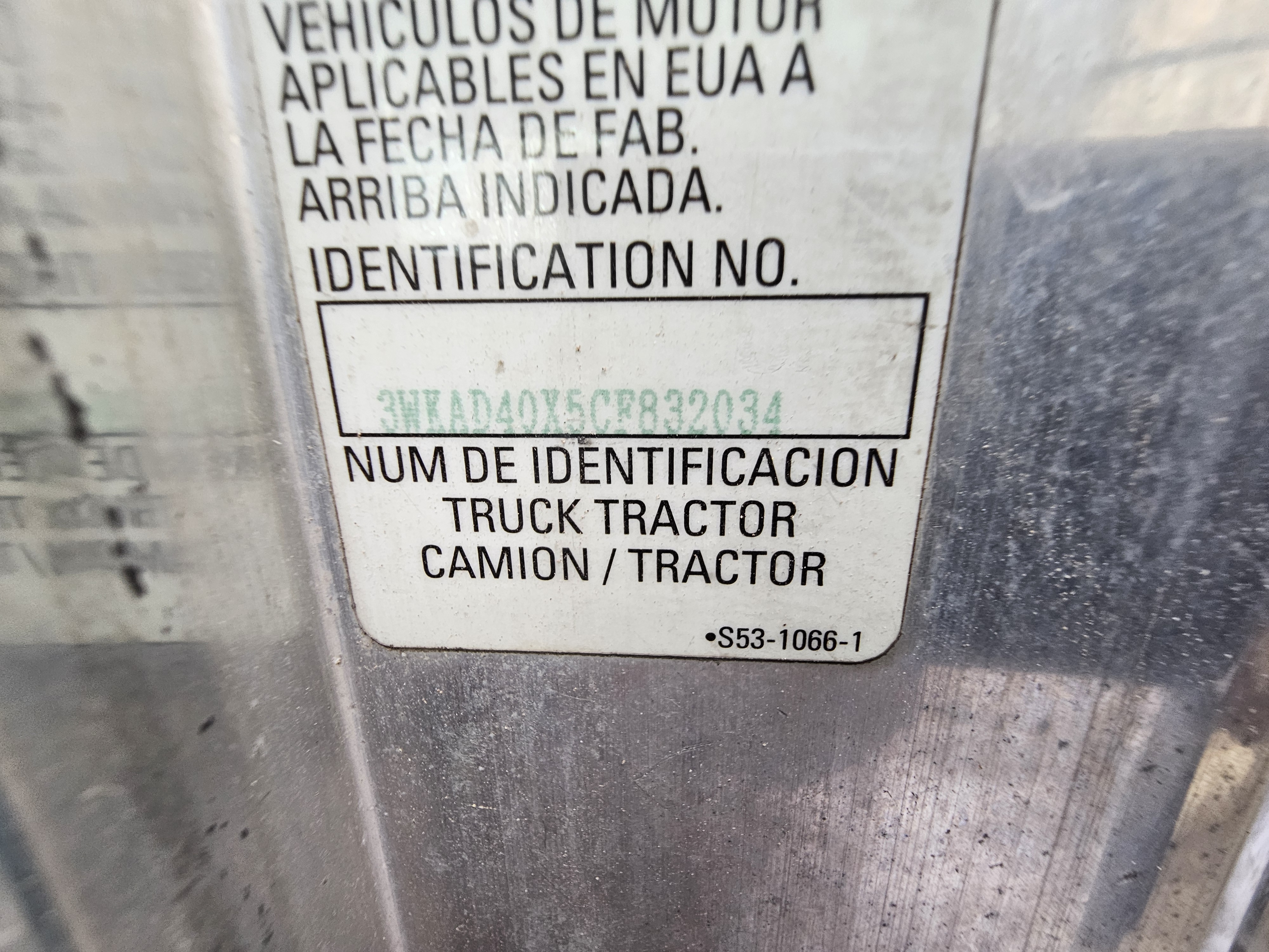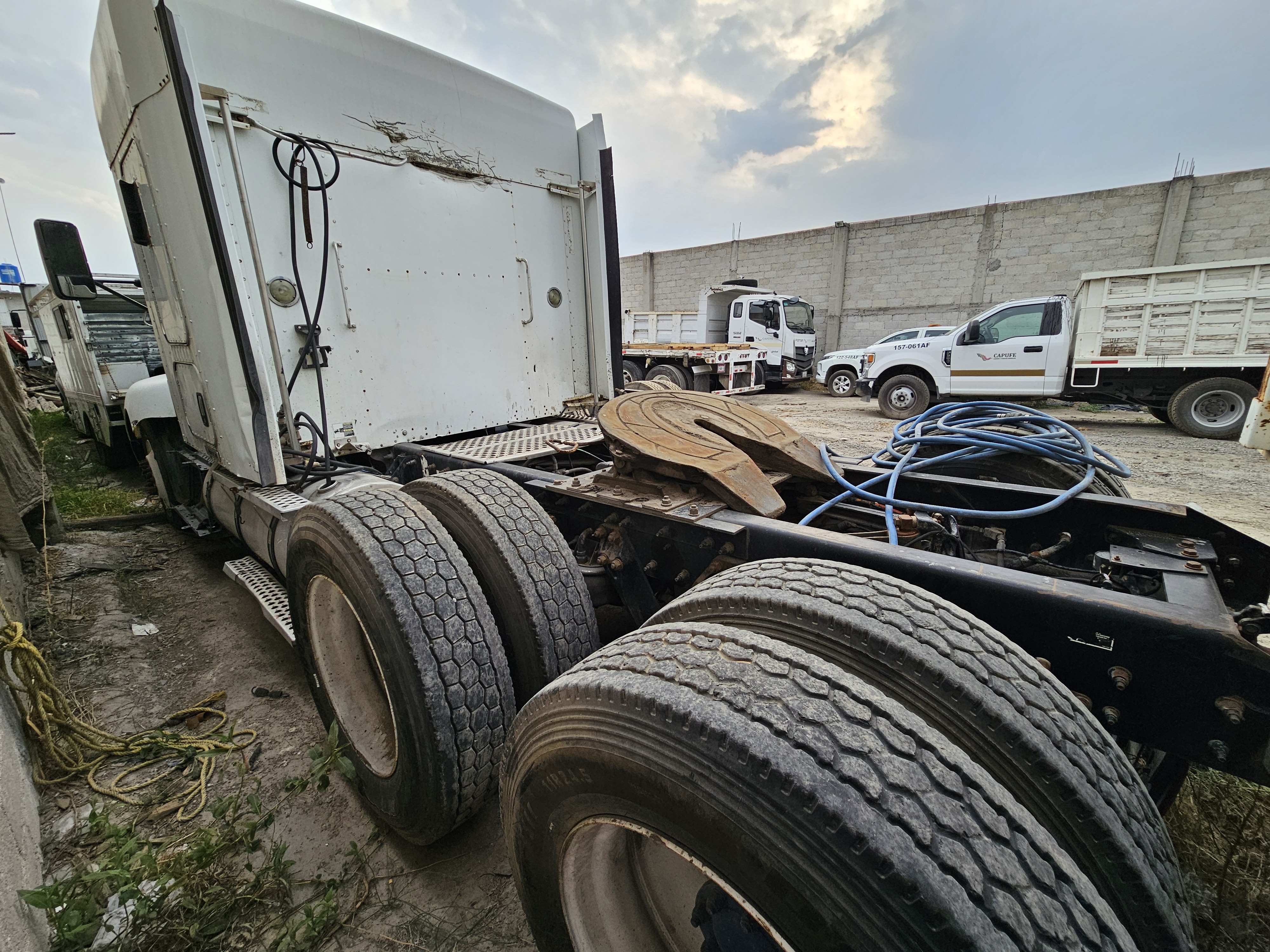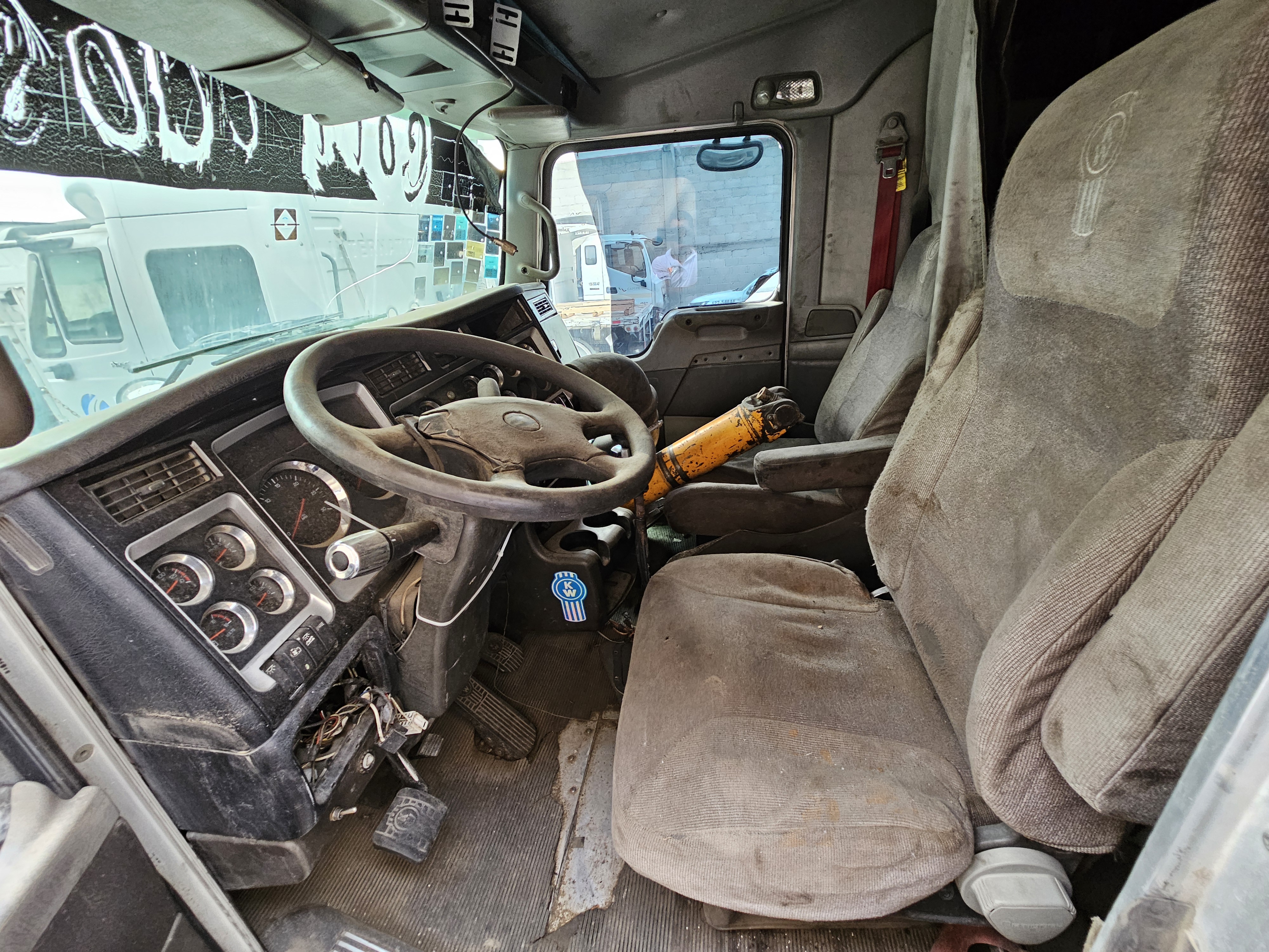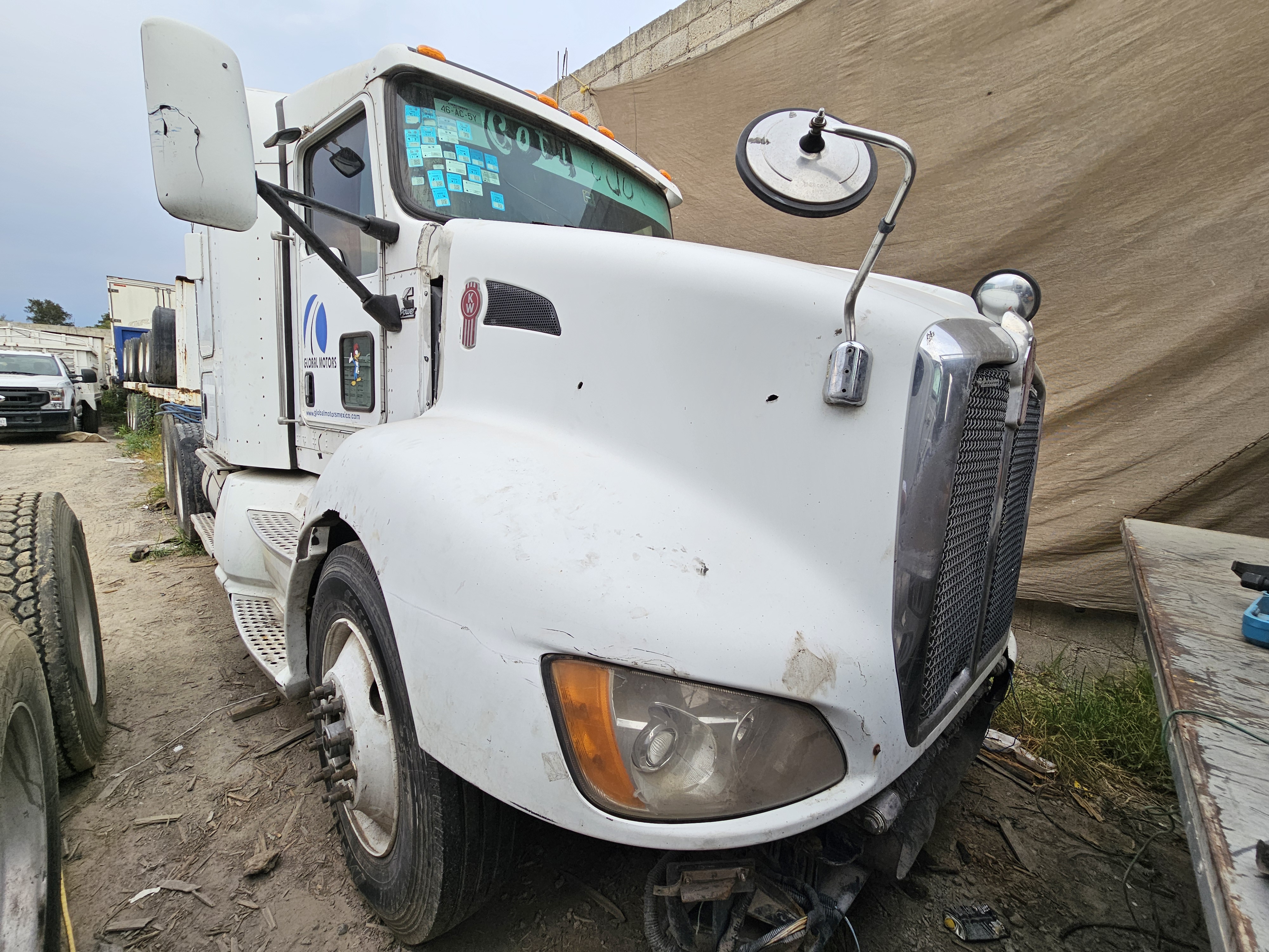 TRACTOCAMION CHASIS CABINA, MARCA: KENWORTH, MODELO: T600,AÑO: 2012, SERIE: 3WKAD40X5CF832034, CONDICIONES: NO OPERABLE, PIEZAS FALTANTES DEL MOTOR, SIN LLAVE DE ENCENDIDO, FLECHA DEL CARDAN SUELTA, PARABRIS ESTRELLADO, LLANTAS EN MALAS CONDICIONES