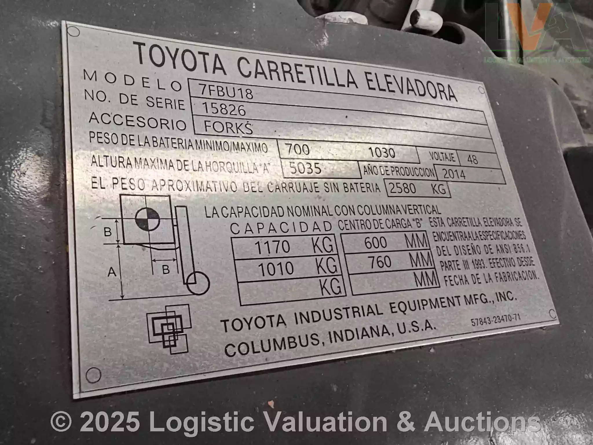 MONTACARGAS ELECTRICO, MARCA: TOYOTA, MODELO: 7FBEU18,AÑO: 2007, SERIE: 7FBU18-15826, CONDICIONES: COMENTAN QUE ES OPERABLE, REQUIERE SERVICIO, CUENTA CON LAS HORQUILLAS, CO CUENTA CON LAS BATERIAS, LLANTAS EN REGULARES CONDICIONES, CAP. DE CARGA MAX. 1800 KG., ECO: C1265