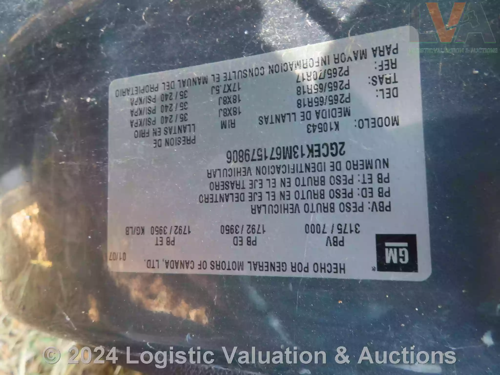 CAMIONETA, MARCA: CHEVROLET, MODELO: CHEYENNE, AÑO: 2007, SERIE: 2GCEK13M671579806, DESCRIPCION: CARROCERIA EN REGULAR ESTADO, INTERIORES EN MAL ESTADO, SIN MOTOR, SIN LLAVES, LLANTAS EN MAL ESTADO, NO OPERA