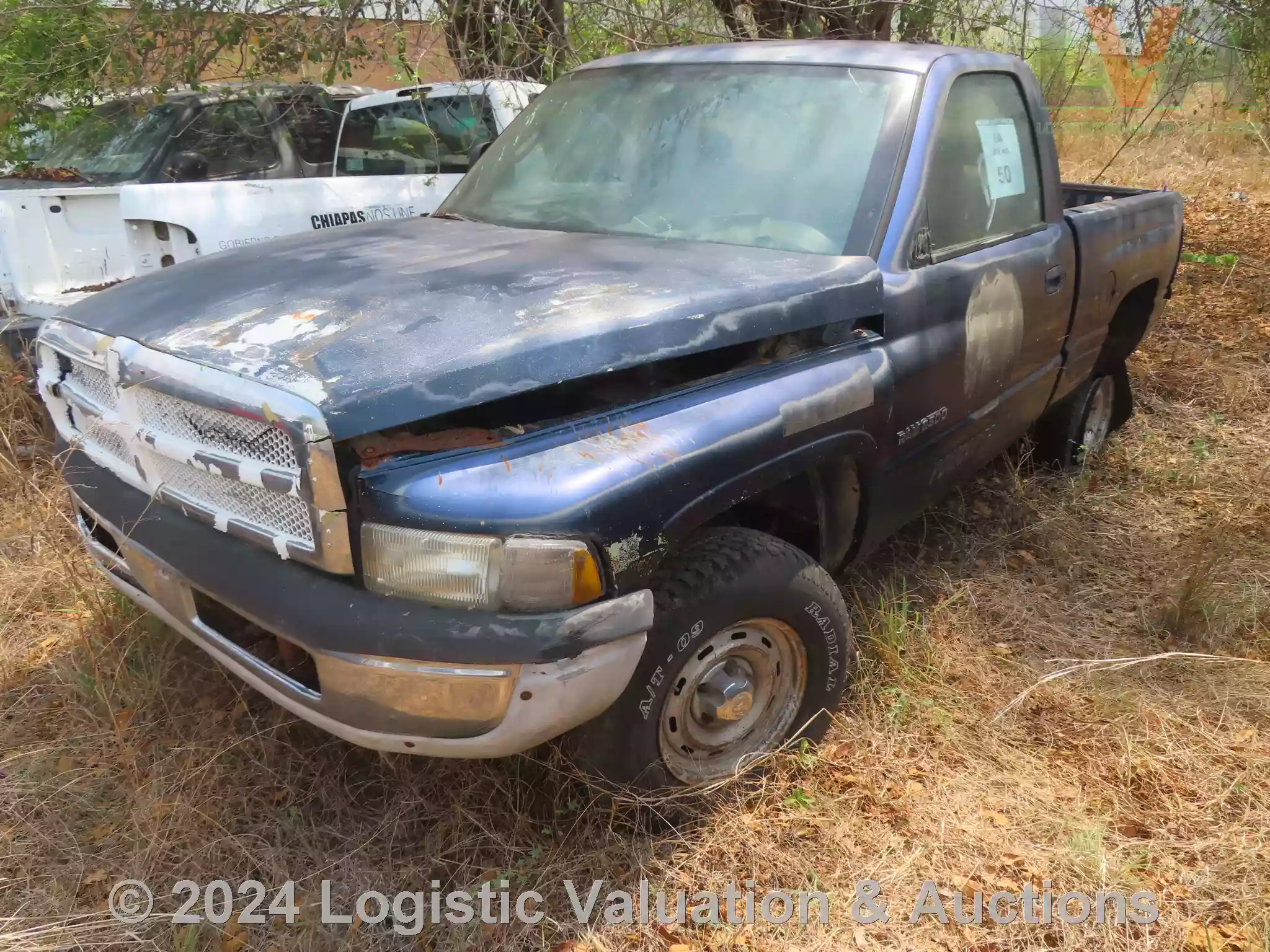 CAMIONETA, MARCA: DODGE, MODELO: RAM 2500, AÑO: 2002, SERIE: B7JF26ZX2M267893, DESCRIPCION: CARROCERIA EN MAL ESTADO, INTERIORES EN MAL ESTADO, MOTOR CON PIEZAS FALTANTES, CARDAN DESMONTADO, SIN BATERIA, SIN LLAVES, LLANTAS EN MAL ESTADO, NO OPERA