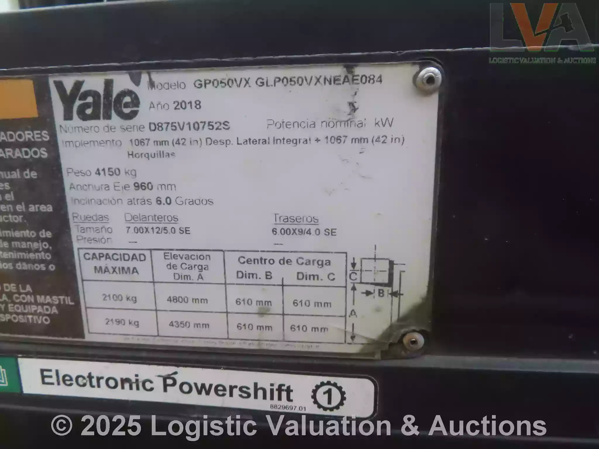MONTACARGAS, MARCA: YALE, MODELO: , AÑO: 2017, SERIE: D875V10752S, CONDICIONES: NO OPERABLE, SIN LLAVES., KM:
