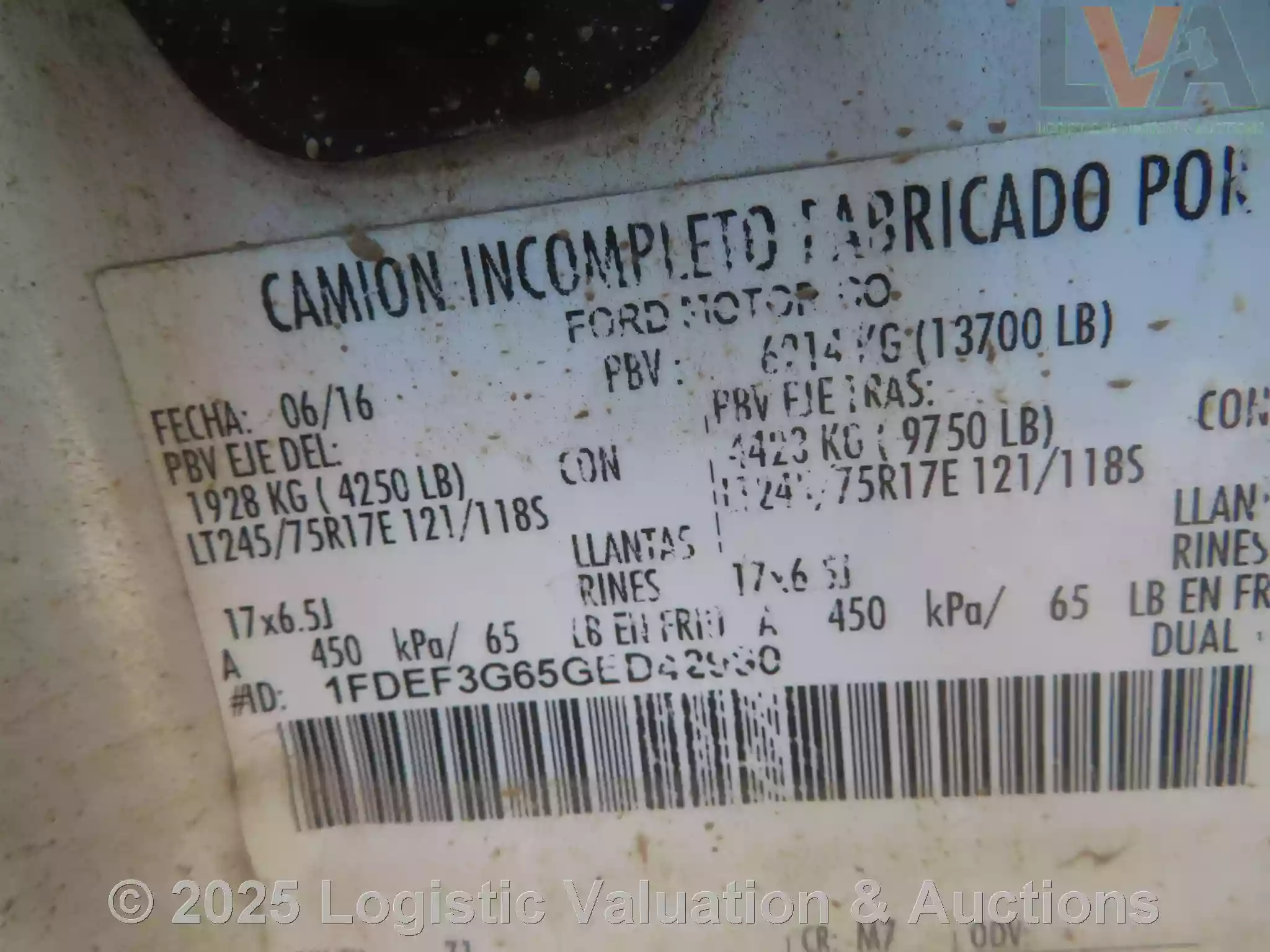 CAMIONETA, MARCA: FORD, MODELO: F350,AÑO: 2016, SERIE: 1FDEF3G65GED42990, CONDICIONES: UNIDAD NO OPERABLE, FALTANTES EN MOTOR, CARROCERIA REGULARES CONDICIONES., K.M.: N/V, ECO: 4515