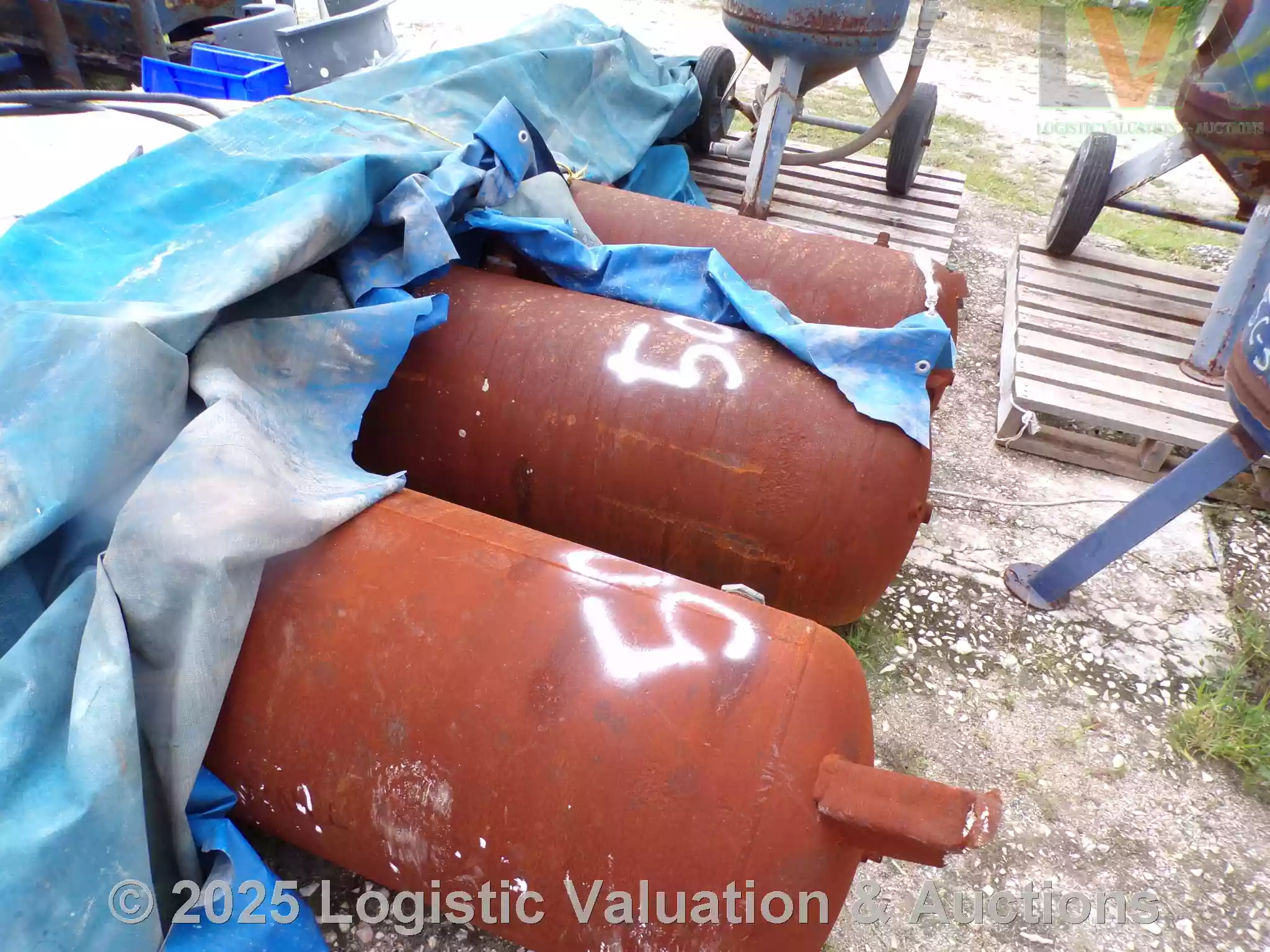 LOTE COMPUESTO POR 11 TANQUE DE AIRE VERTICAL, 3 OLLA DE SAND BLAST.