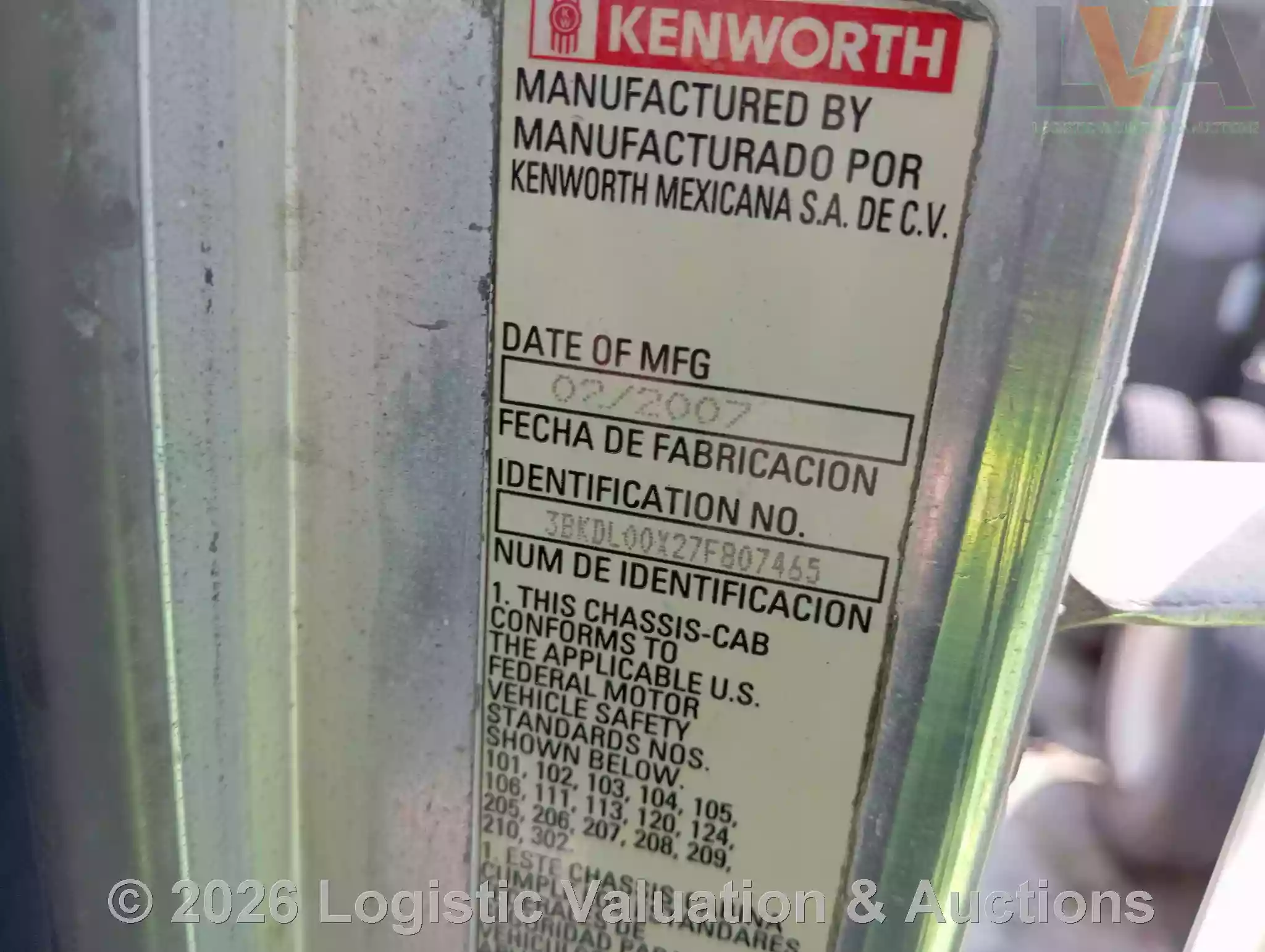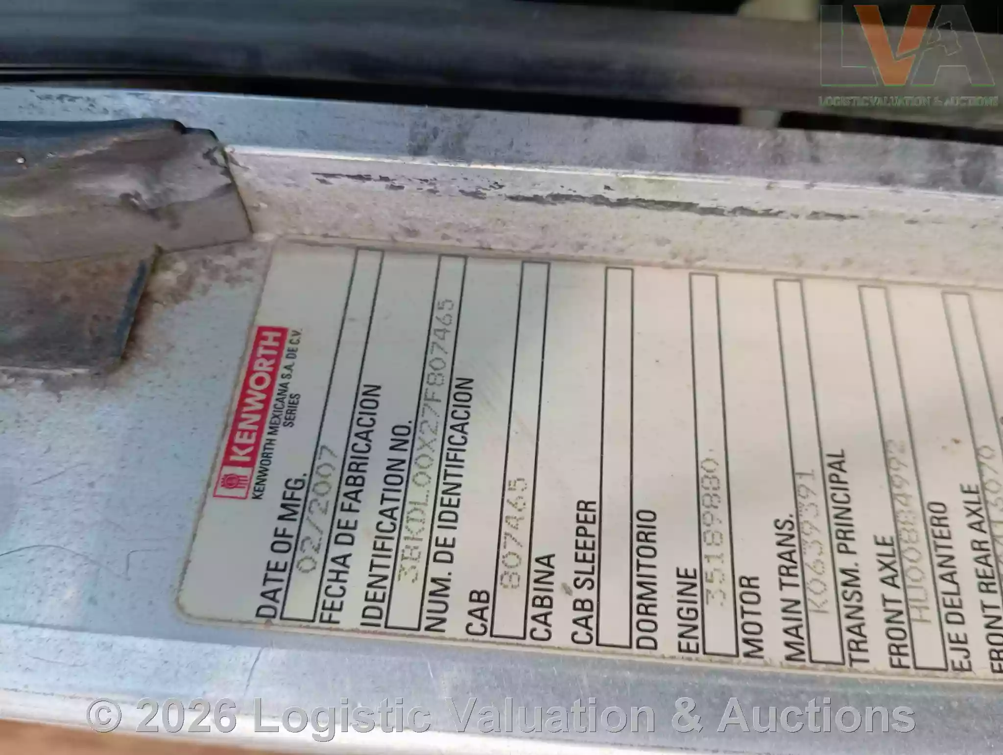 CAMIÓN, MARCA: KENWORTH, MODELO: T800, AÑO: 2007, SERIE: 3BKDL00X27F807465, CONDICIONES: REGULARES CONDICIONES FISICAS EN GENERAL, CHASIS CON CORROSION, SE DESCONOCEN CONDICIONES MECANICAS, ECO: CR3536