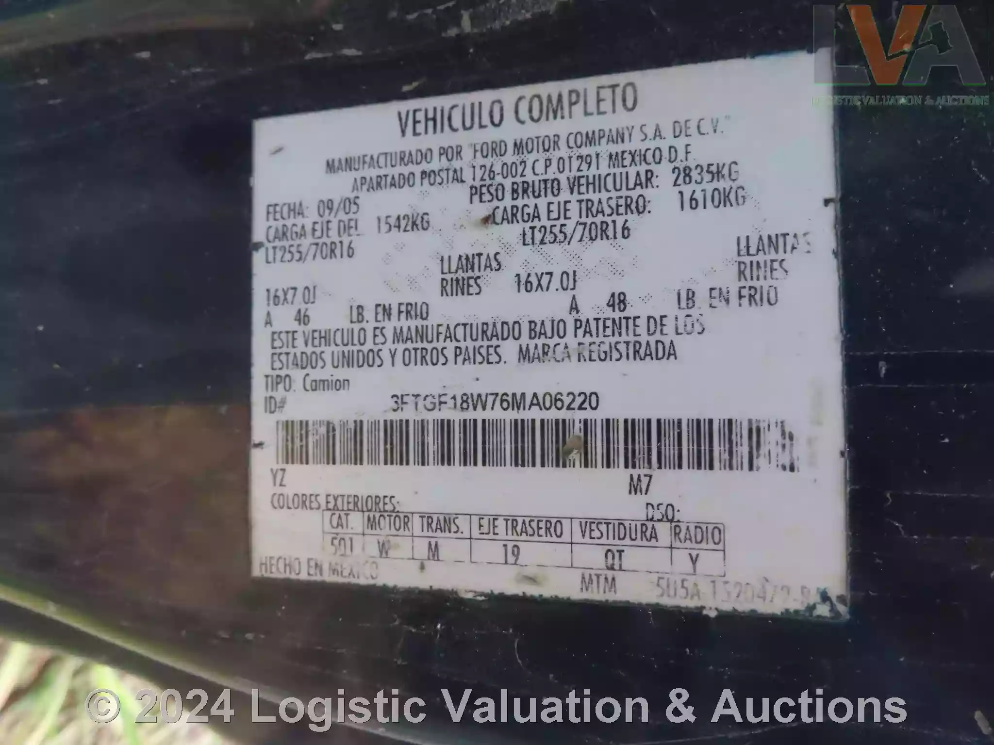 CAMIONETA , MARCA: FORD, MODELO: F150, AÑO: 2006, SERIE: 3FTGF18W76MA06220, DESCRIPCION: CARROCERIA EN MAL ESTADO, INTERIORES EN MAL ESTADO, MOTOR CON PIEZAS FALTANTES, SIN LLAVES, LLANTAS EN MAL ESTADO, NO OPERA